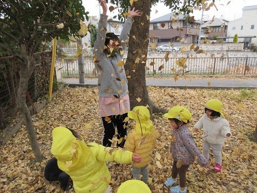 秋は落ち葉で遊びます♪