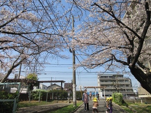 春は、桜並木を通ってお散歩に♪