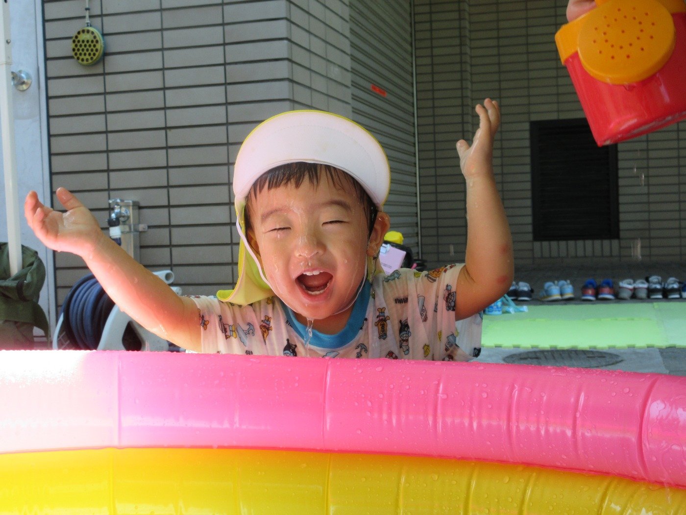 夏は、園前で水遊び♪