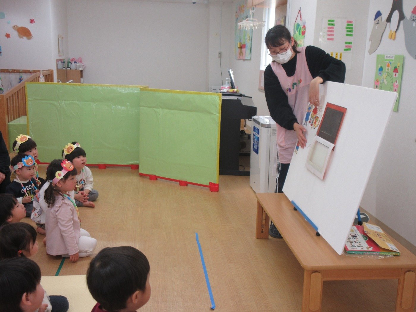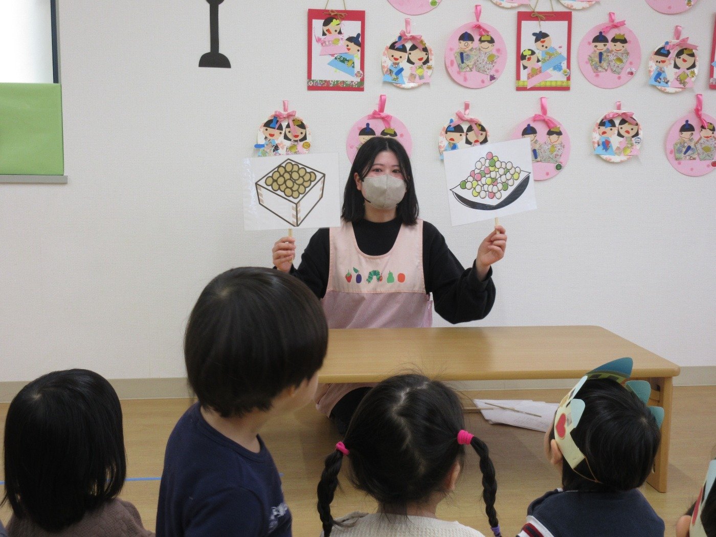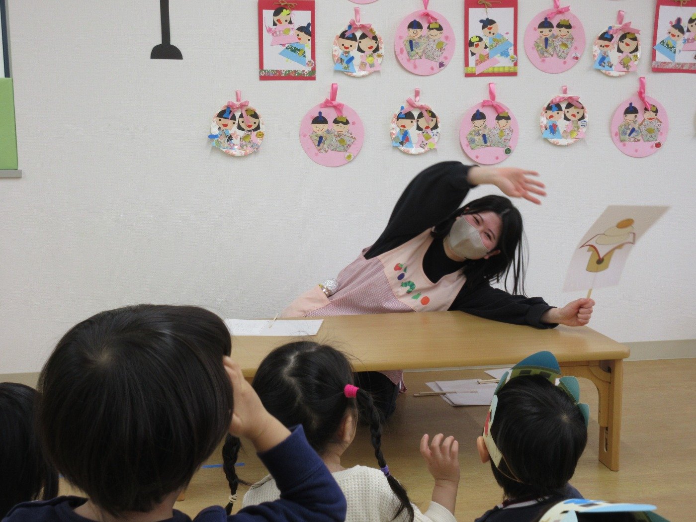 この日はひな祭りだったので、ひな祭りのお話を聞いて、クイズにもチャレンジしました!