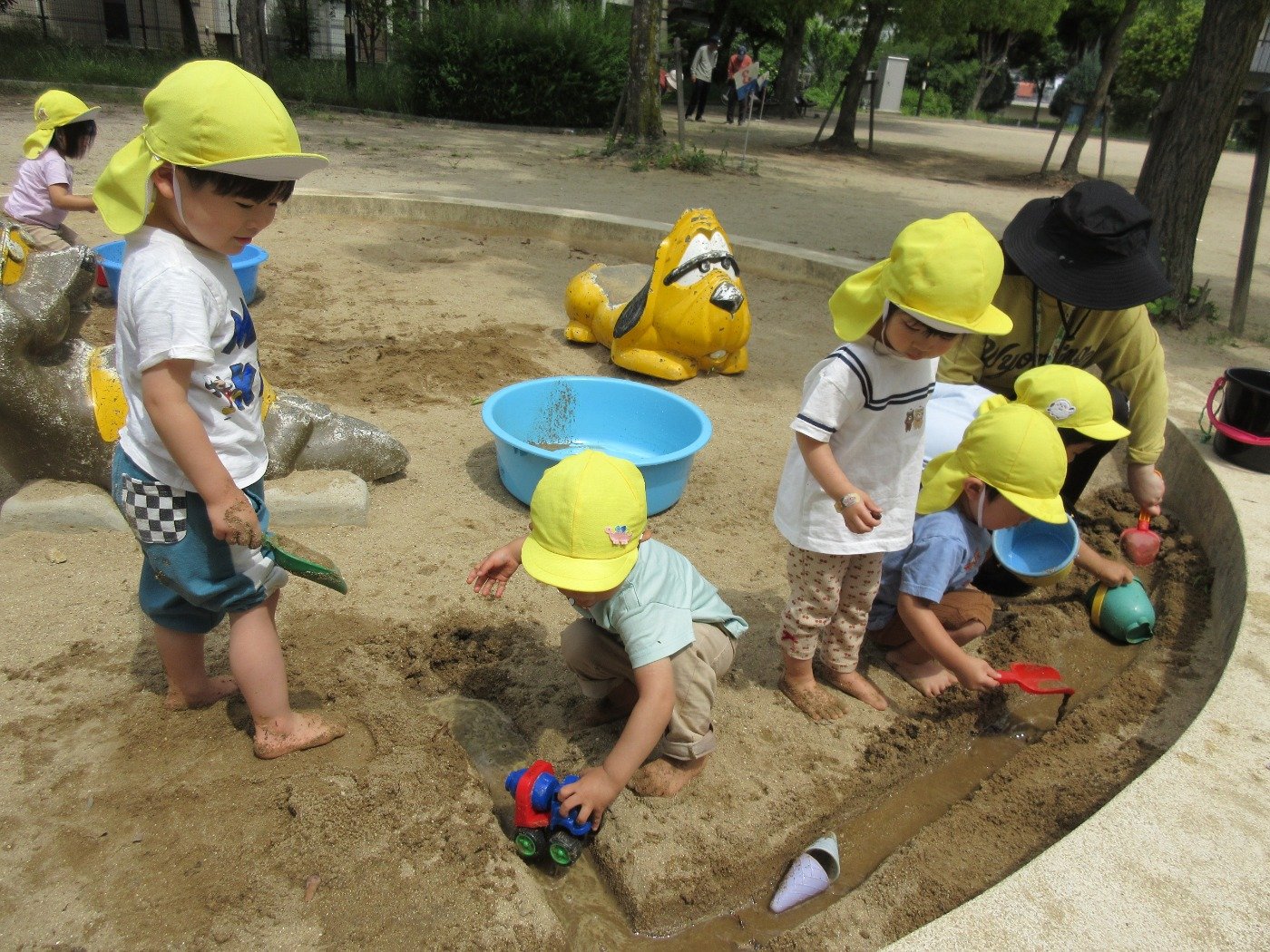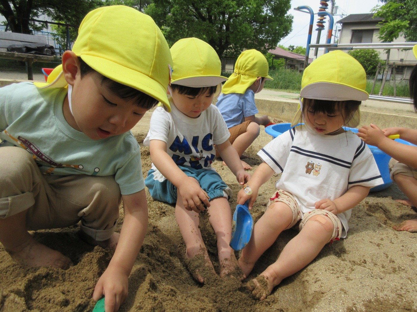 次は、お砂や泥んこにもちょっぴり触れてみようね。