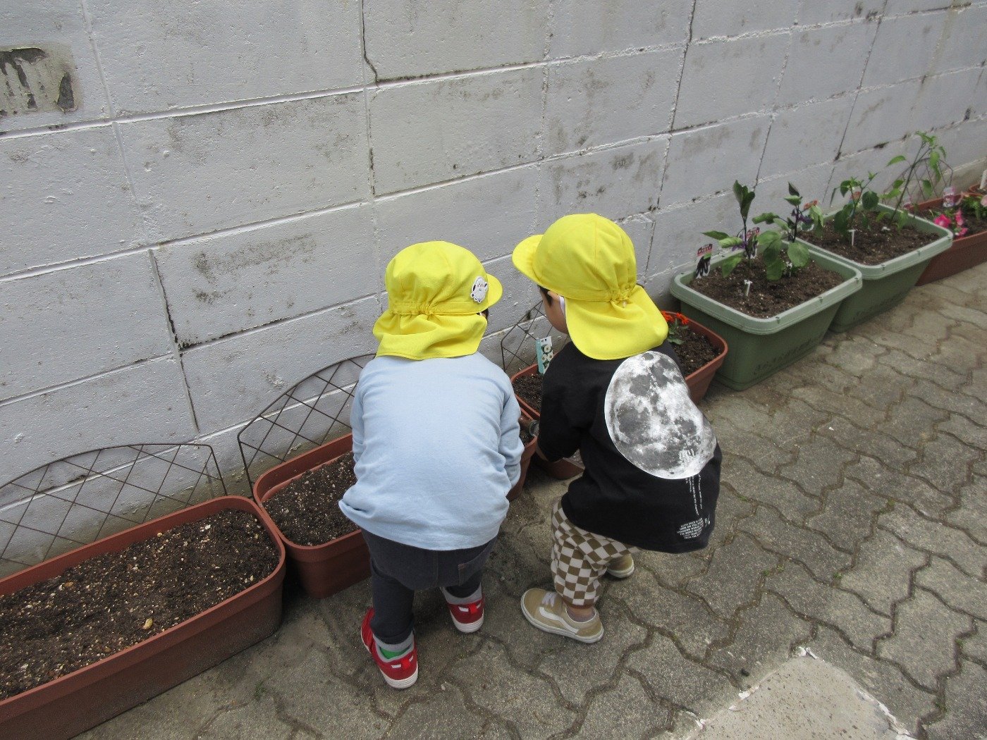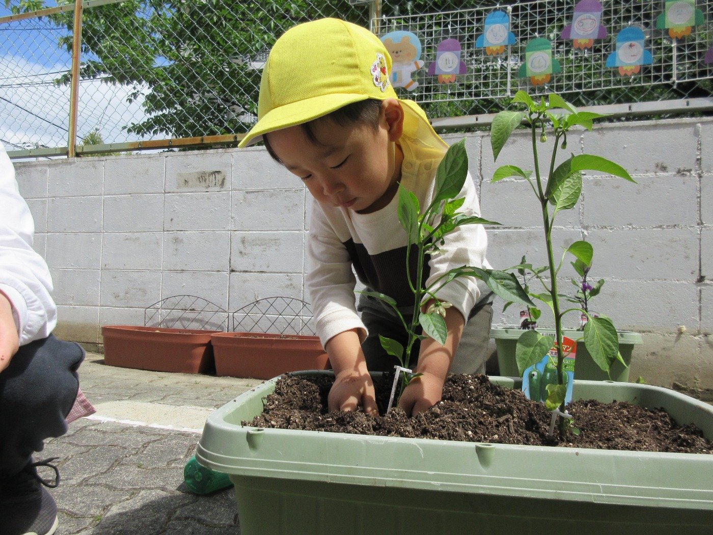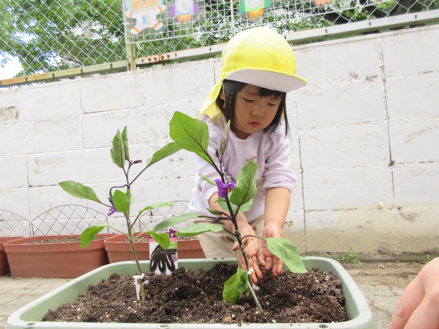 「なすび植えたよ~!」「ピーマン植えたよ~!」ととっても嬉しそう