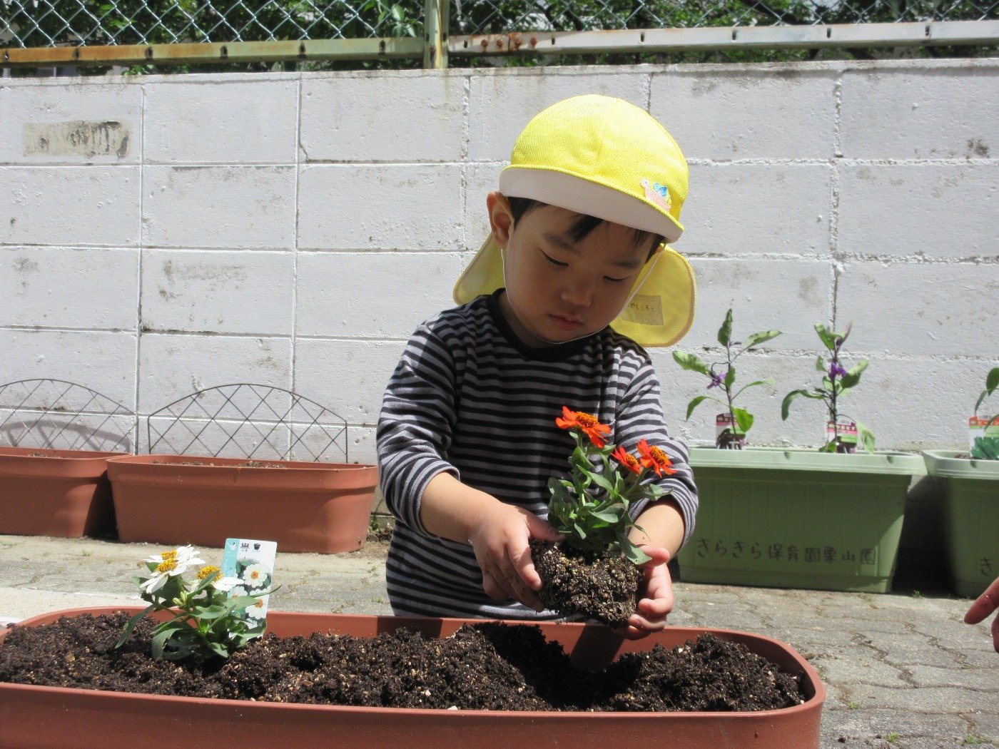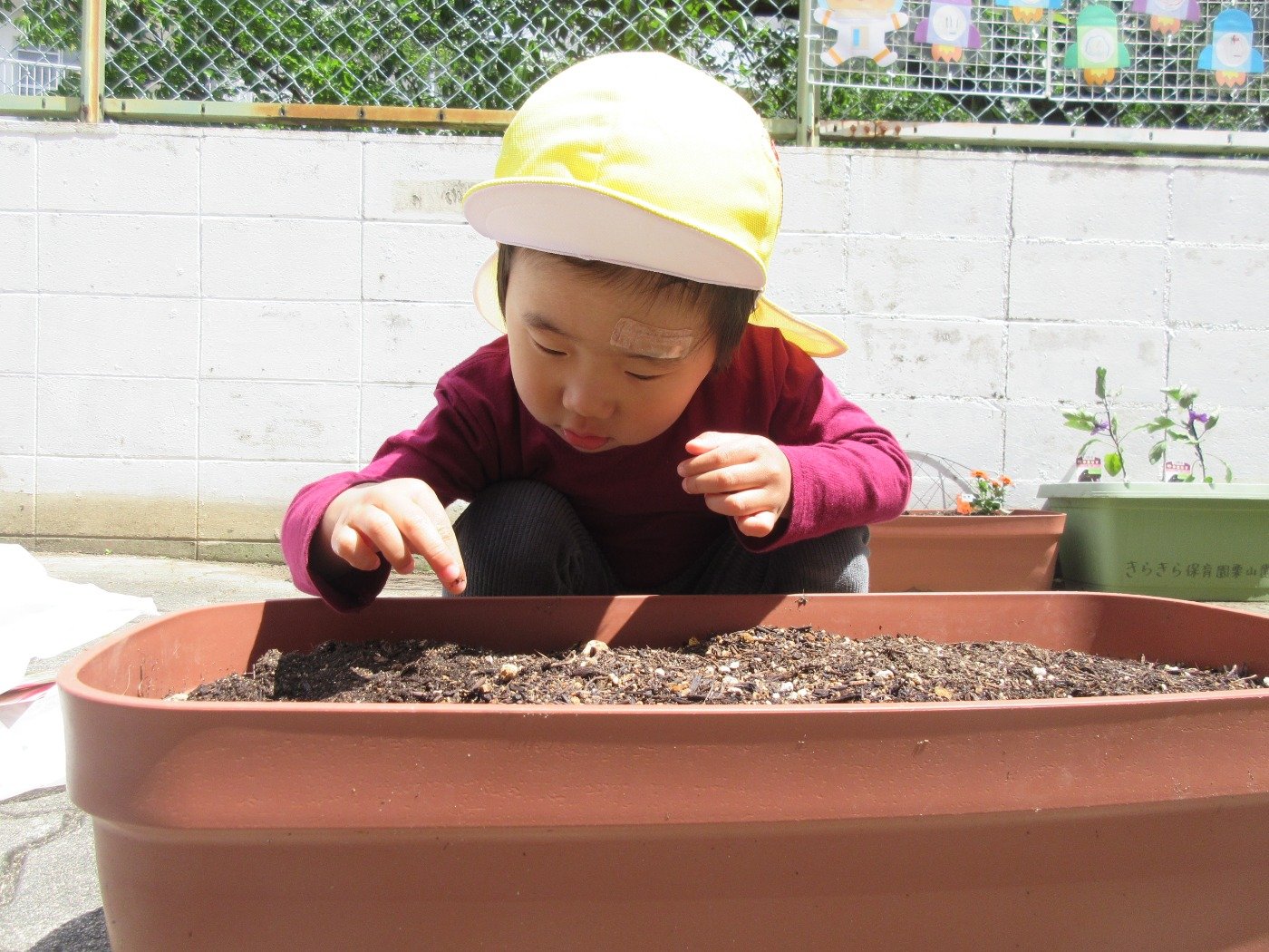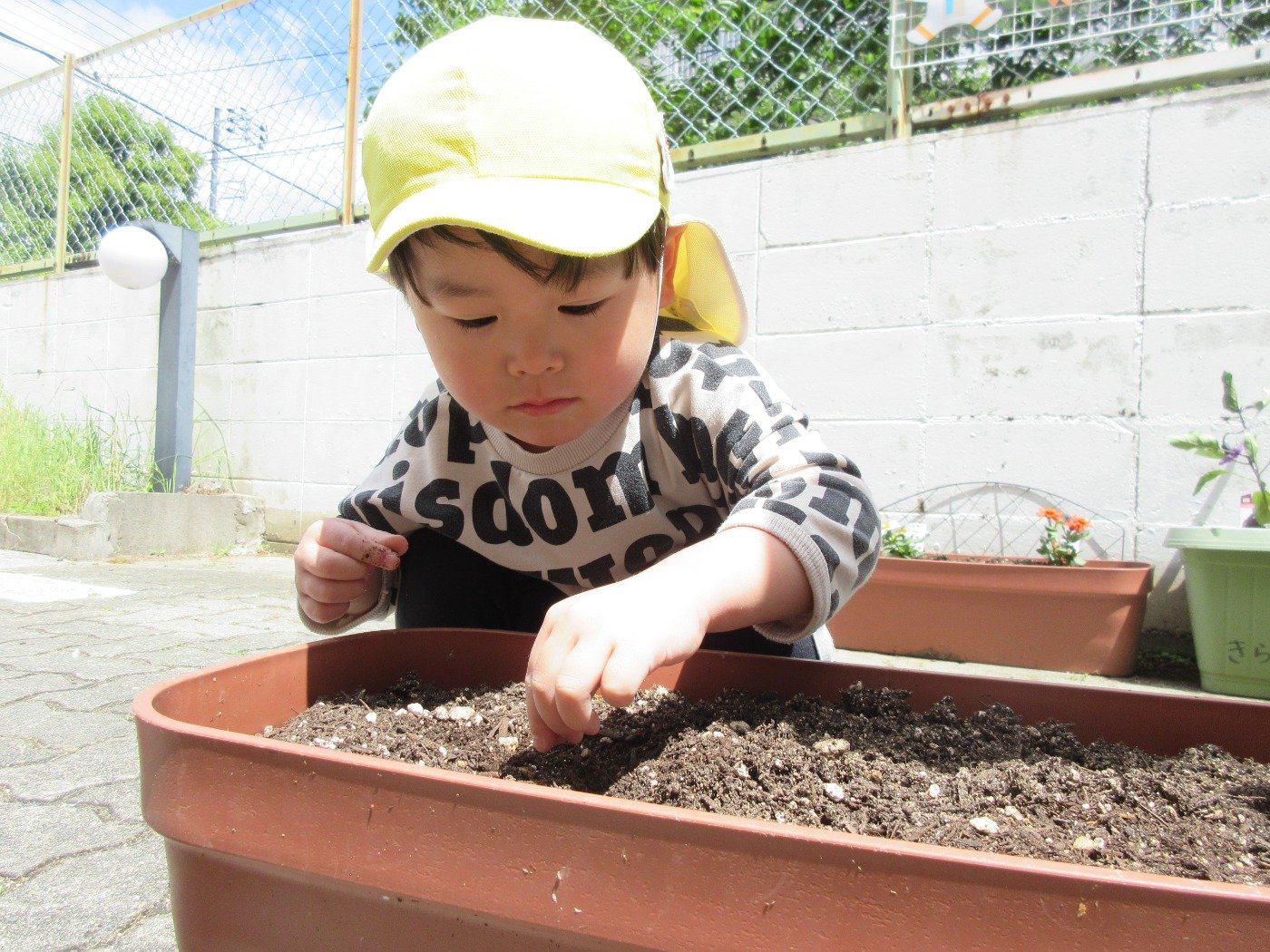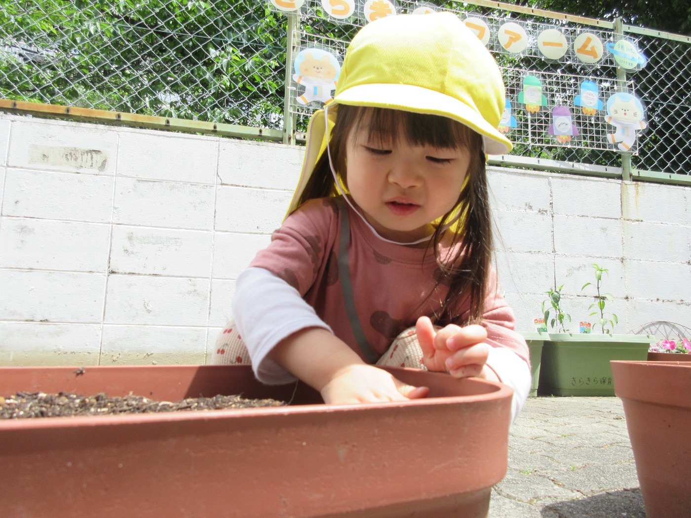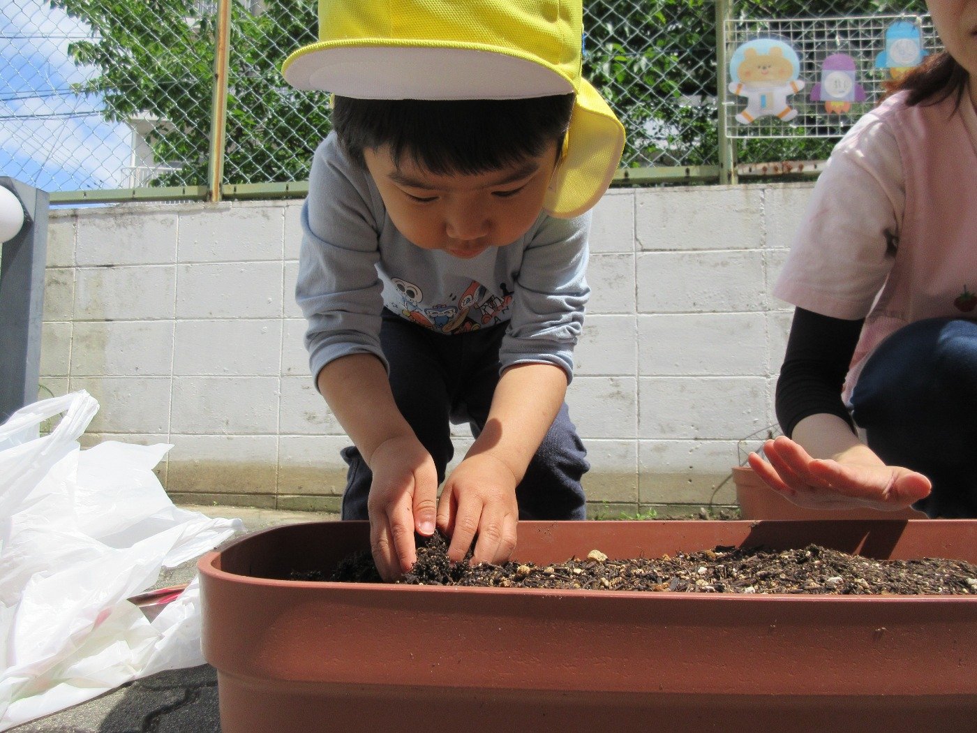 自分で苗を植えて、優しくそーっとそーっと土のお布団をかけて