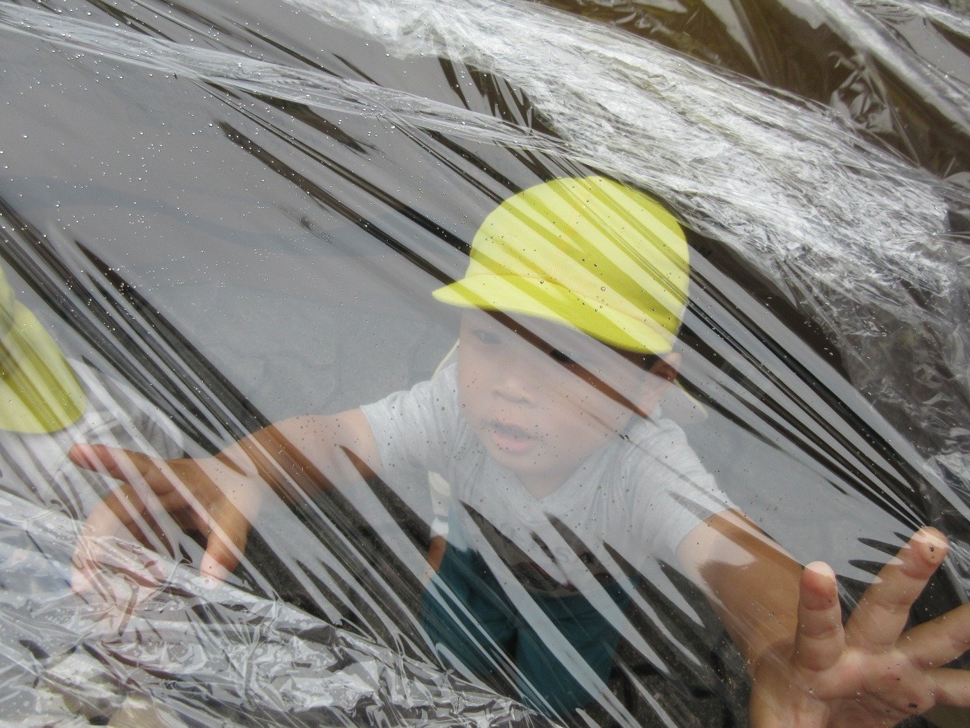 にビニールを張り、意気揚々と1階に降りて行きました♪