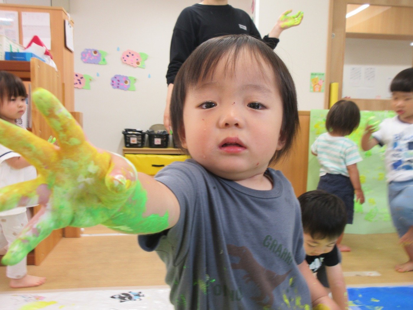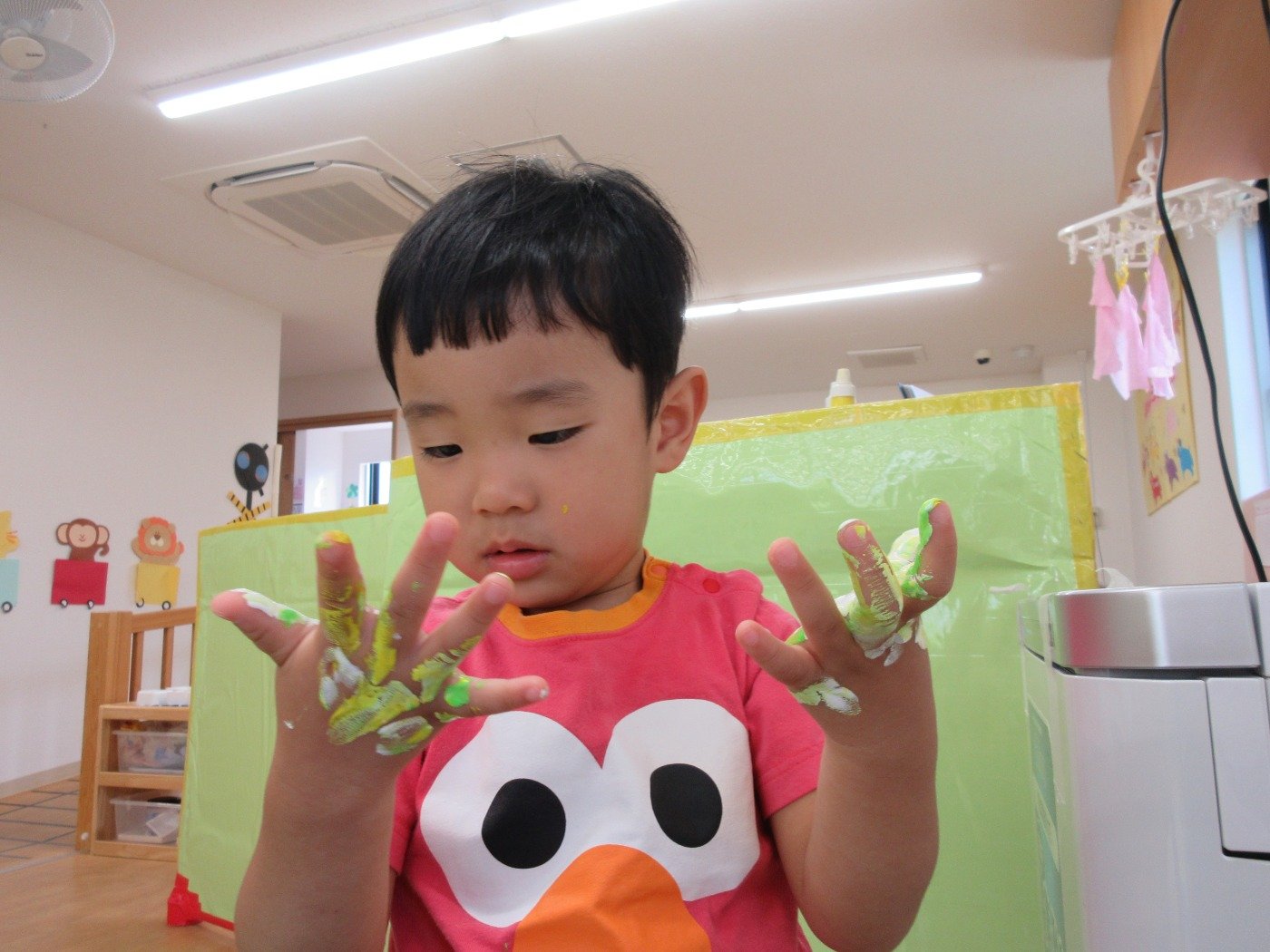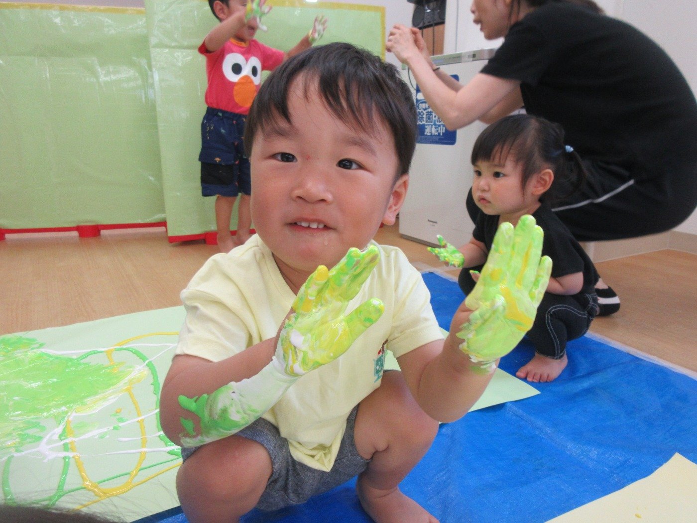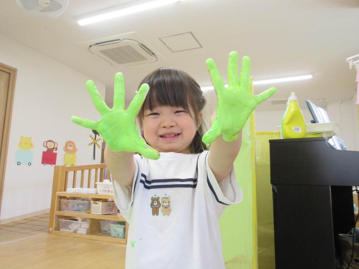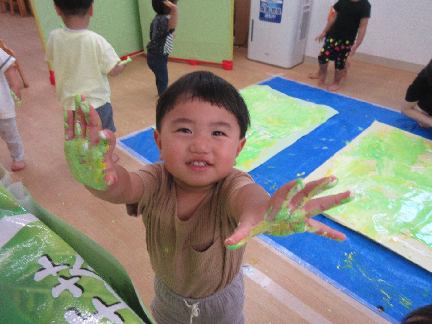 「見て見て~!」と手のひらいっぱいについた絵の具を嬉しそうに見せてくれました。