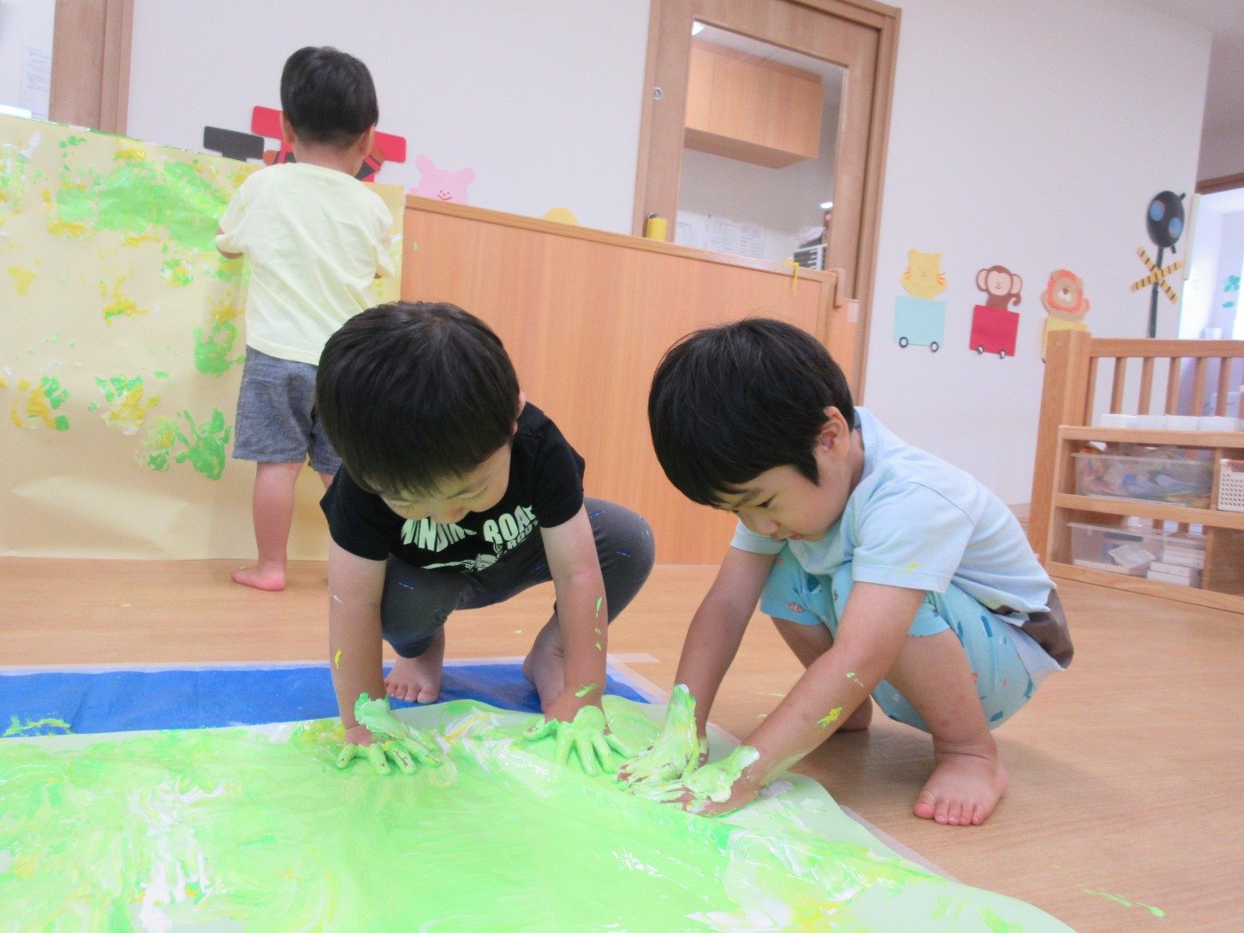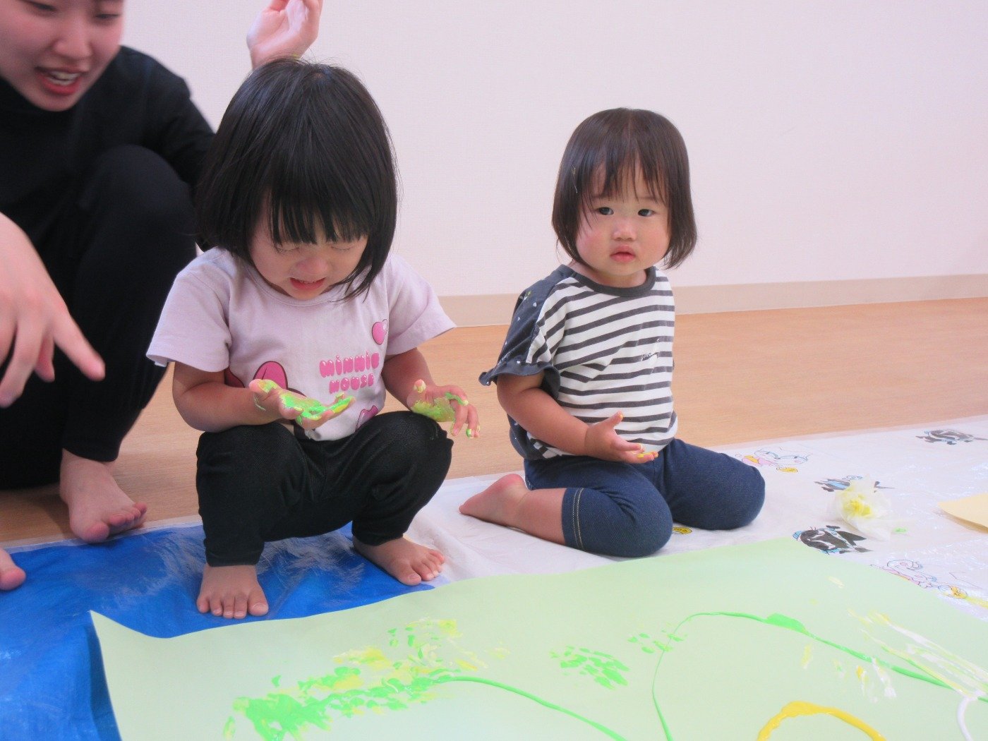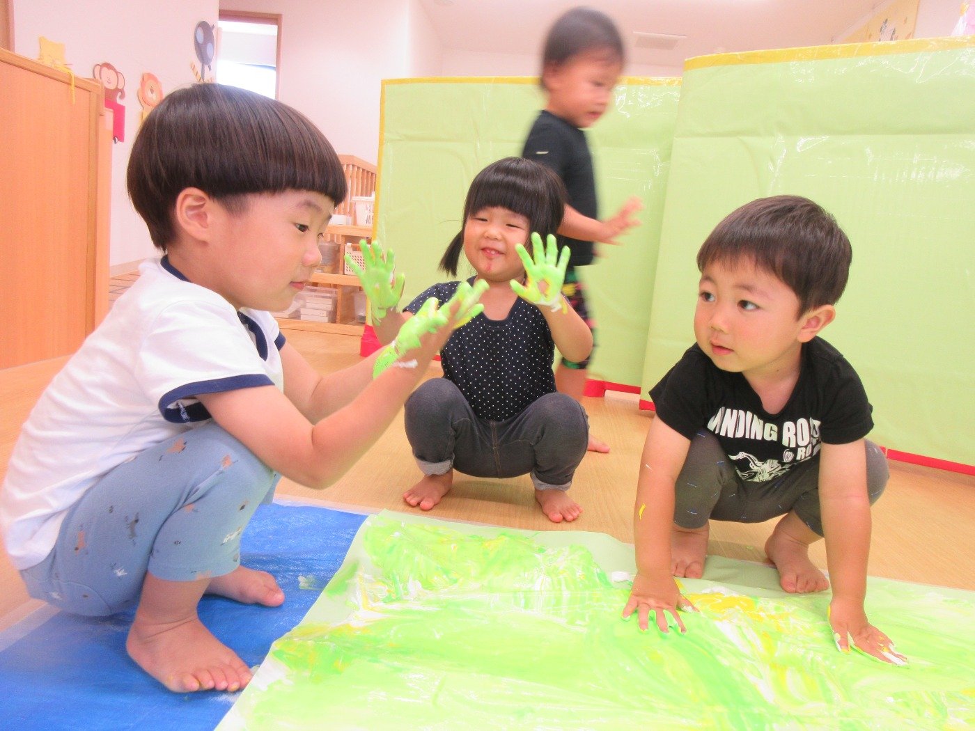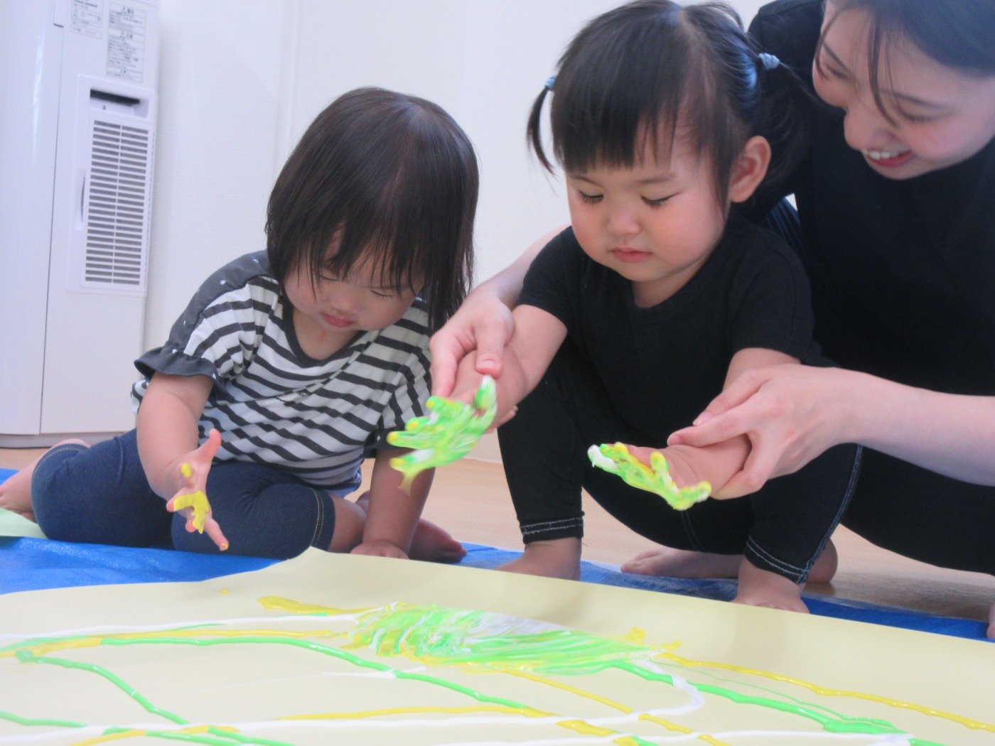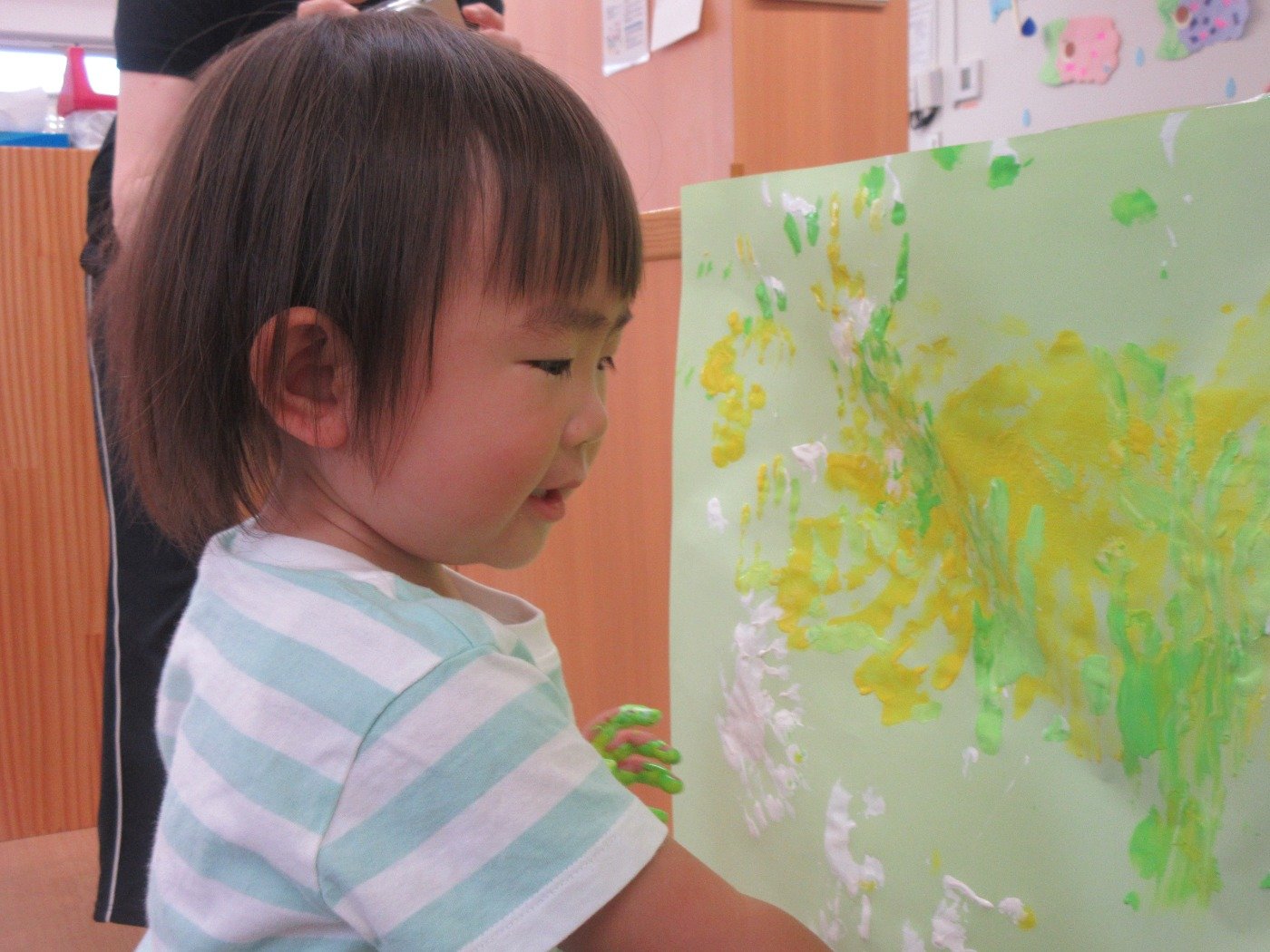 「見て見て~!」と手のひらいっぱいについた絵の具を嬉しそうに見せてくれました。