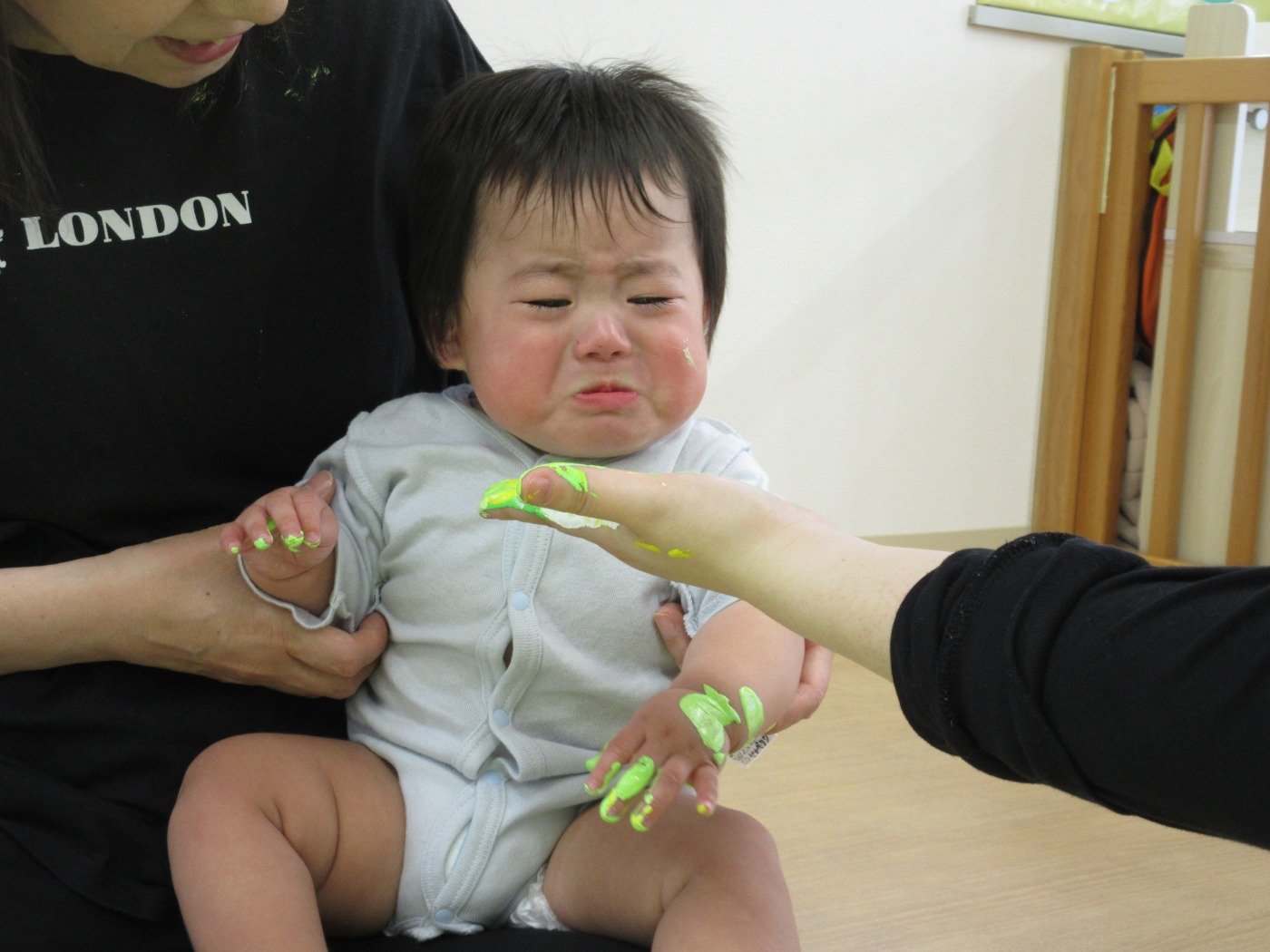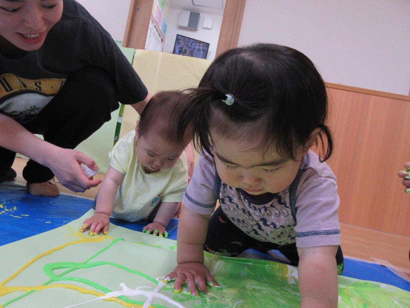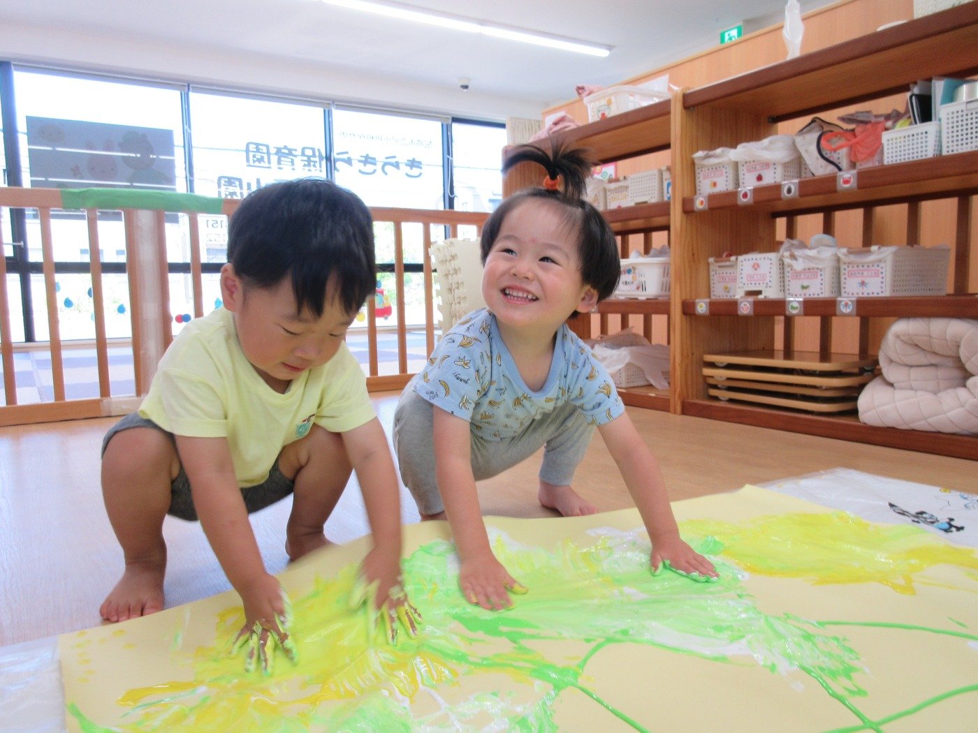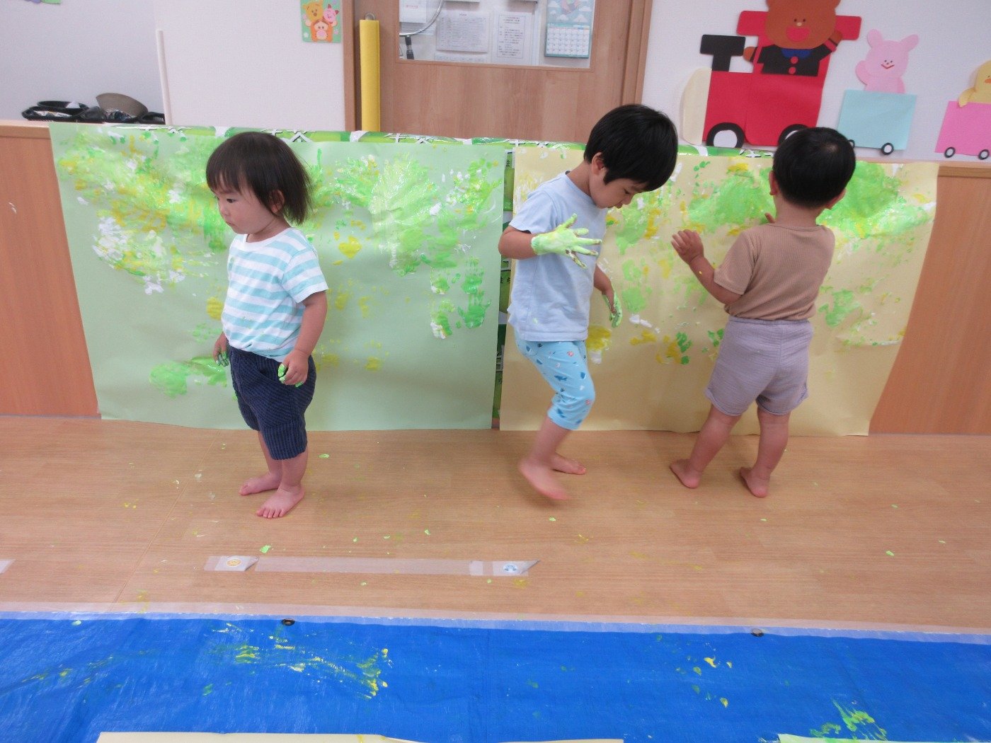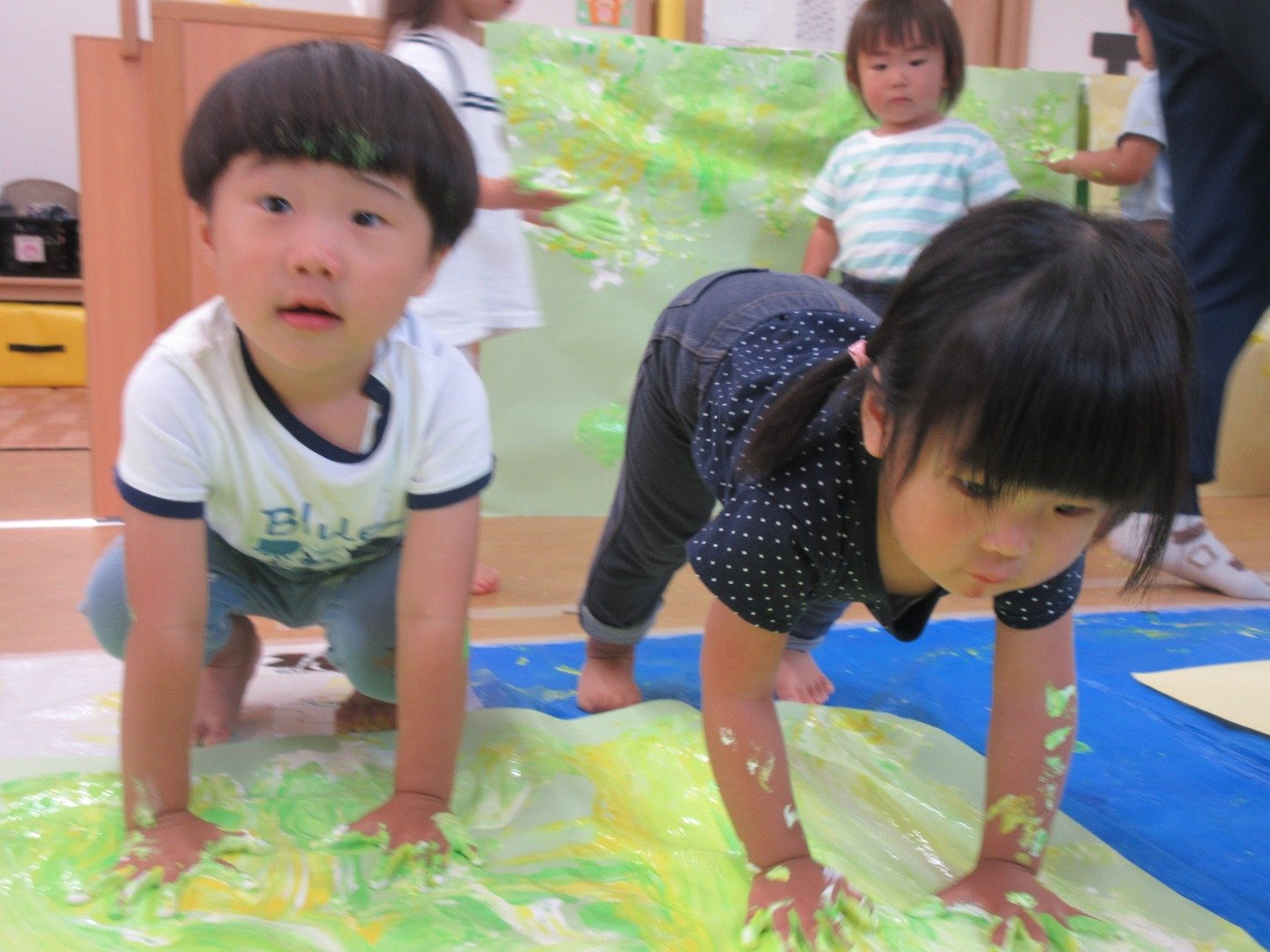 「見て見て~!」と手のひらいっぱいについた絵の具を嬉しそうに見せてくれました。