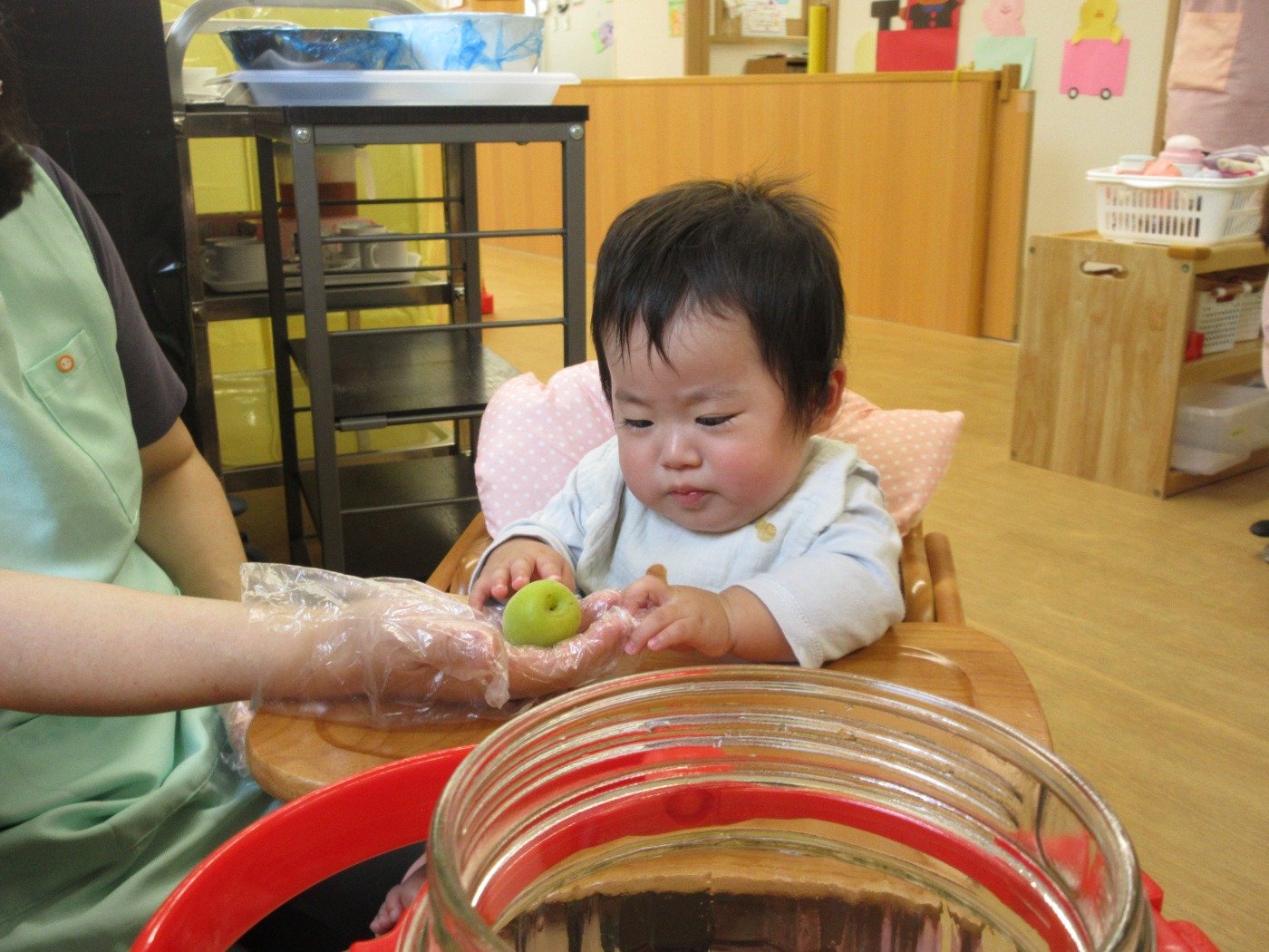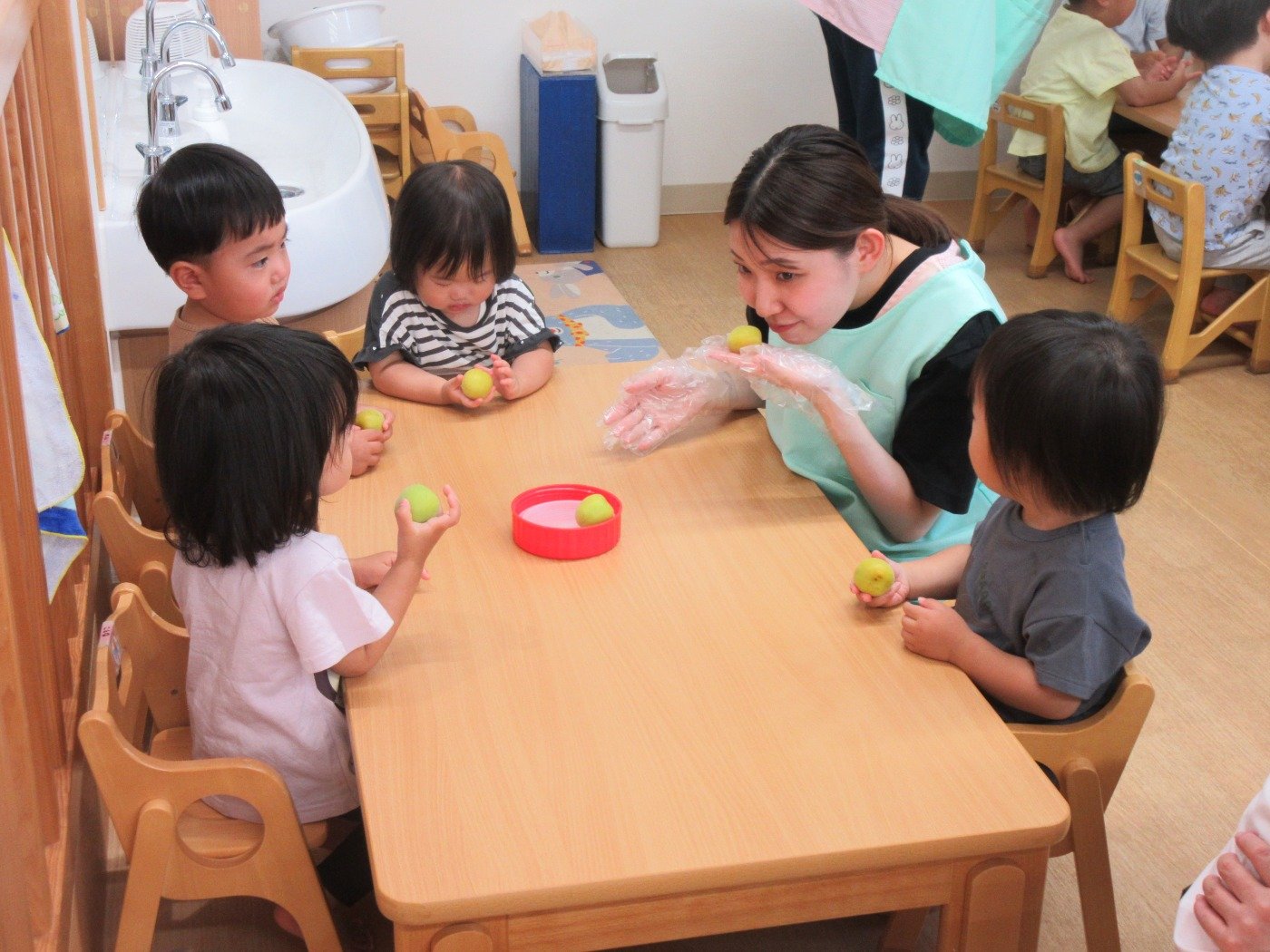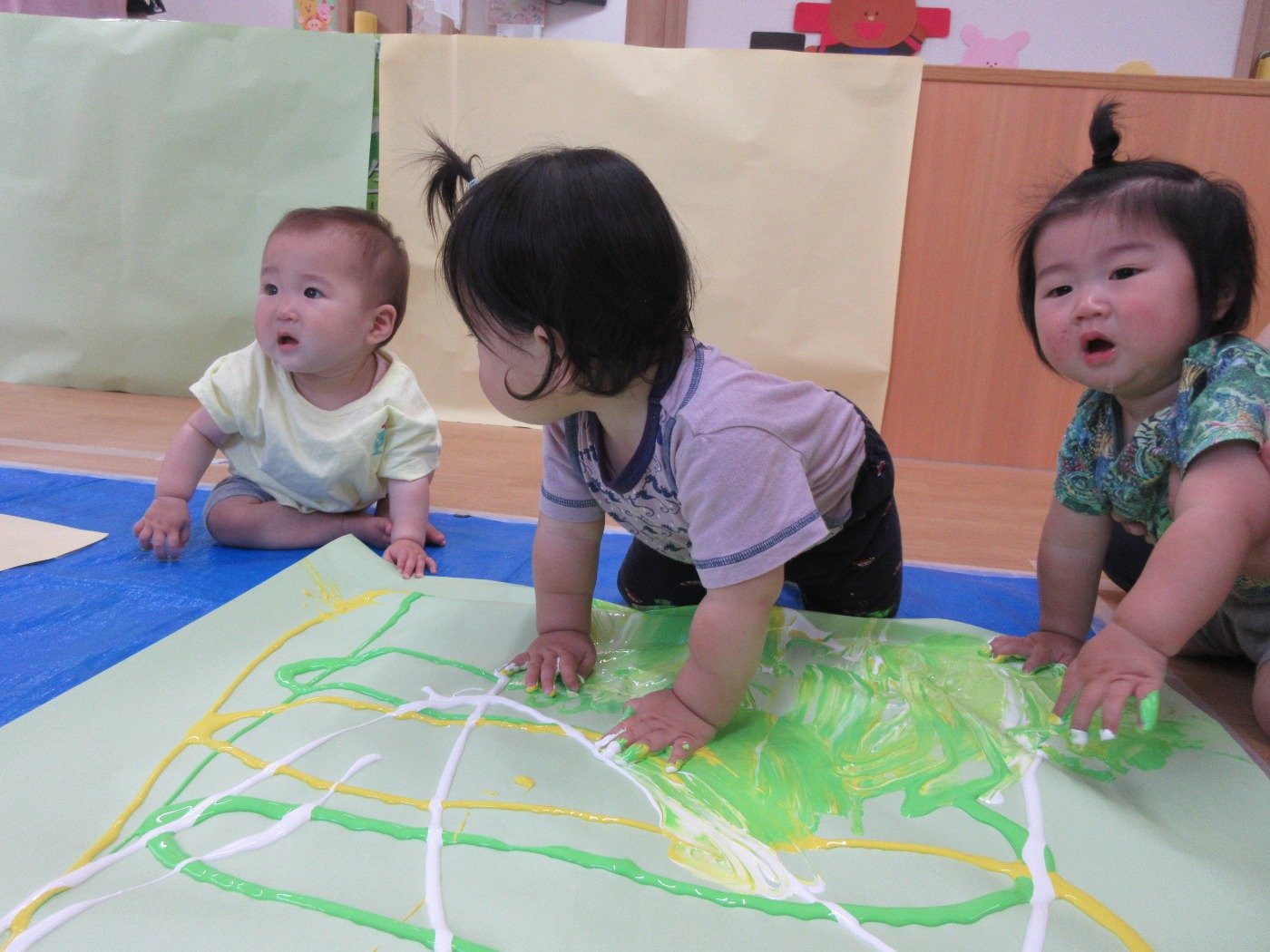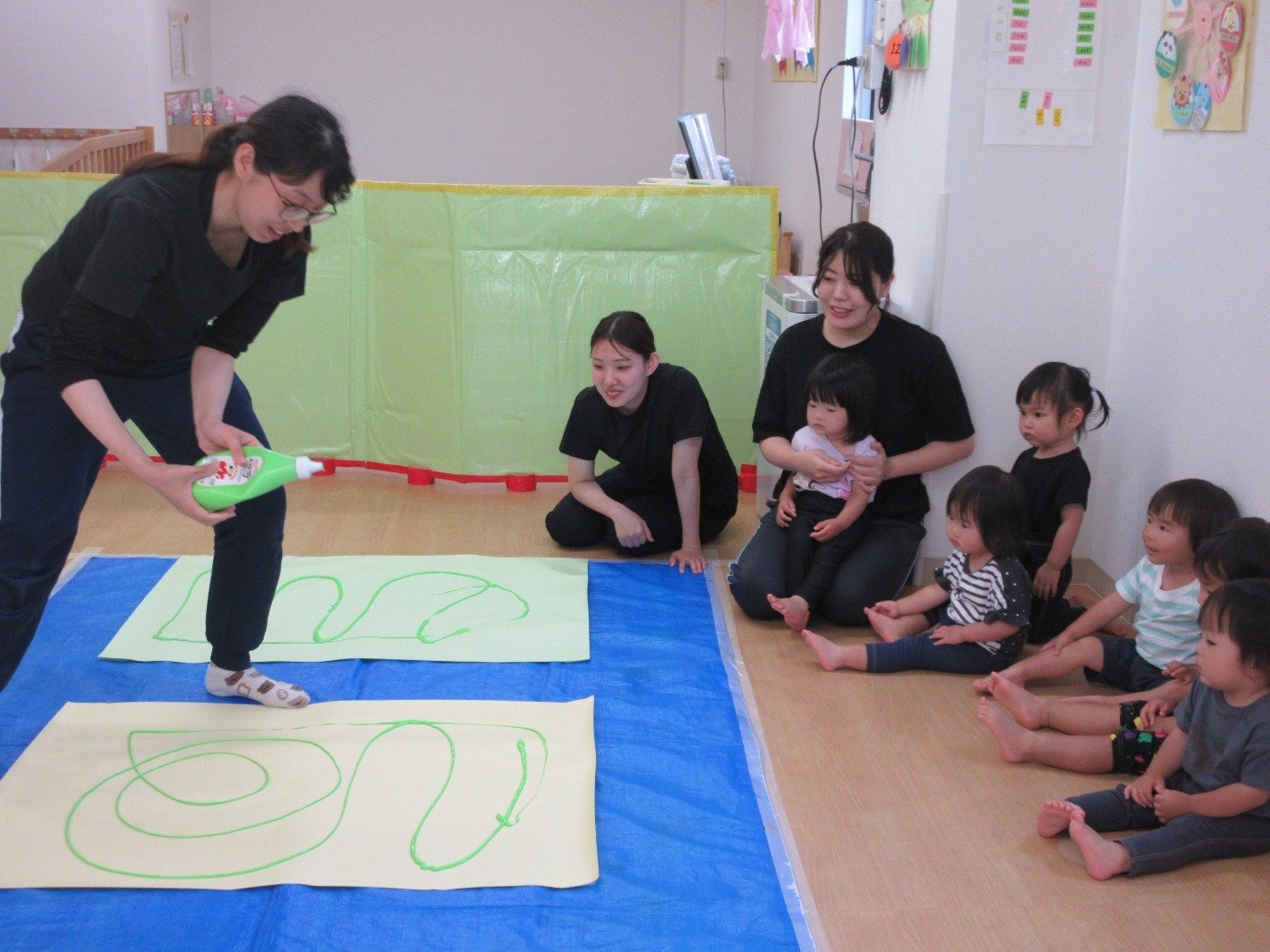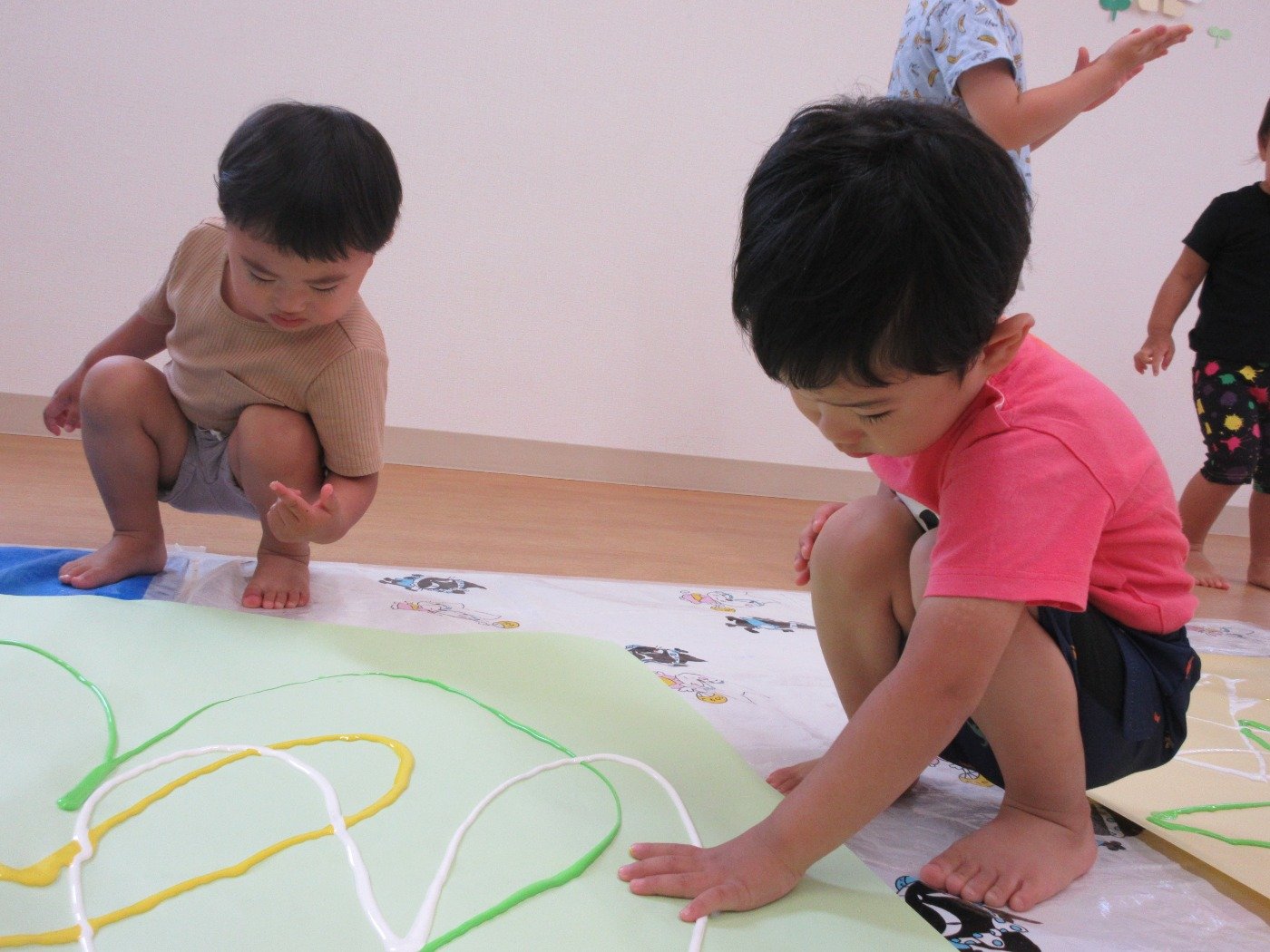 「見て見て~!」と手のひらいっぱいについた絵の具を嬉しそうに見せてくれました。