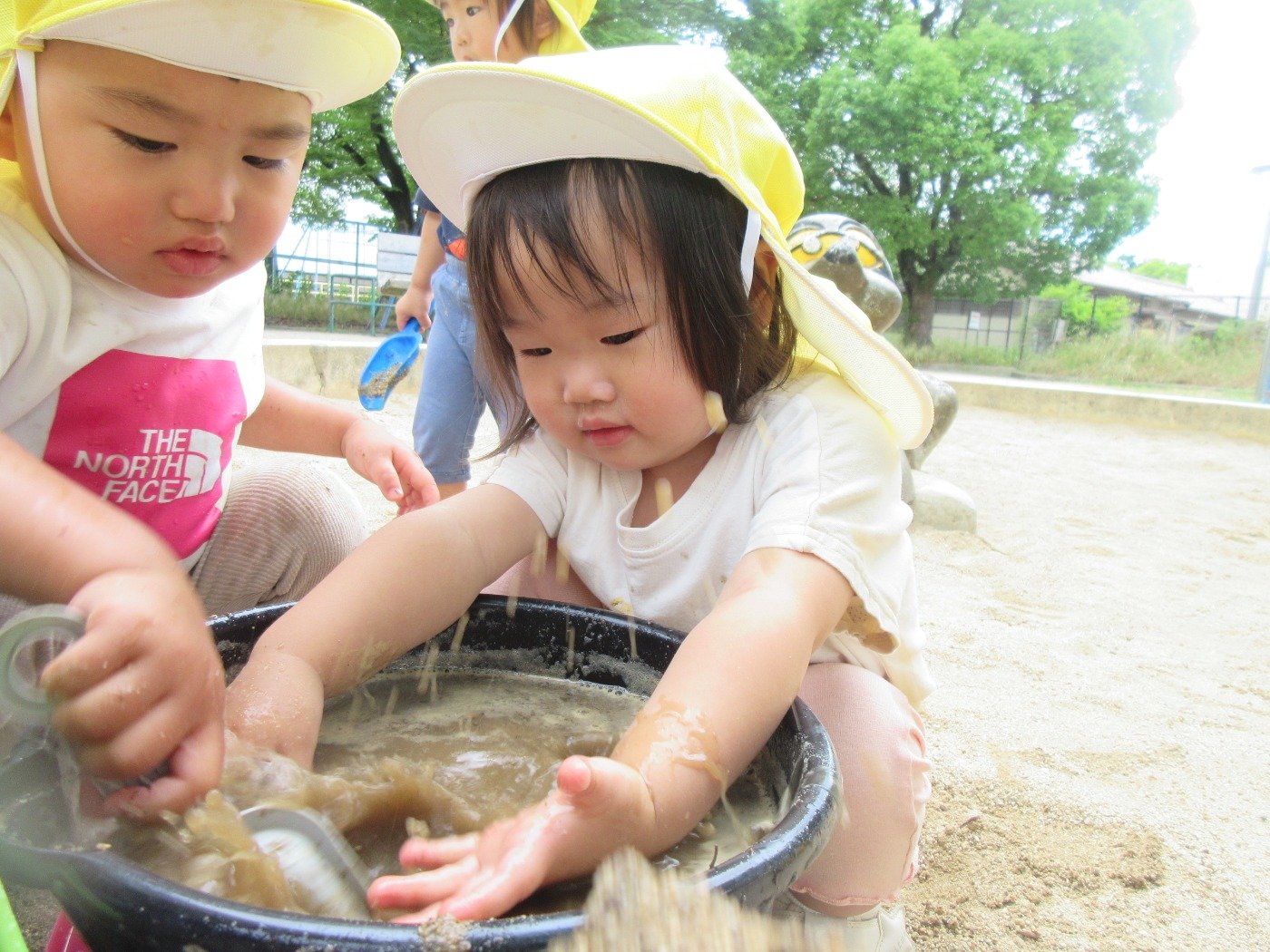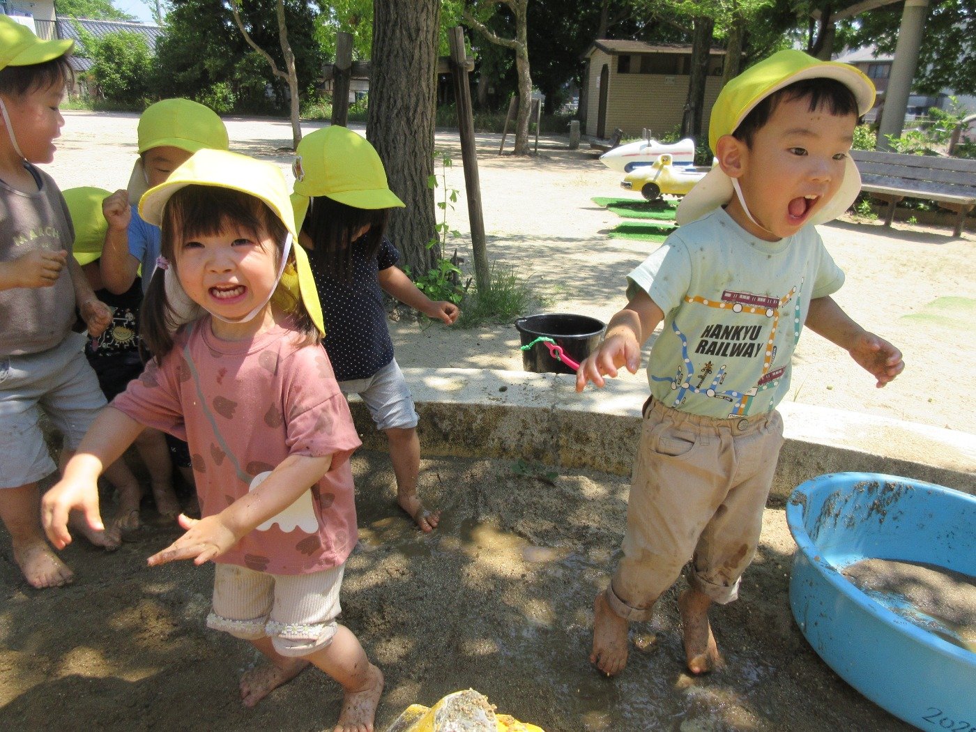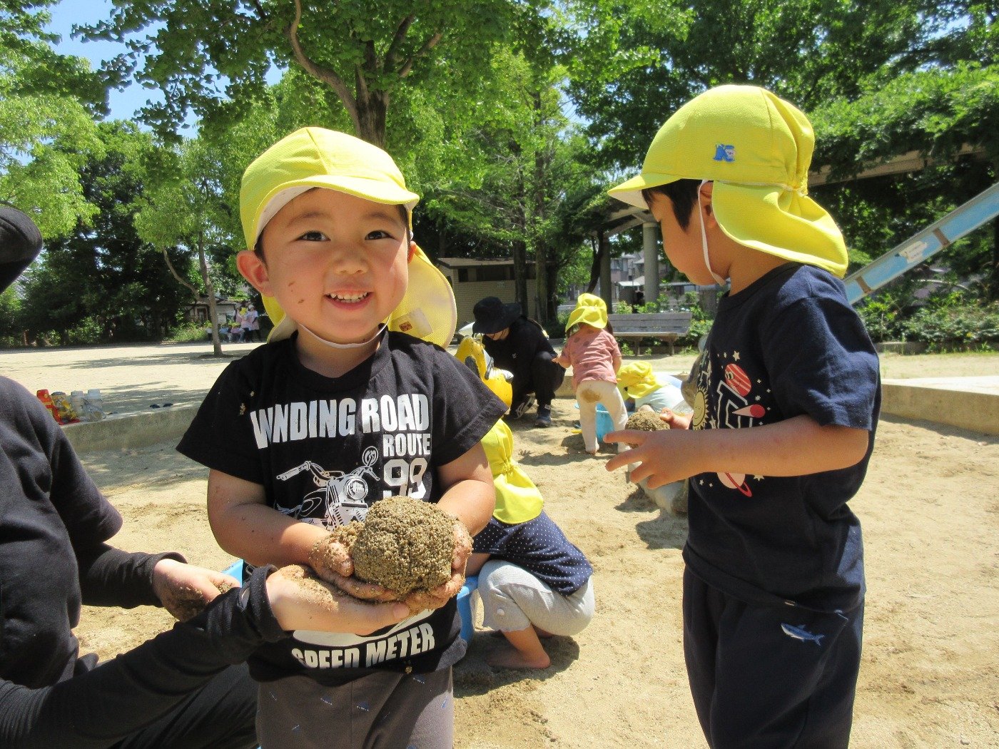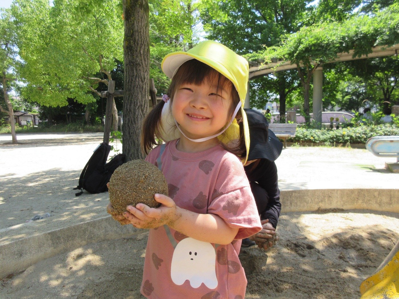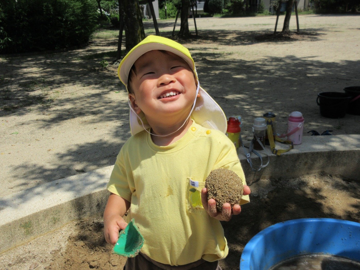 泥んこ遊びも板についてきて、初めはスコップで泥をすくっていたのが、