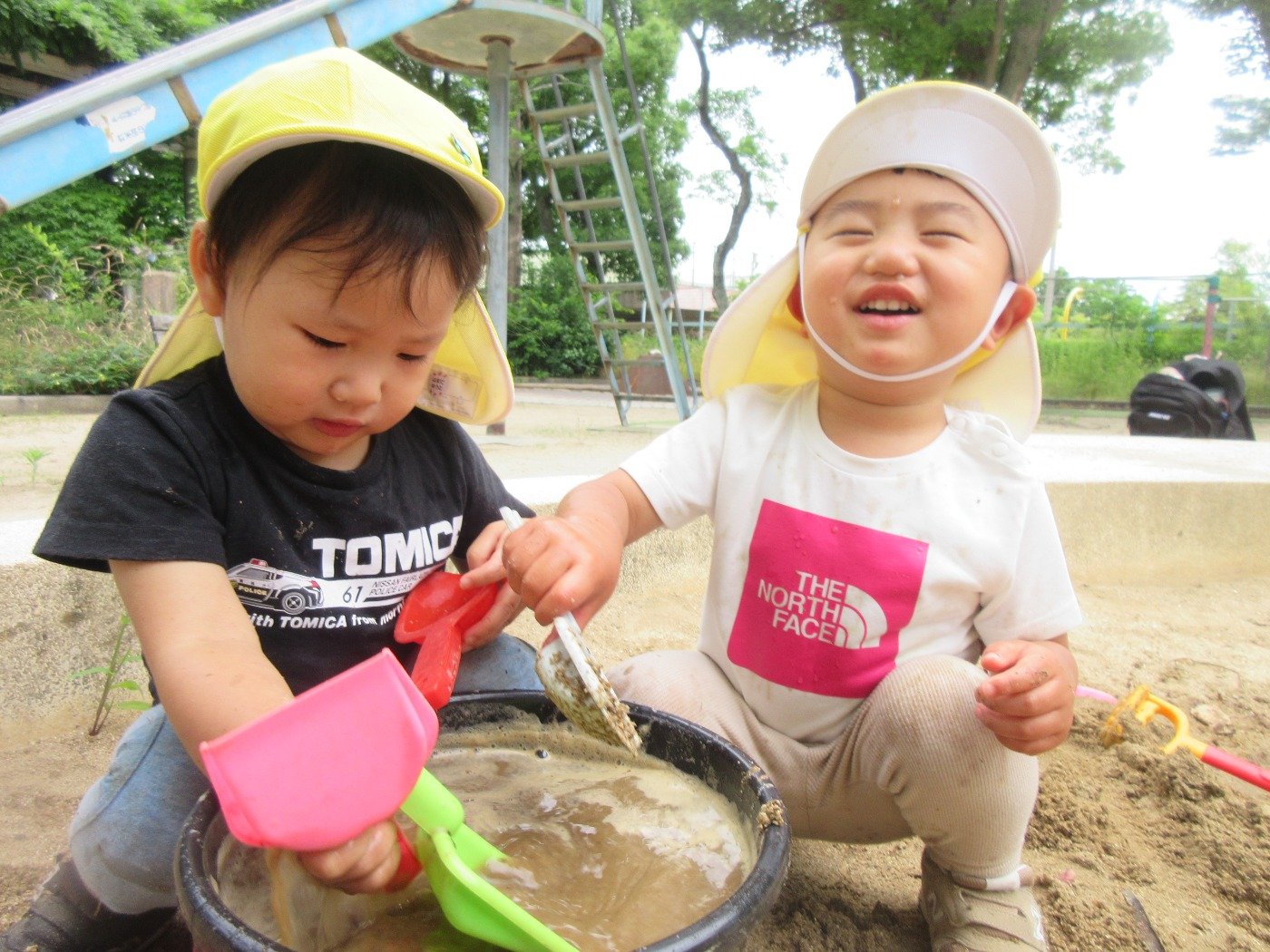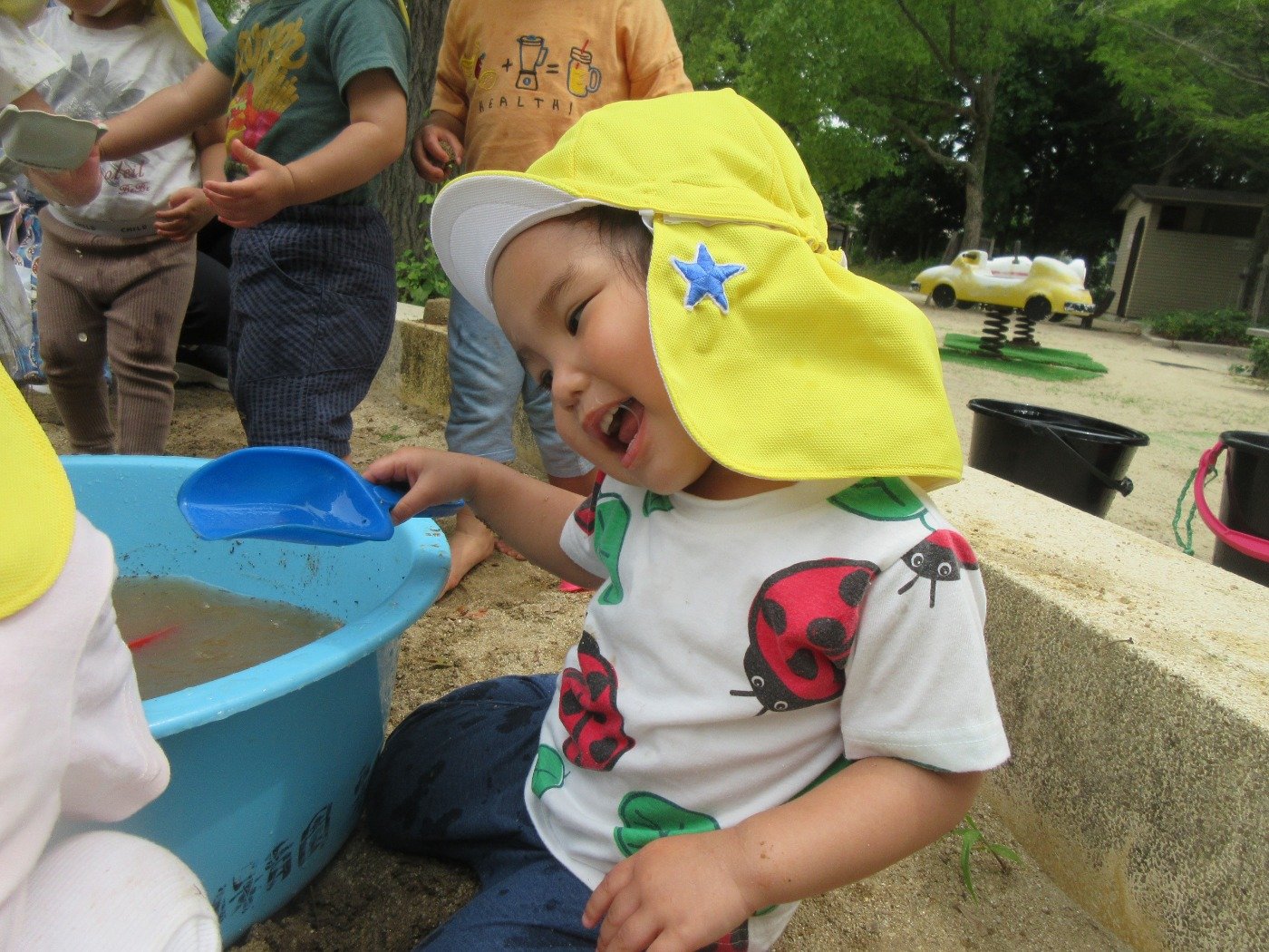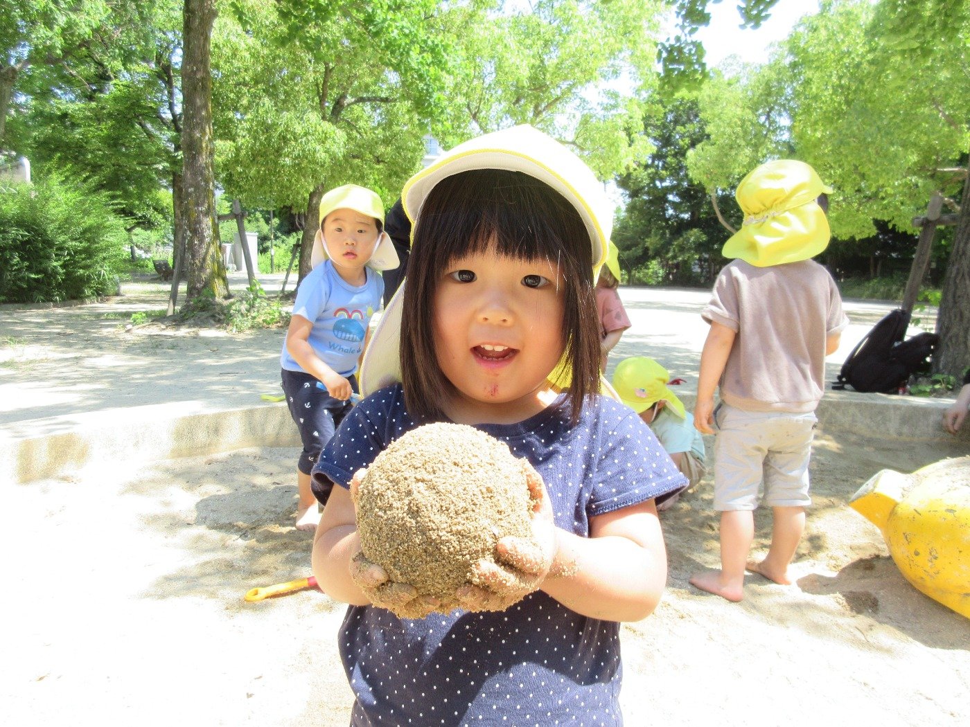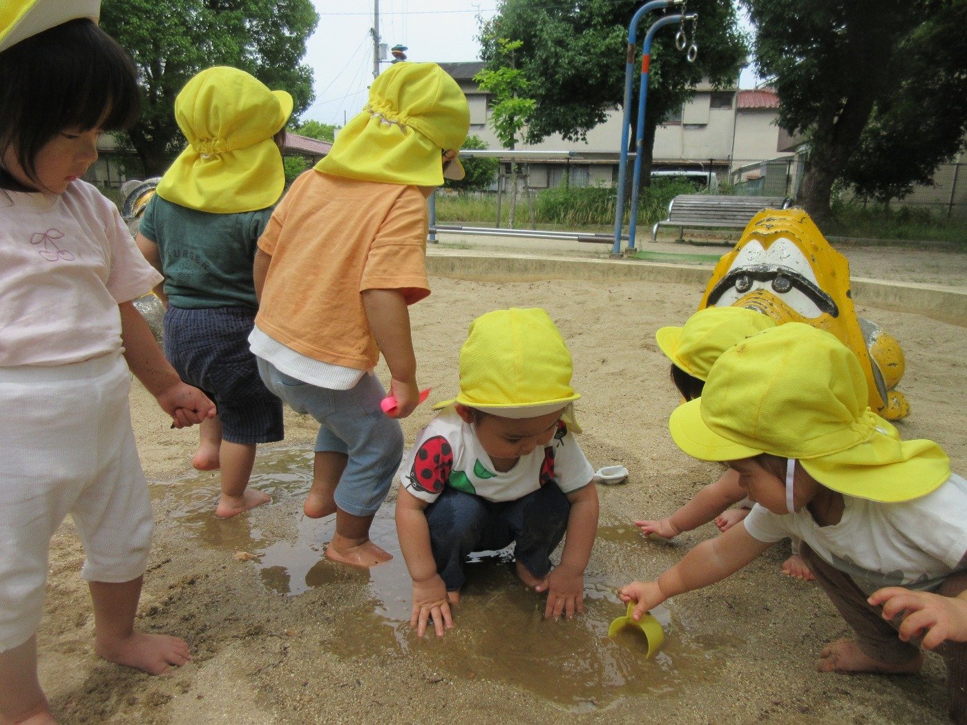 泥んこ遊びも板についてきて、初めはスコップで泥をすくっていたのが、