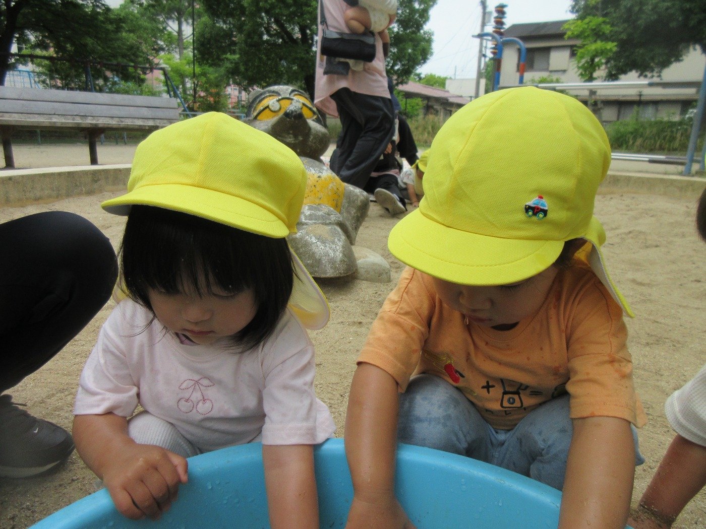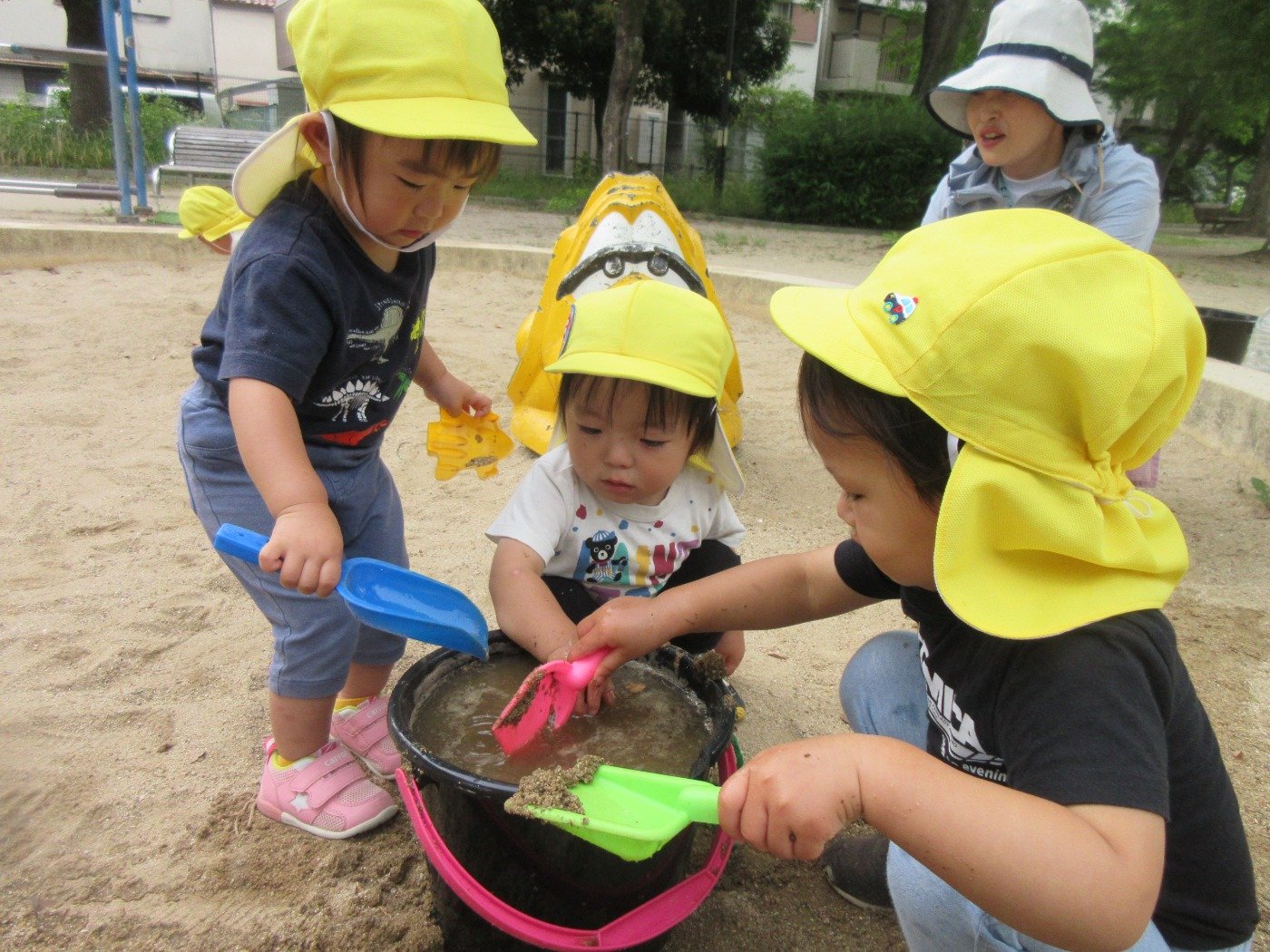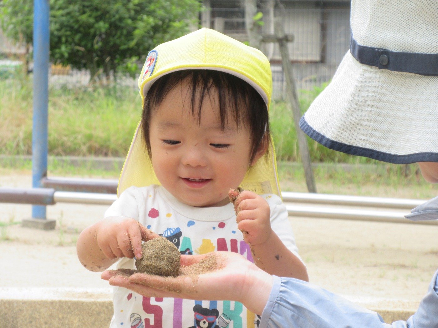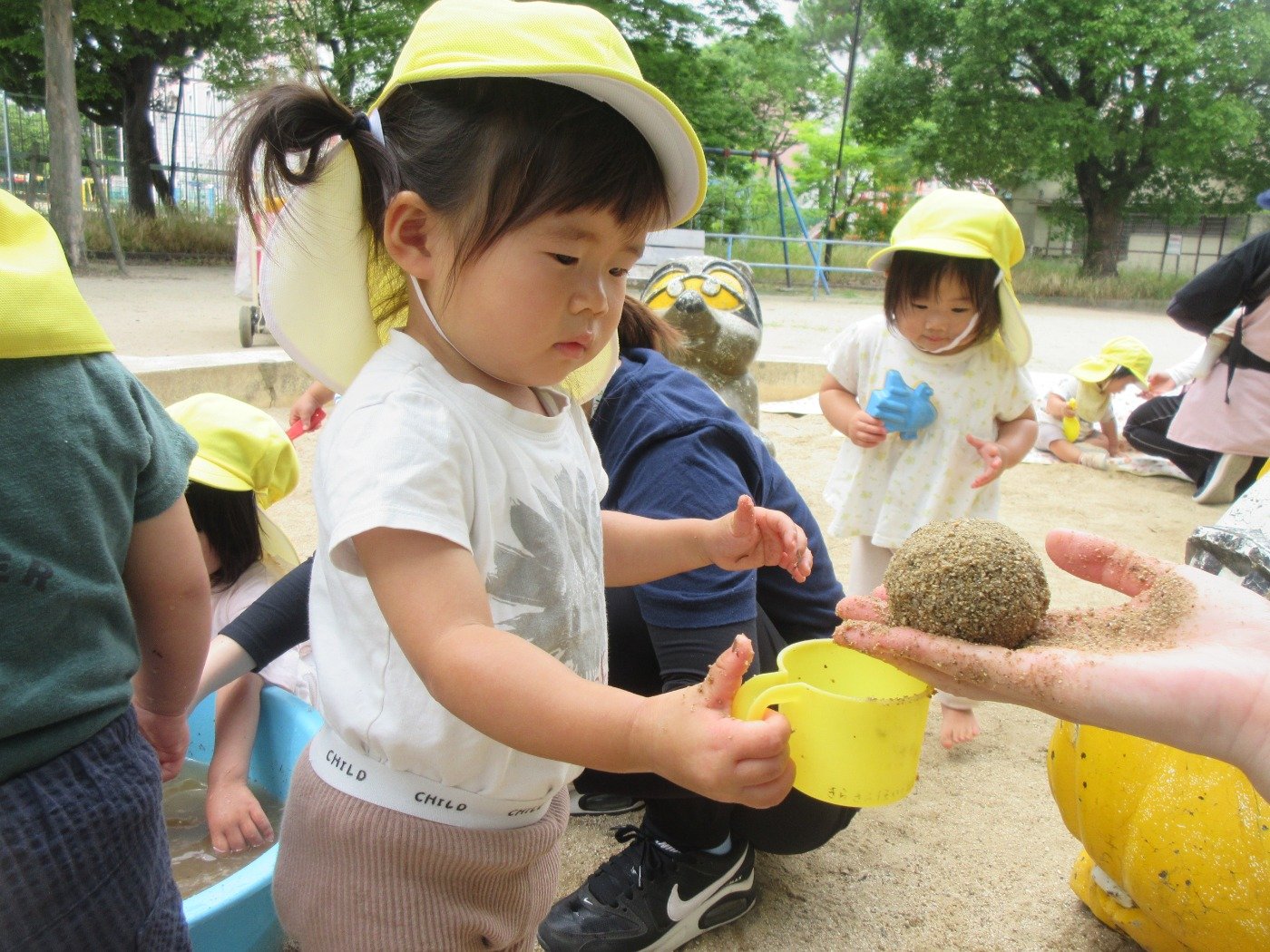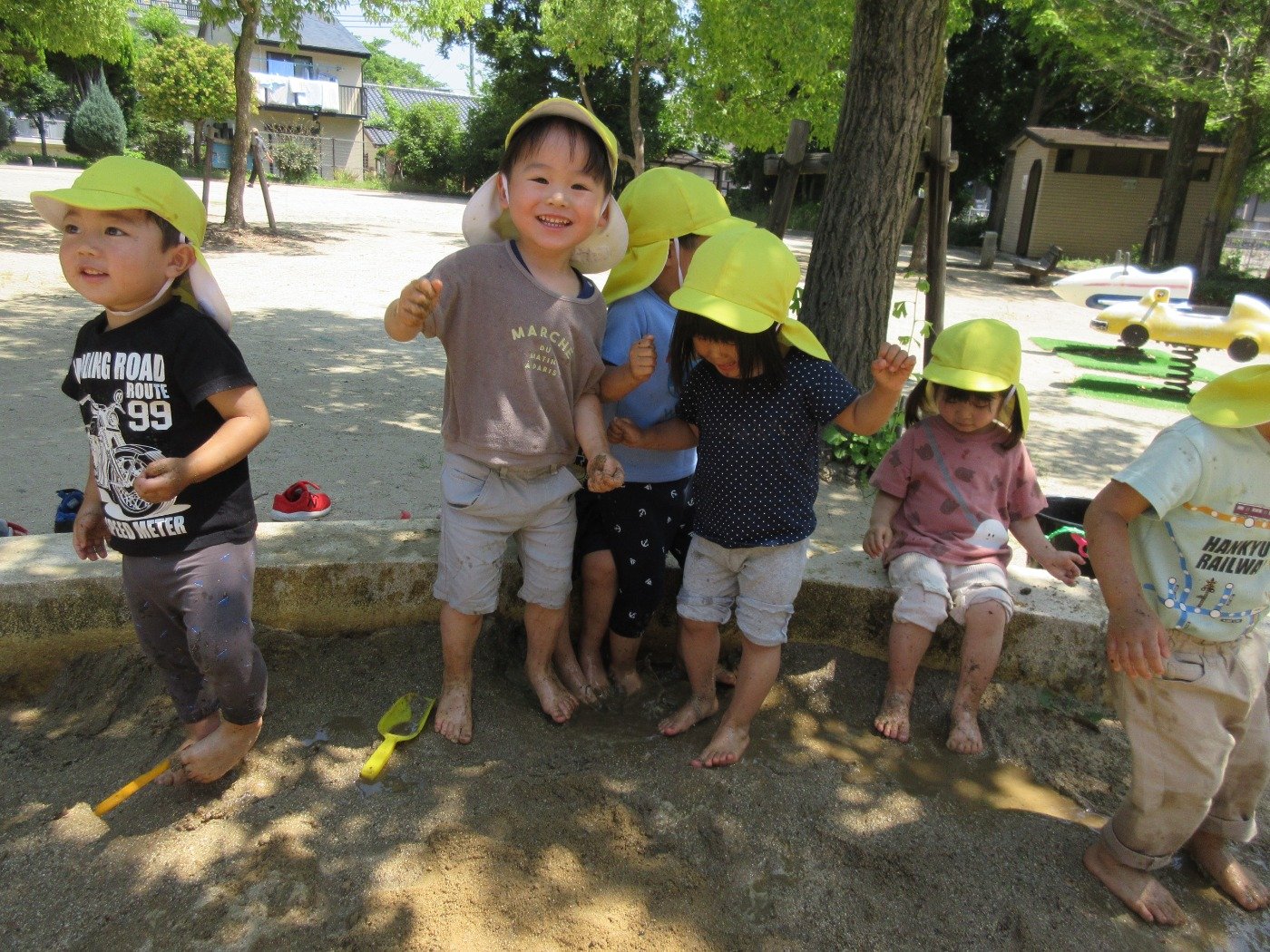泥んこ遊びも板についてきて、初めはスコップで泥をすくっていたのが、