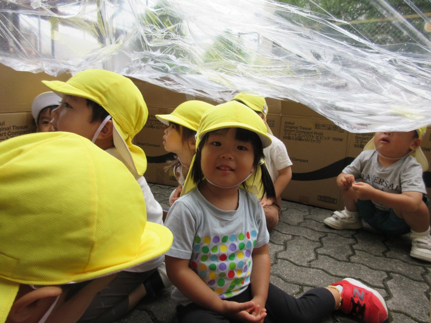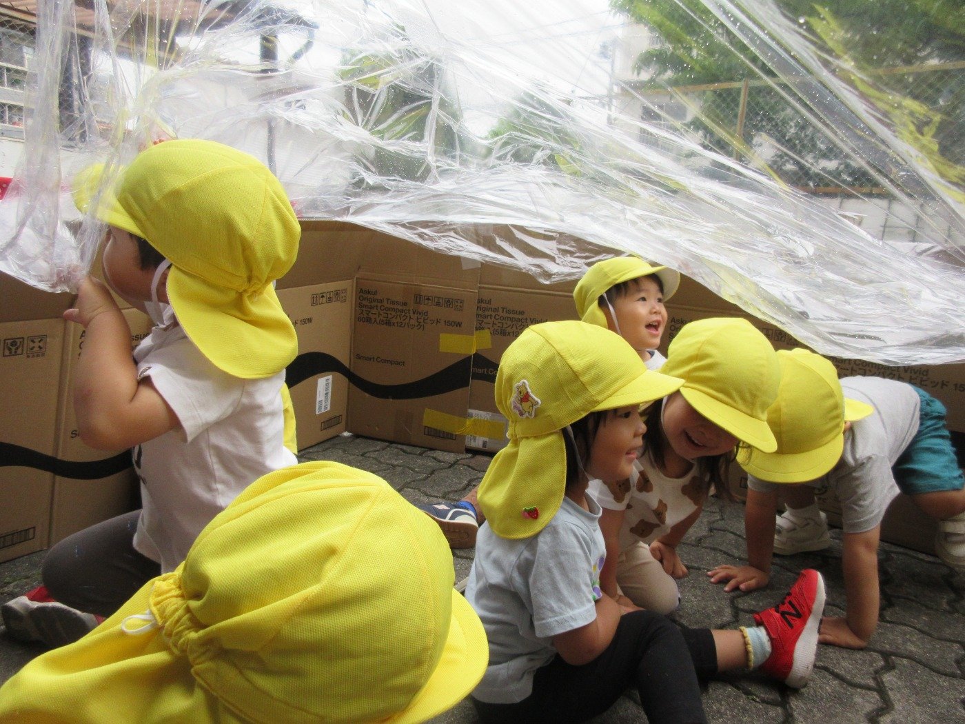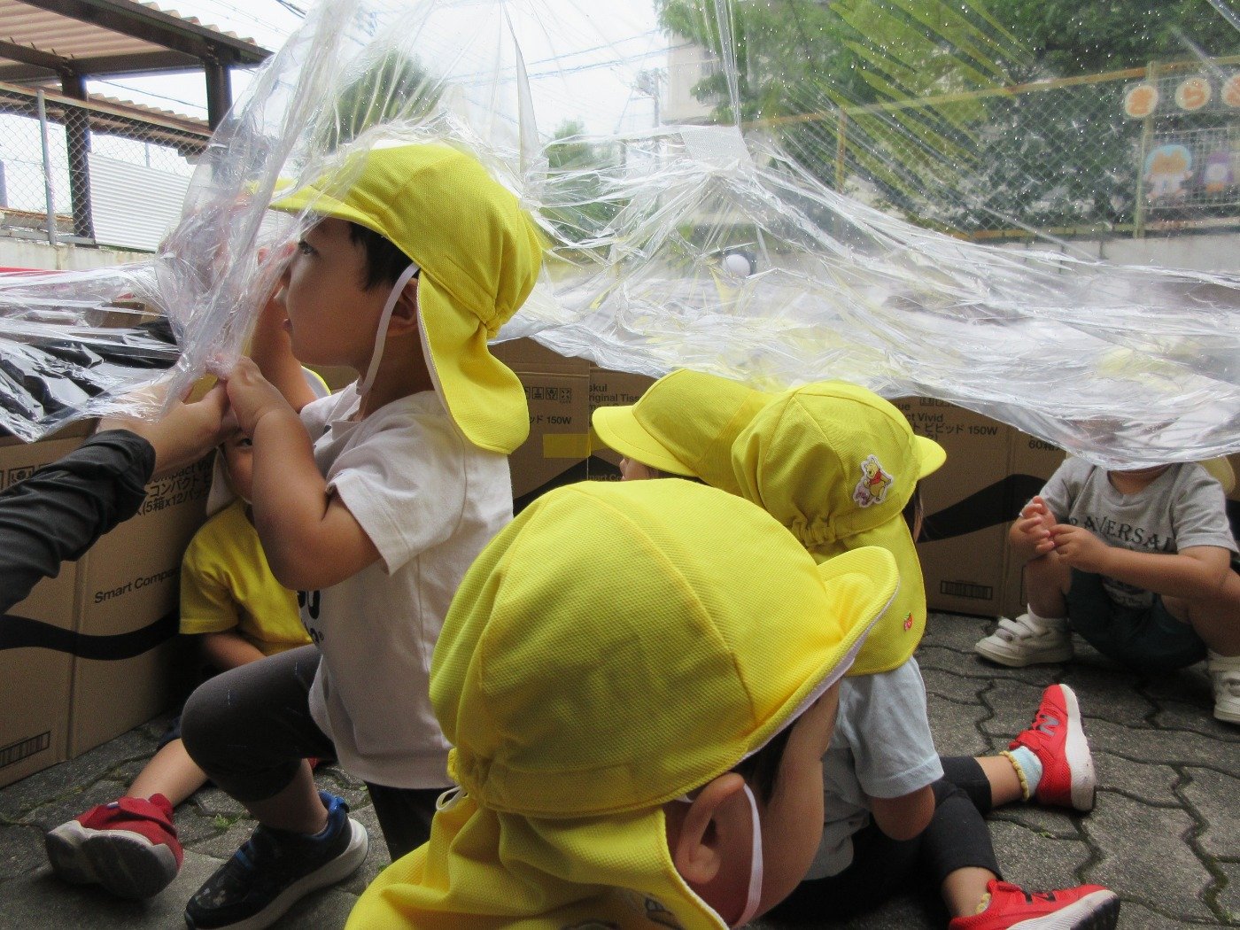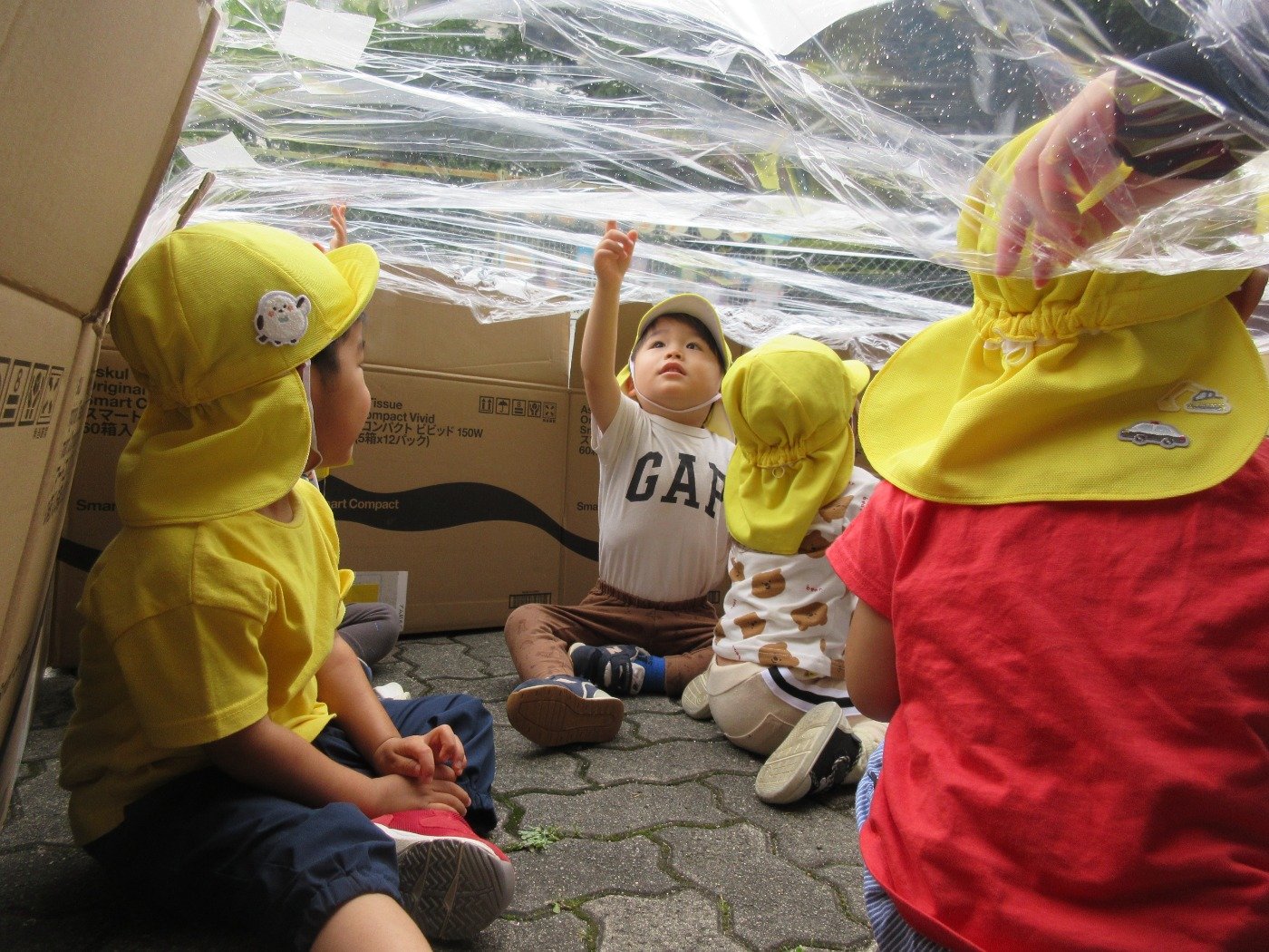 みんなでおしゃべりしながら、降ってくる雨を観察したり、