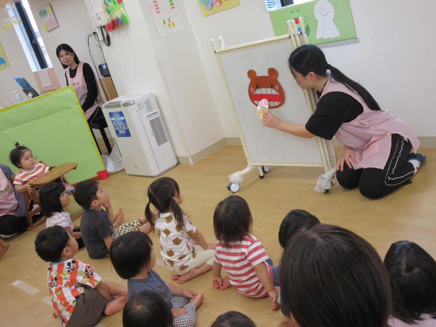 はみがきの歌を歌ったり、はみがきの絵本を見たり…