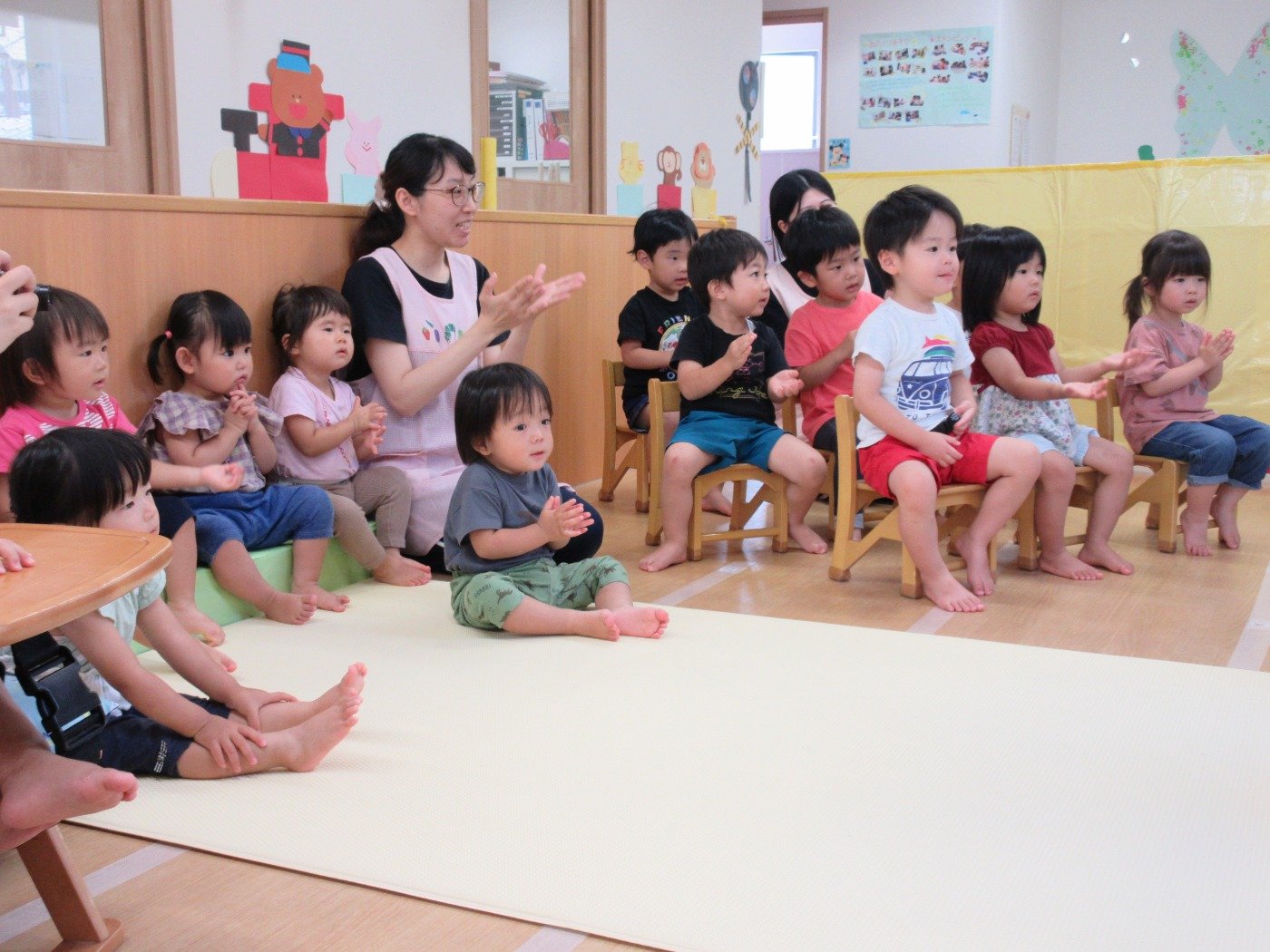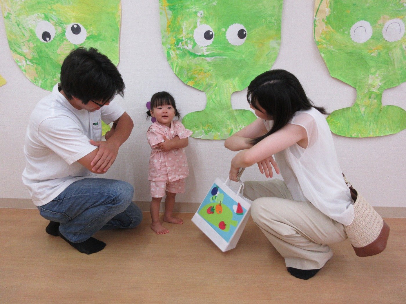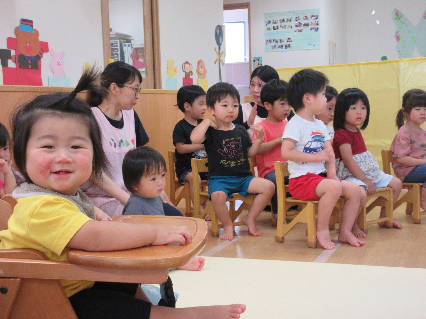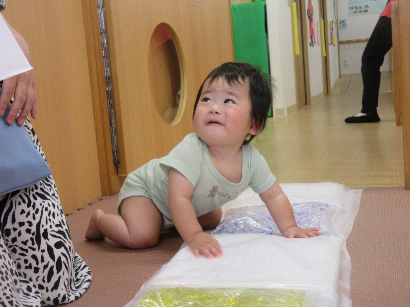 ひよこ組さんのお友だちは、初めての水遊びです。
