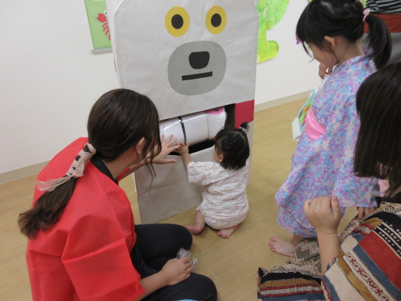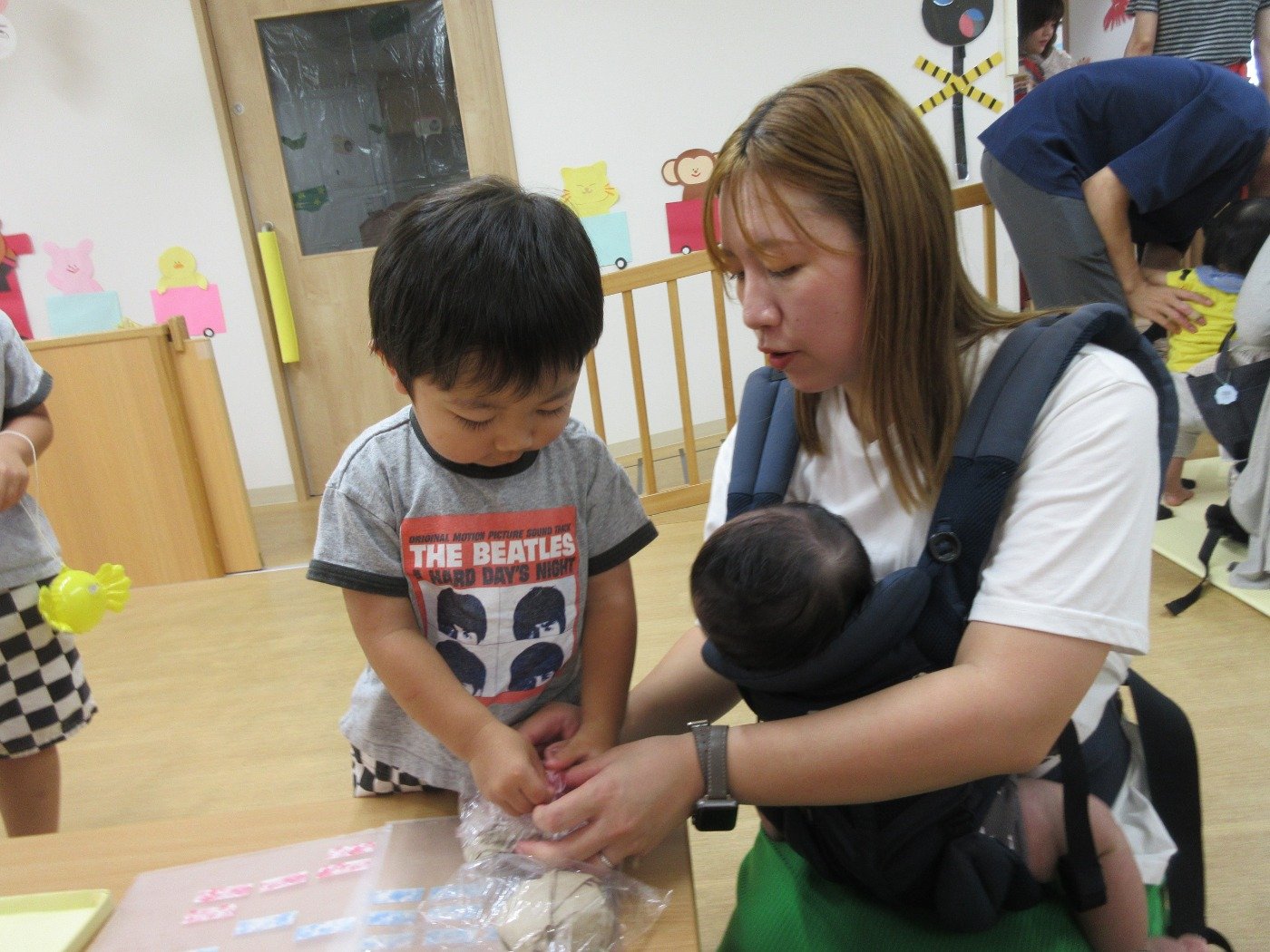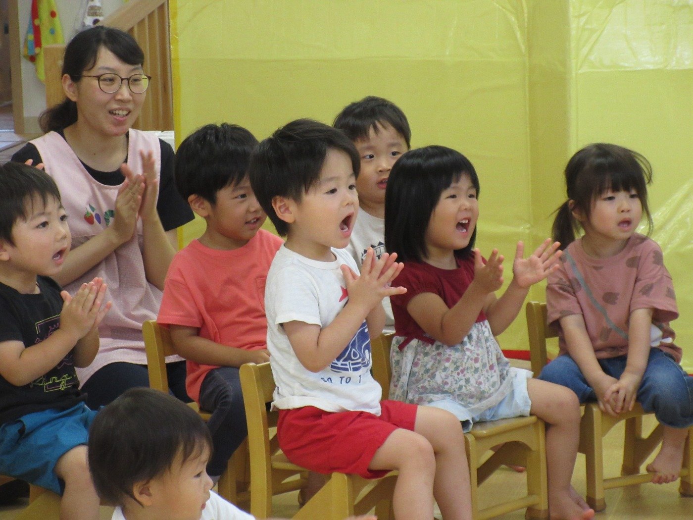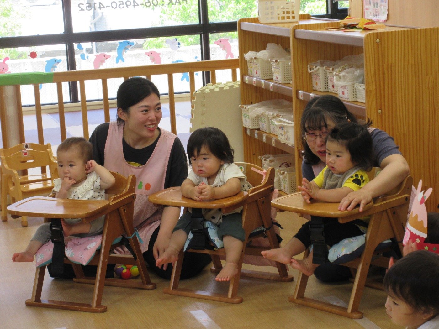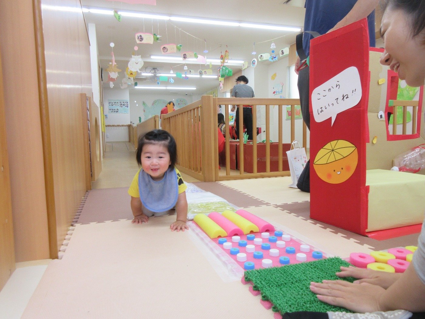 ひよこ組さんのお友だちは、初めての水遊びです。