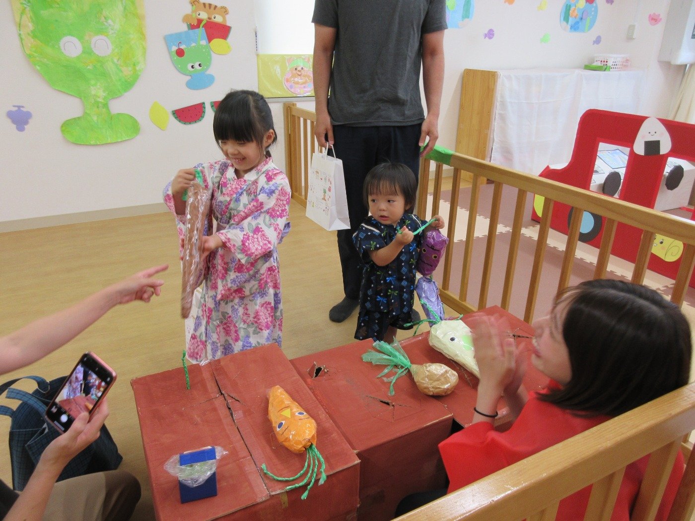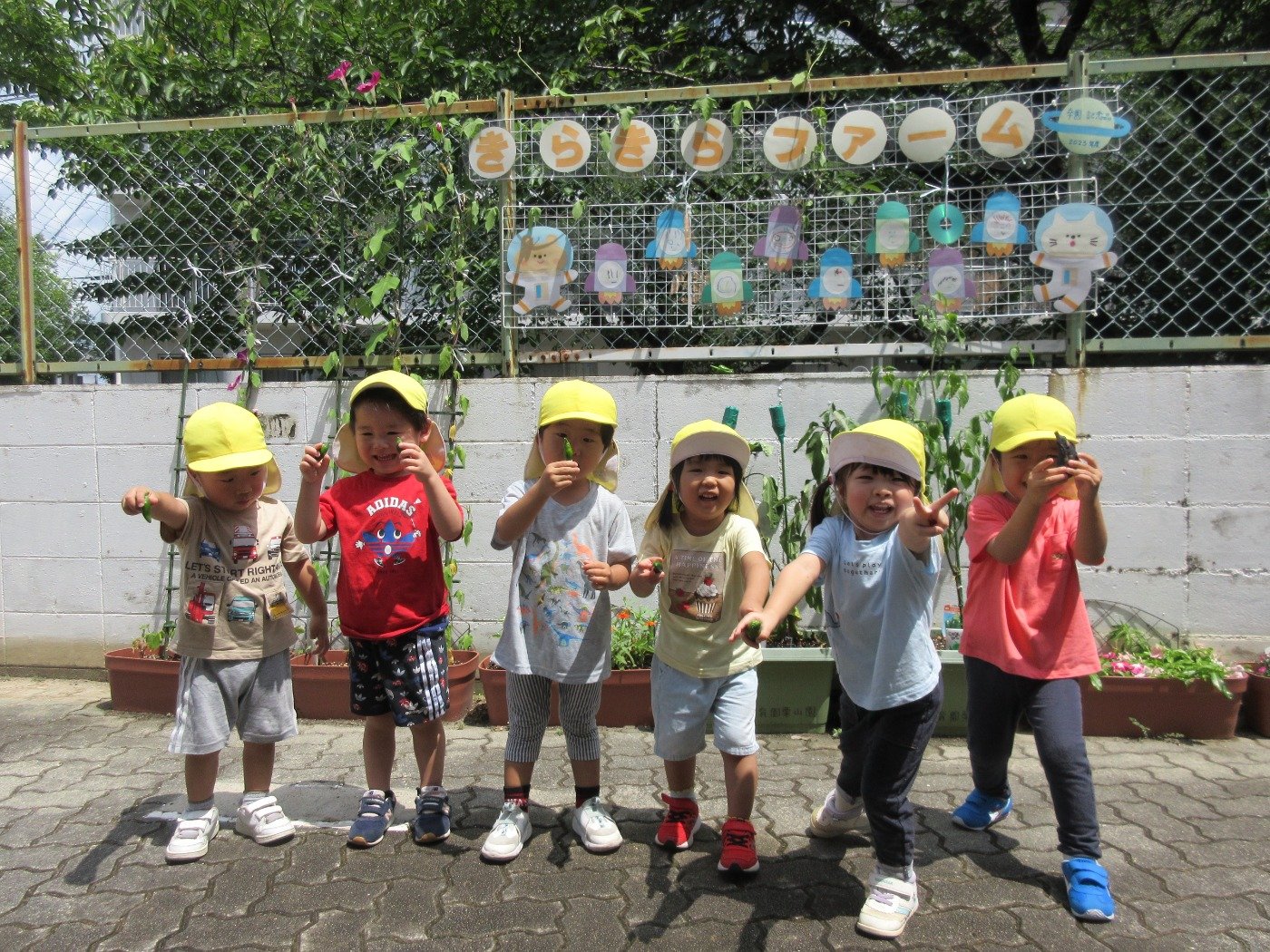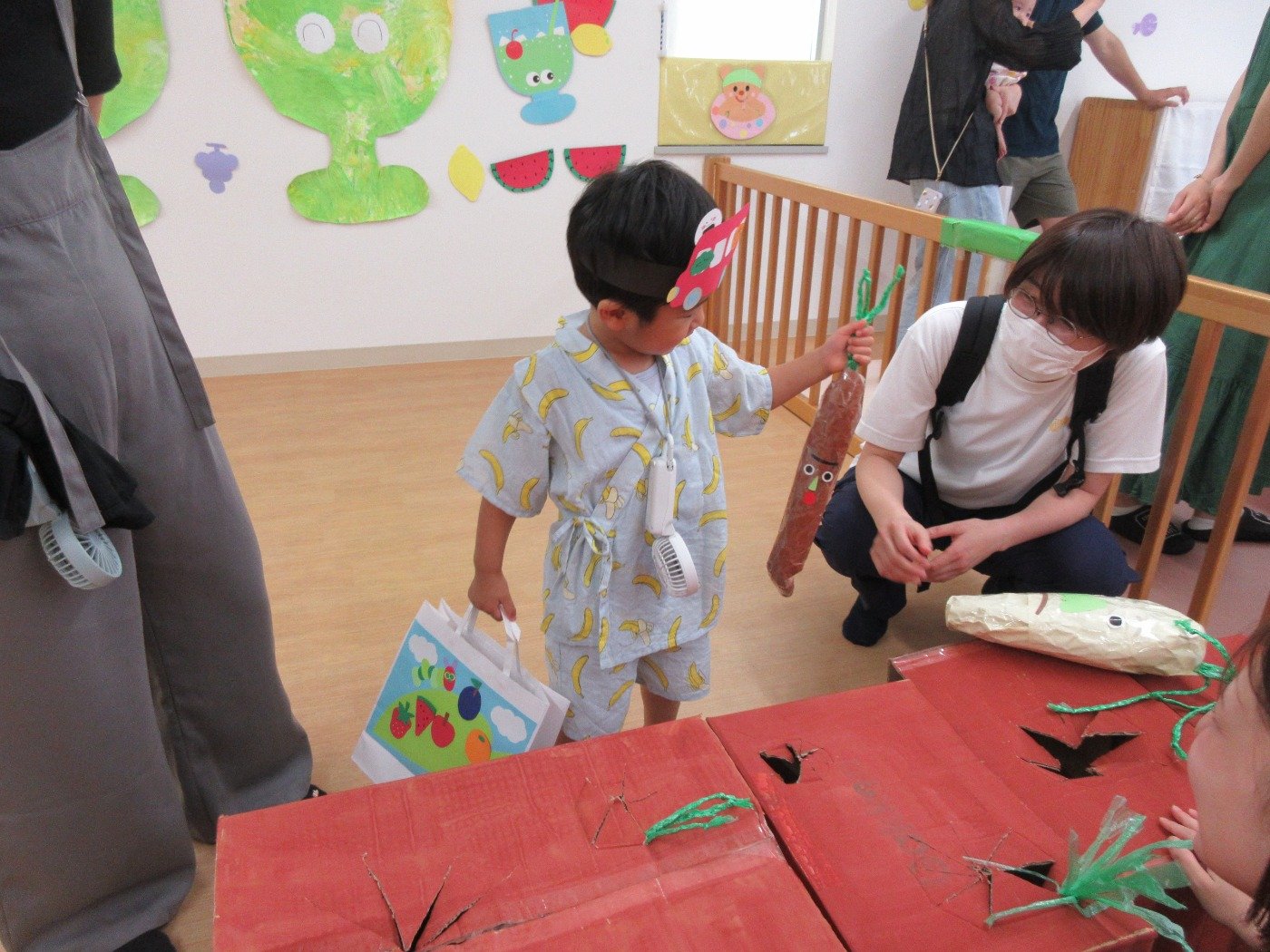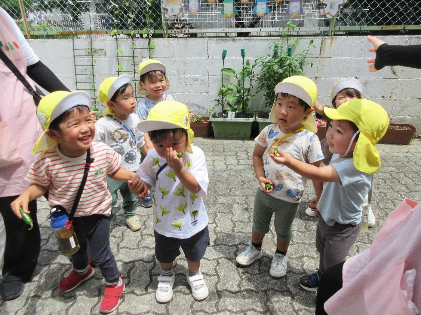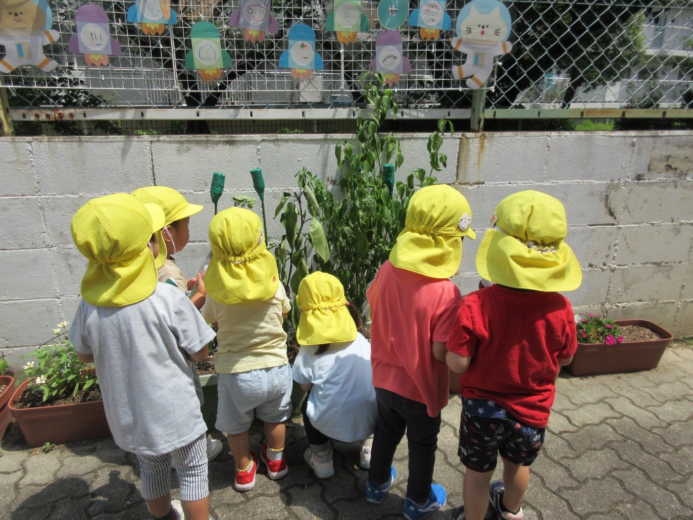 水遊びや野菜の水やりを通して、お友だちとの関わりが