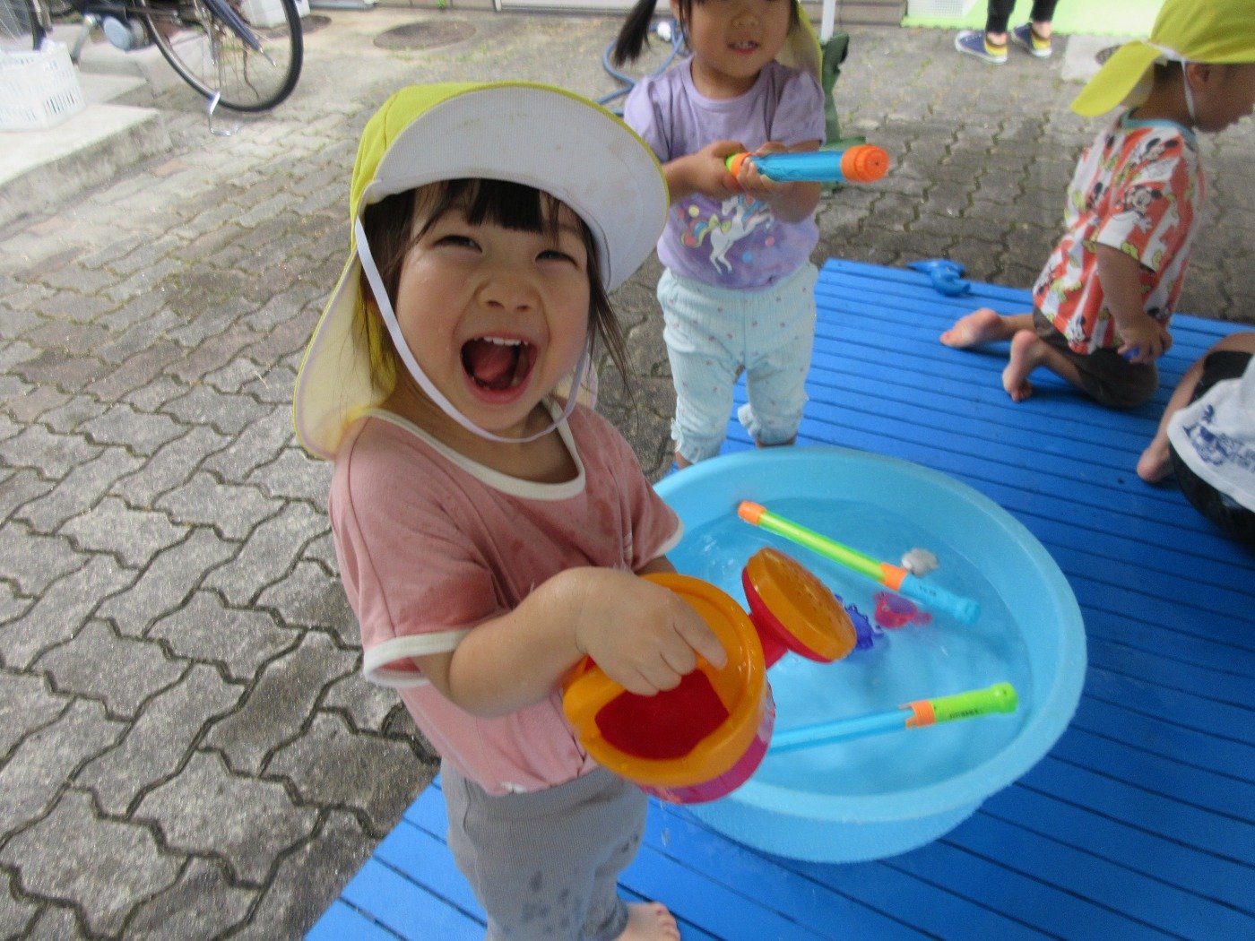 「水遊びする?」と毎日確認するほど楽しみにしているくま組さん。