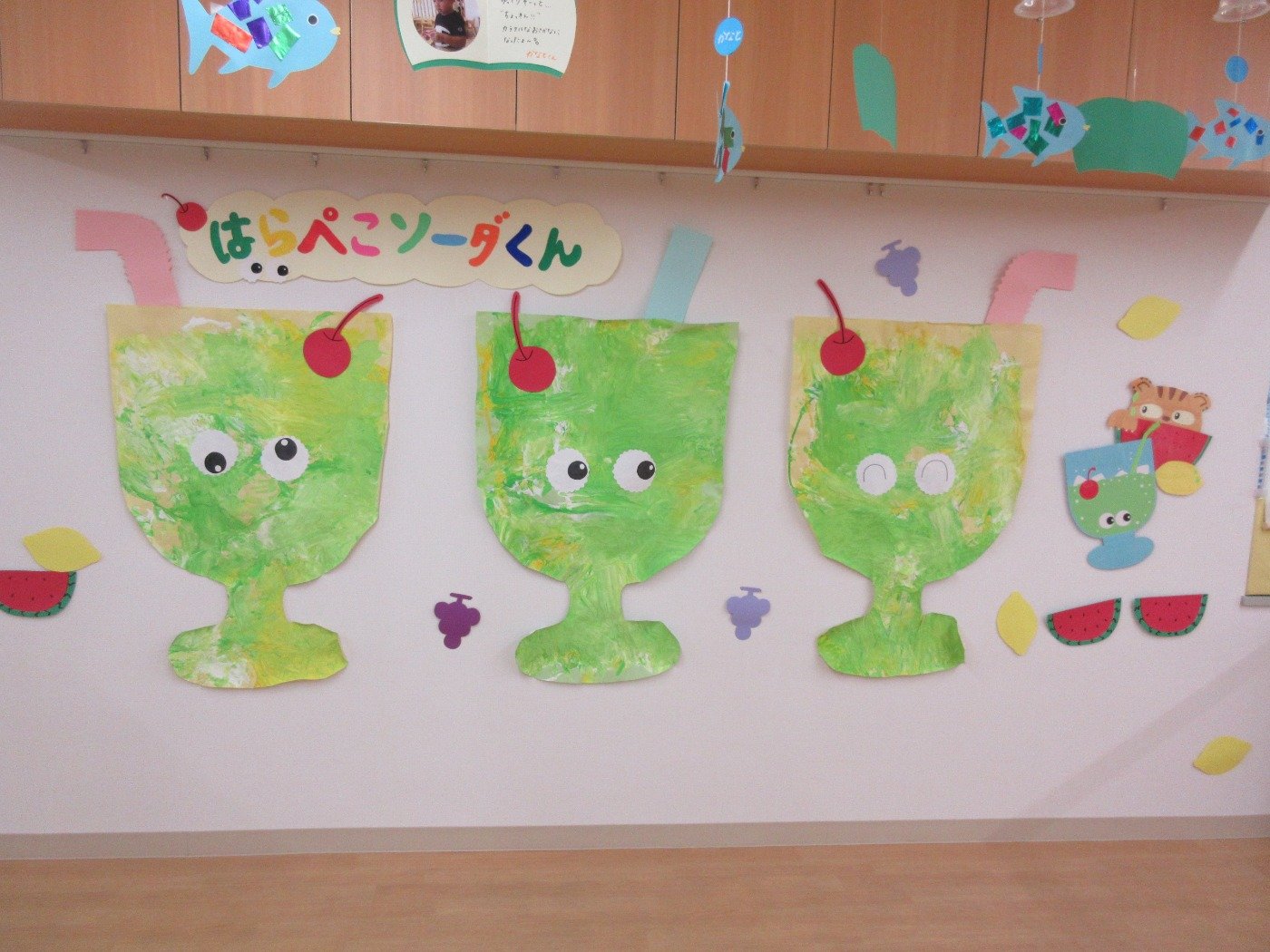 ぬたくりをして遊んだ大きな紙は、「はらぺこソーダくん」に変身しました♪