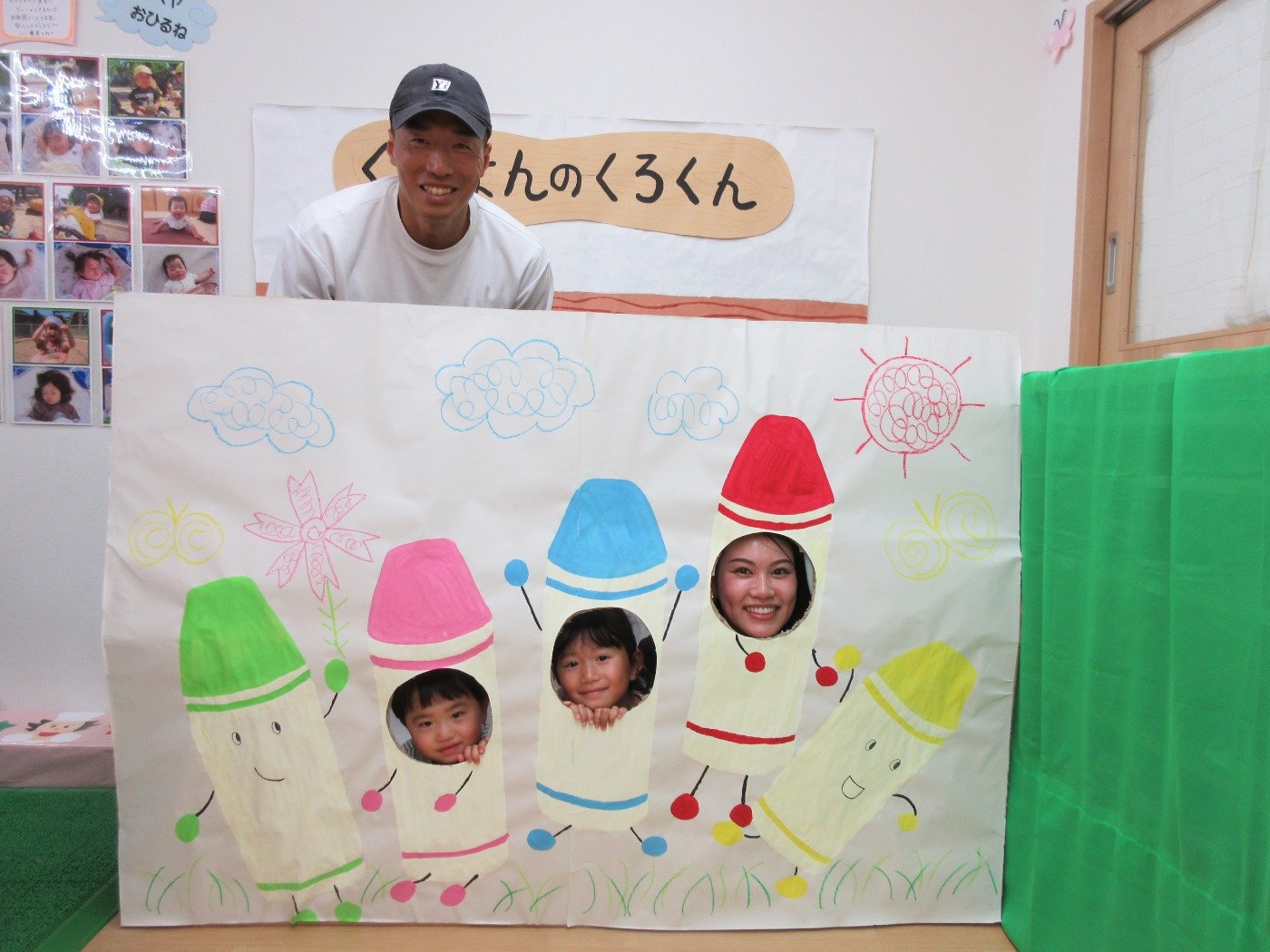 顔出しパネルの丸い穴からお顔をひょっこり♪