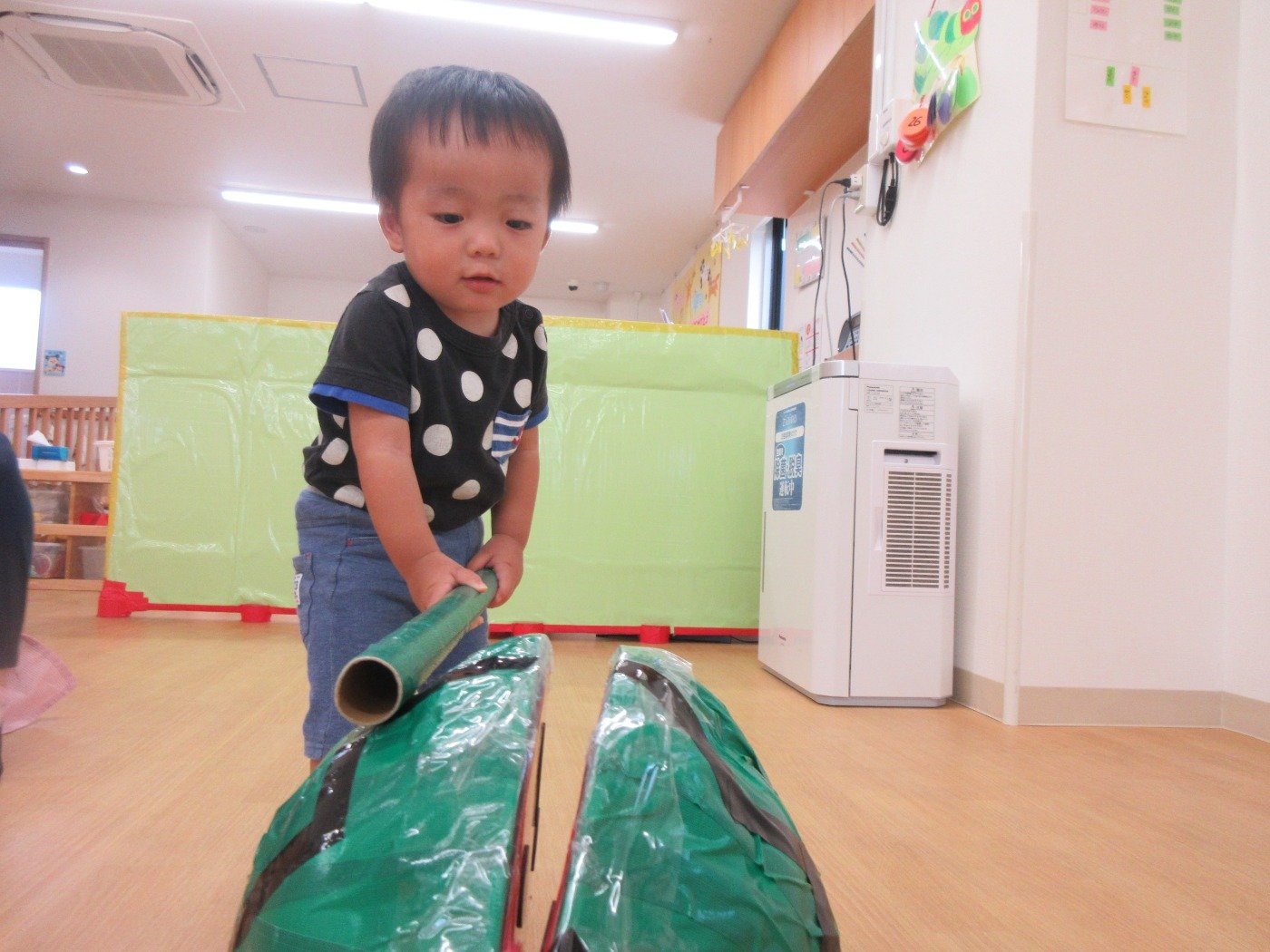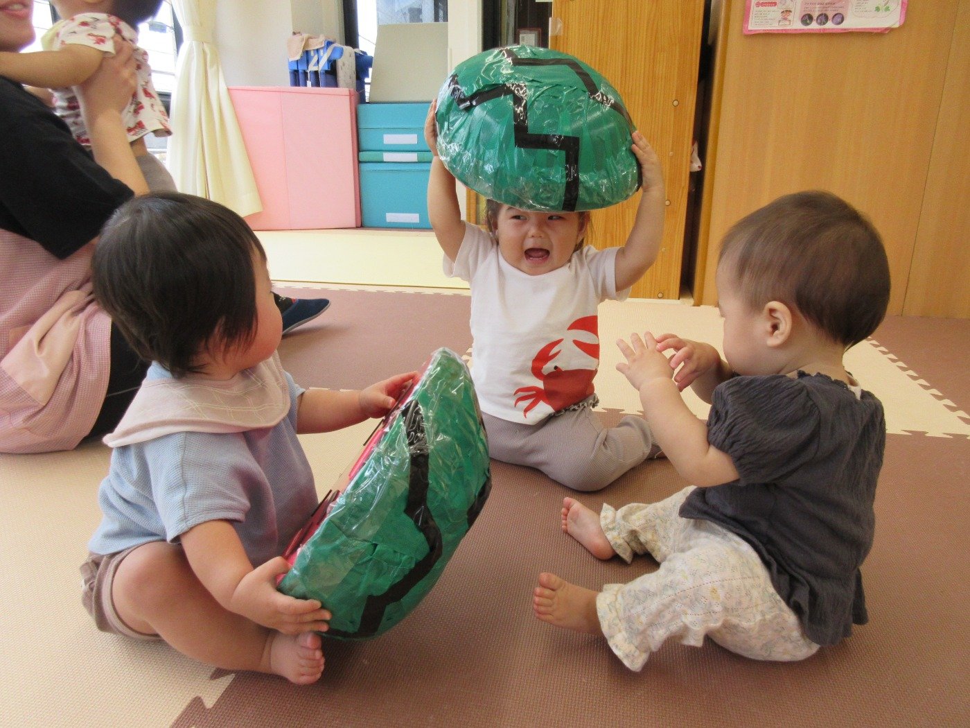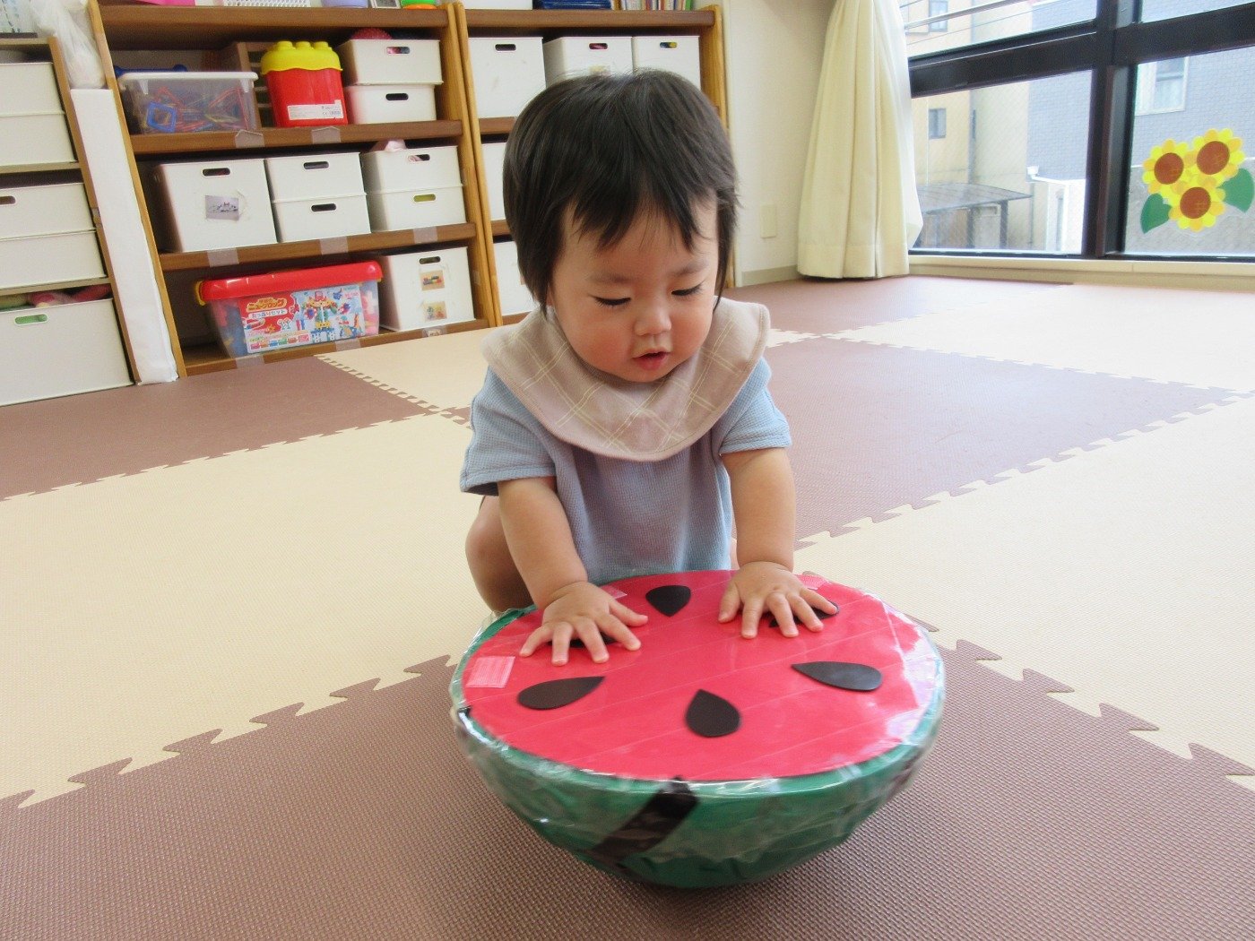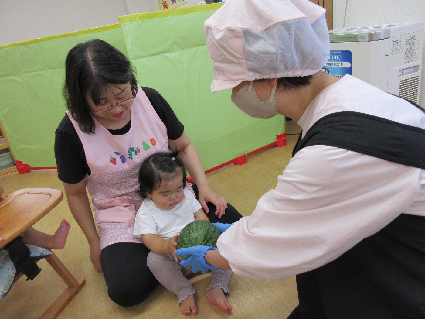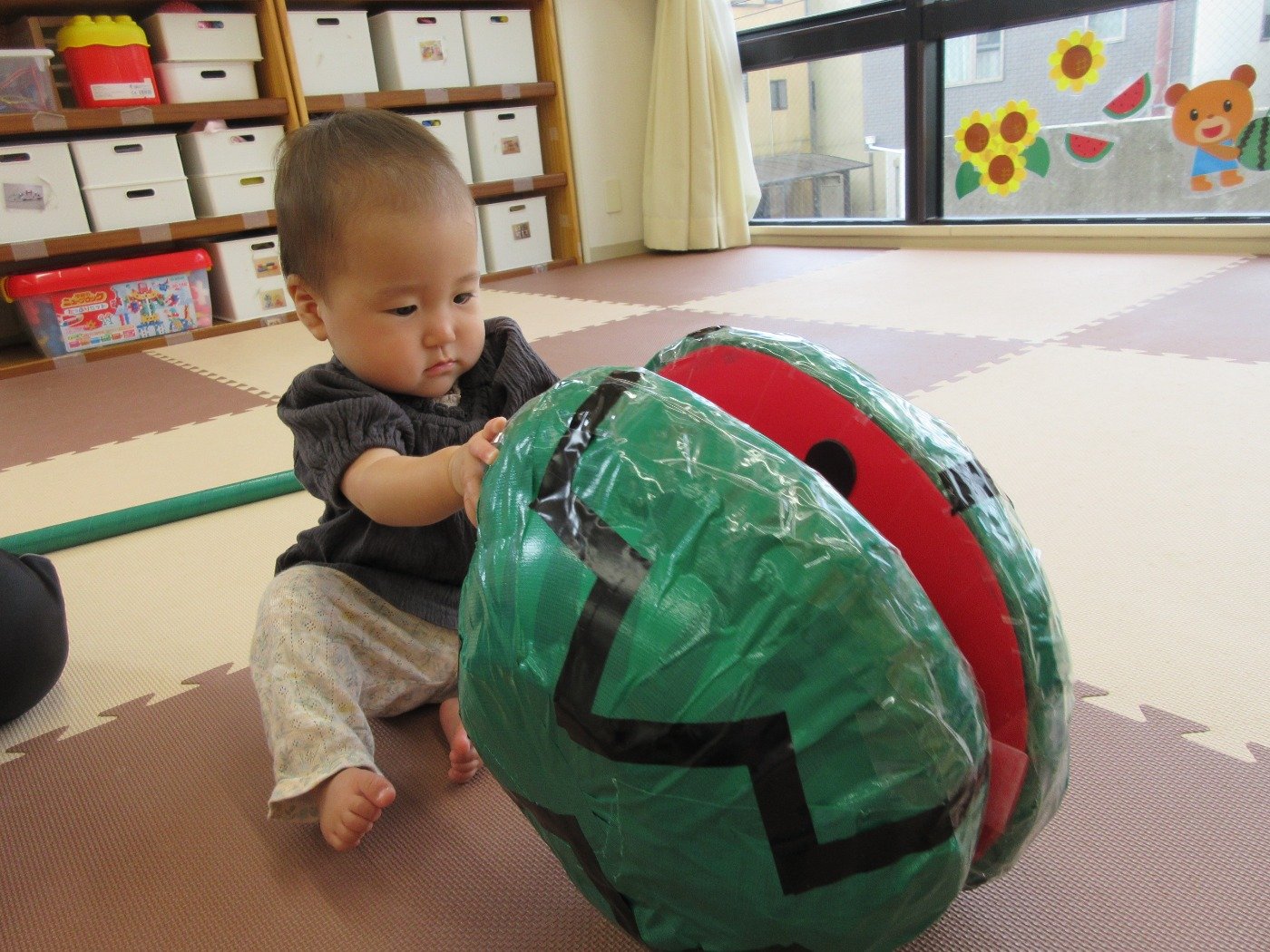 ひよこ組さんは、目をまん丸くして触ってみたり、