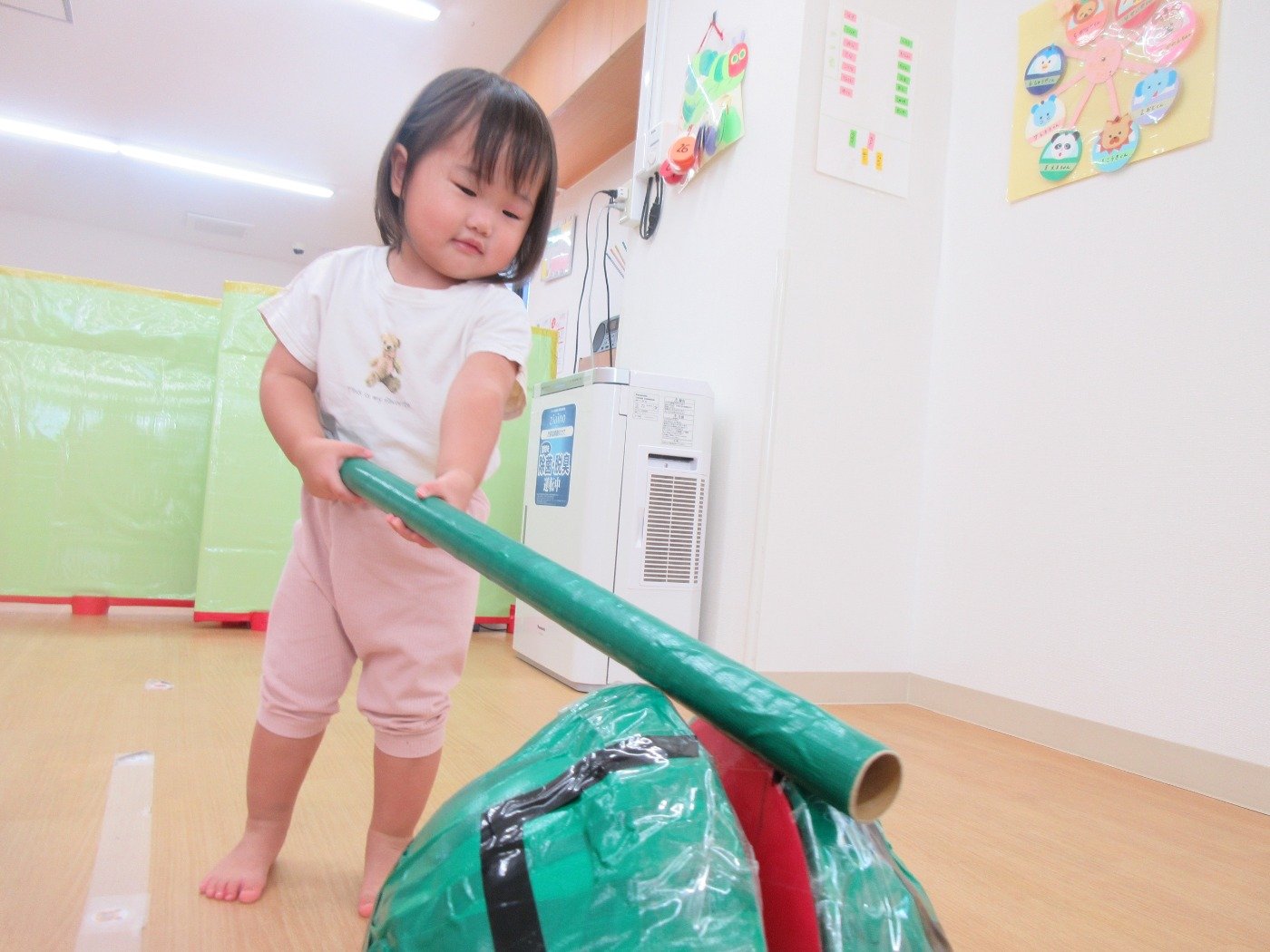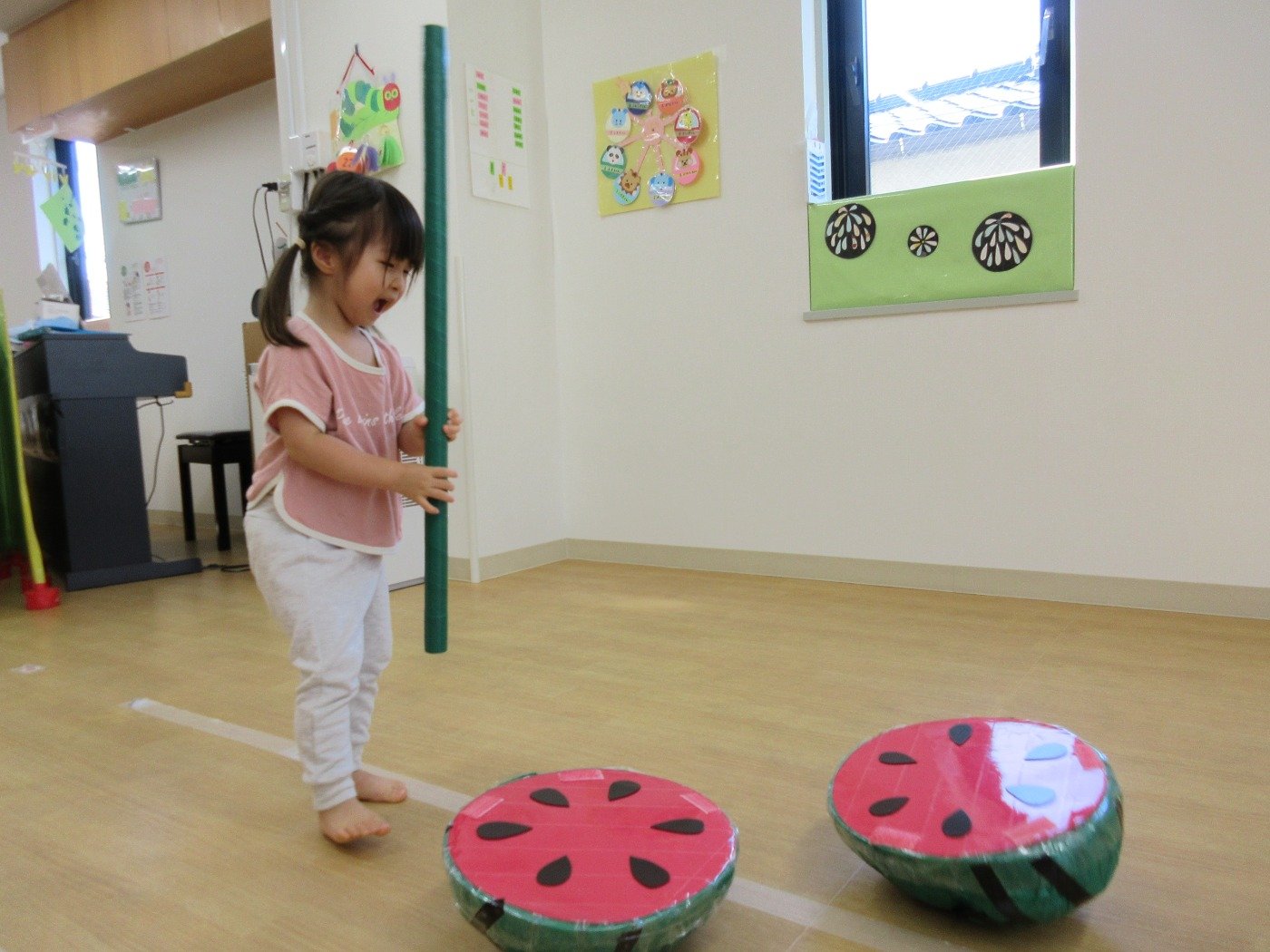 うさぎ組さんは、棒を持って「エイヤー!」