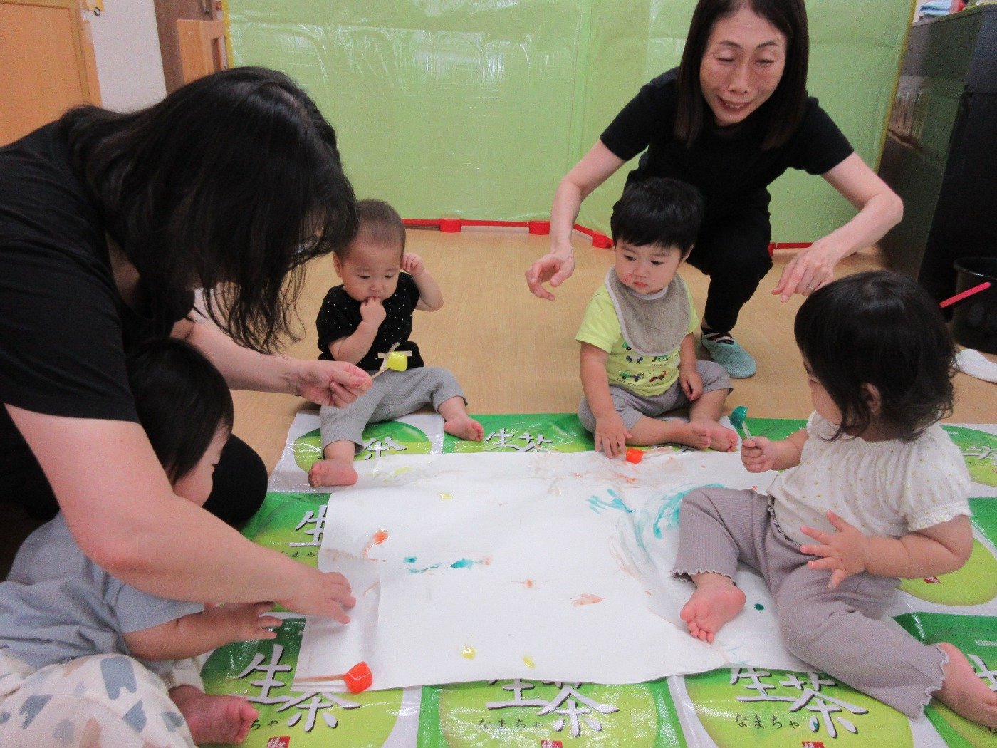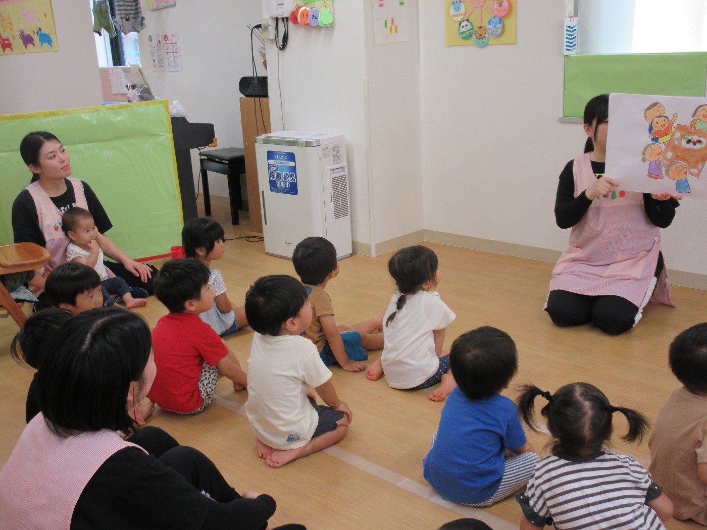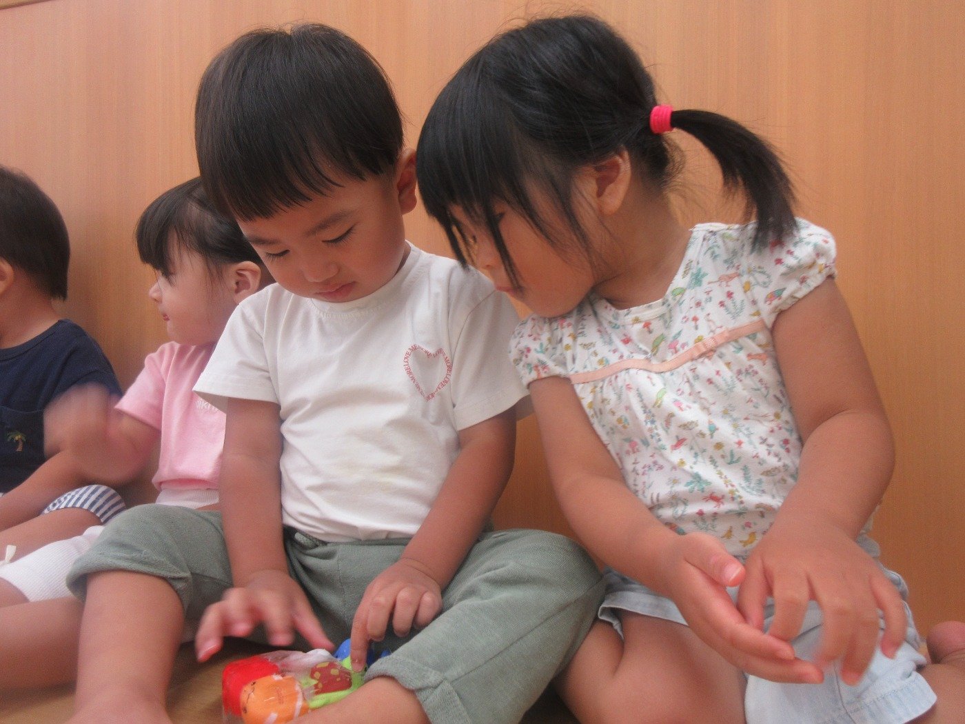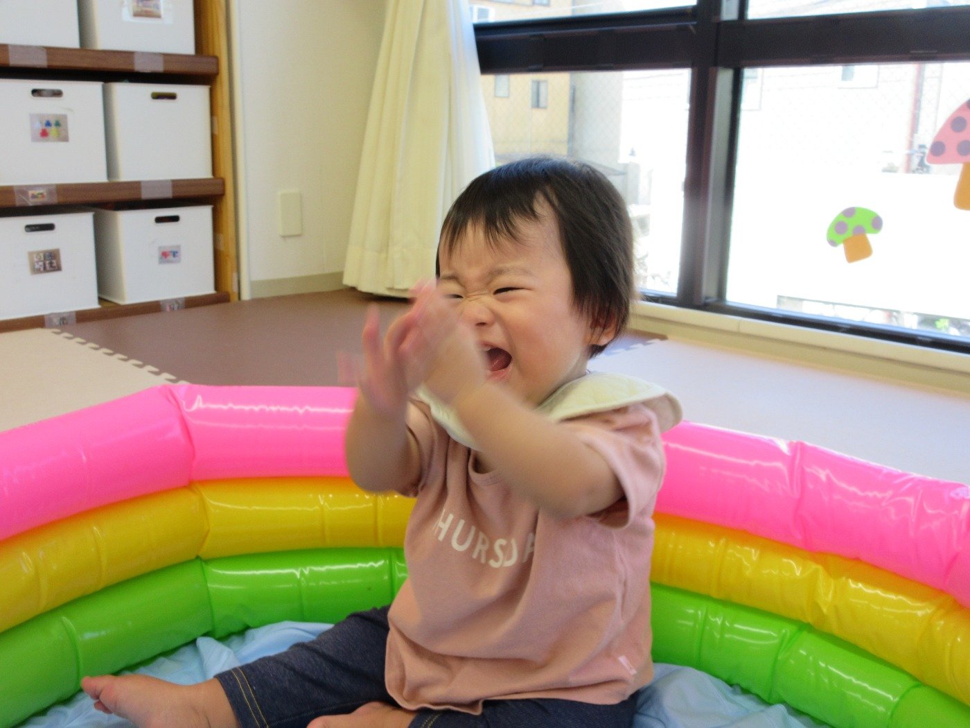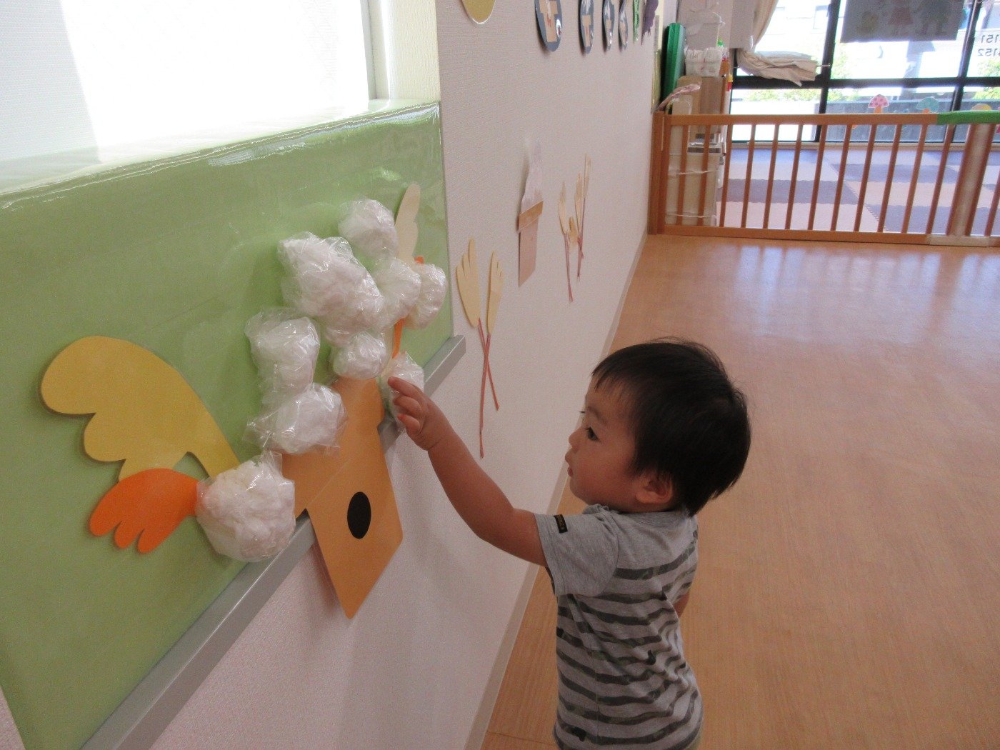 お部屋で「おせんたく」のふれあい遊びを楽しんでいるくま組さん。
