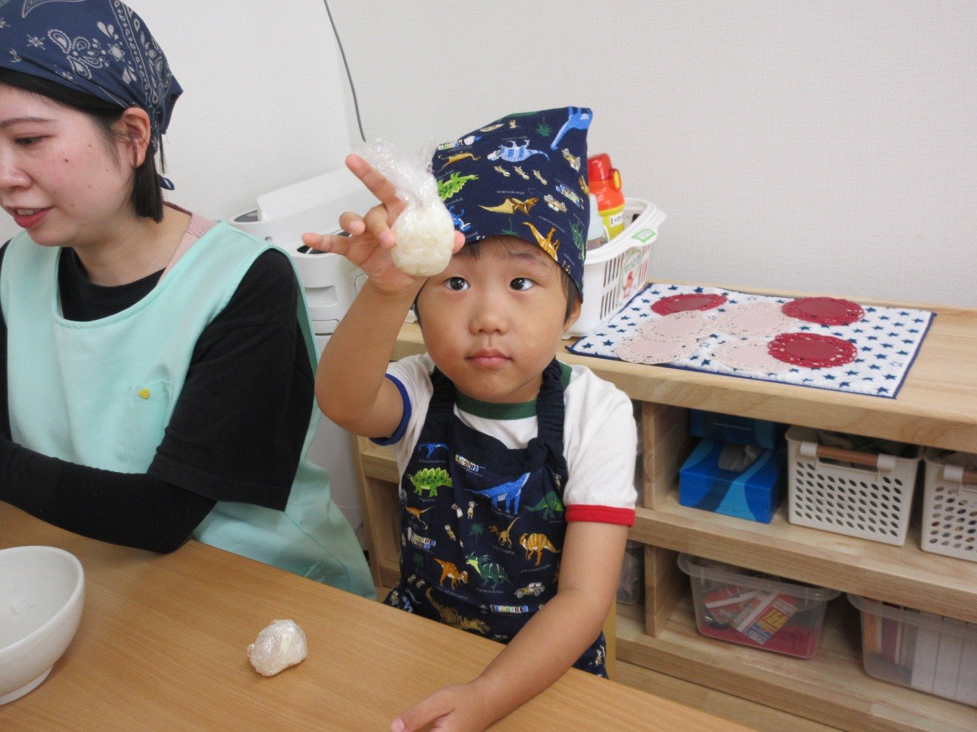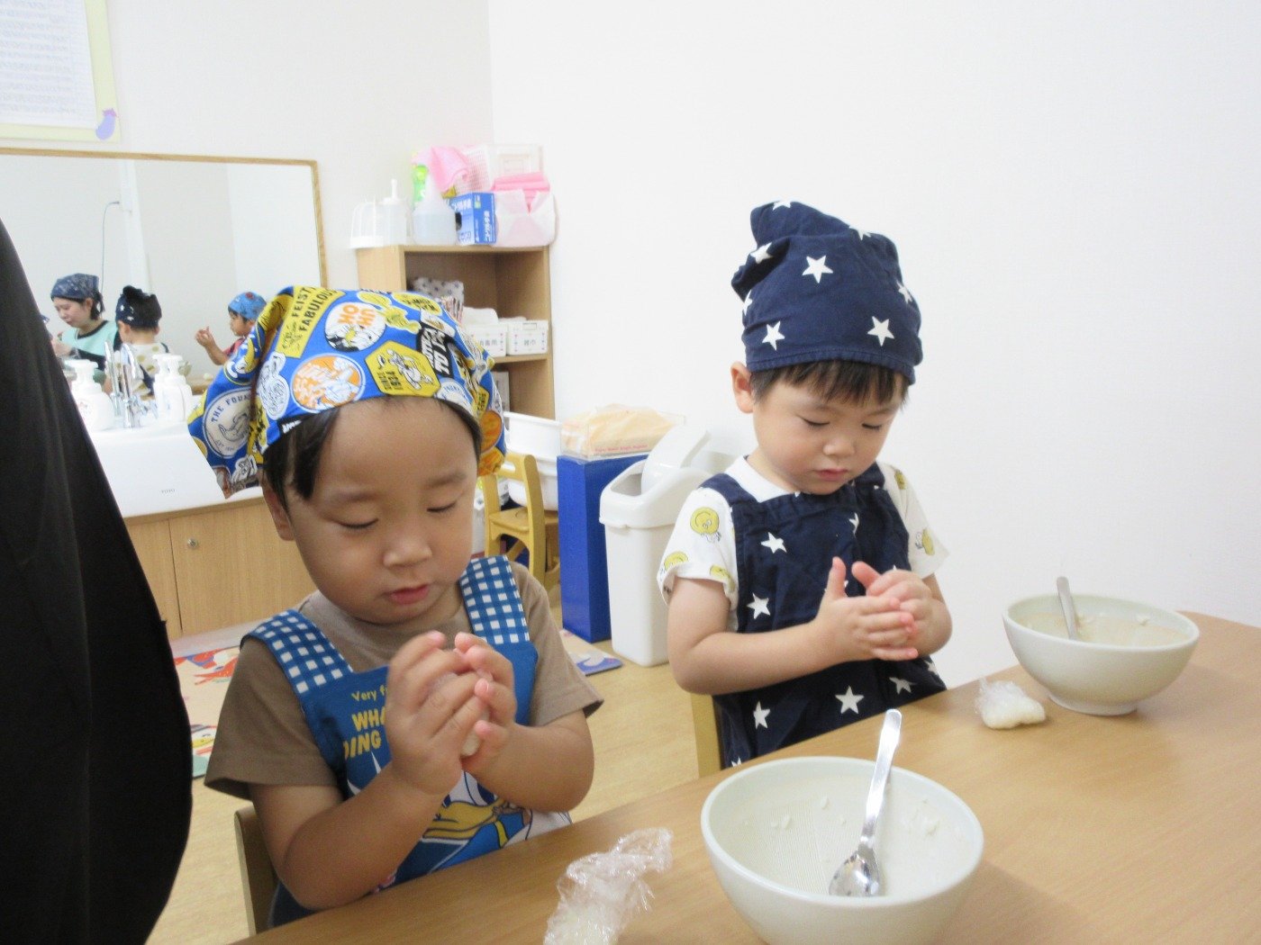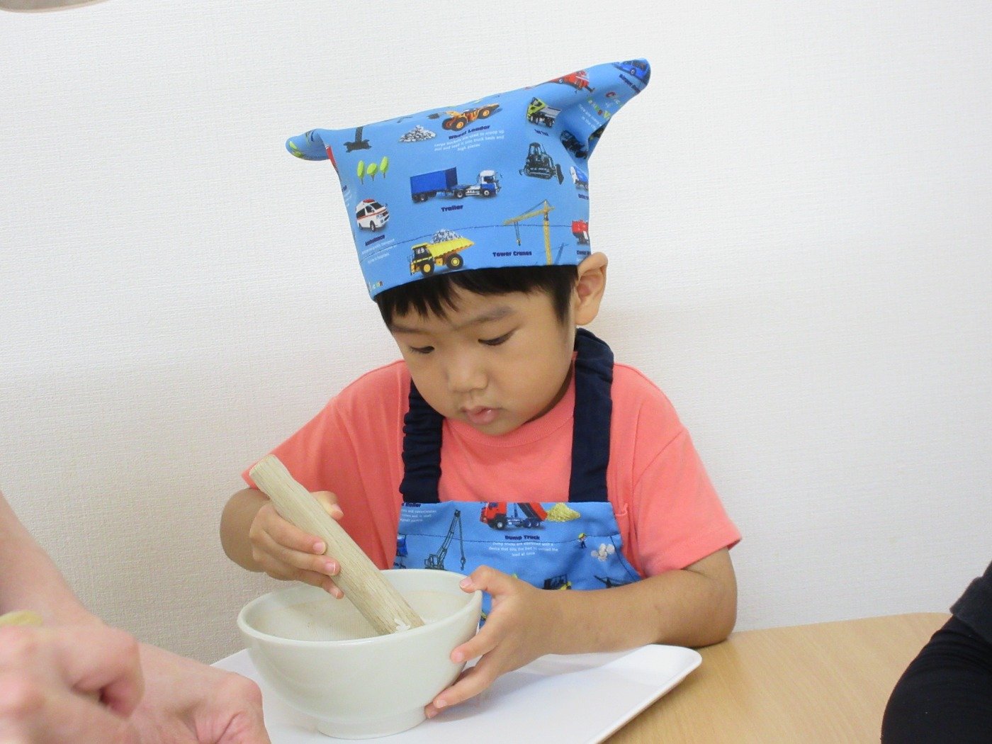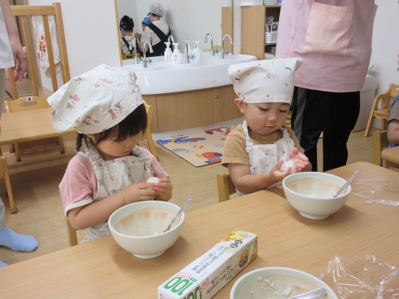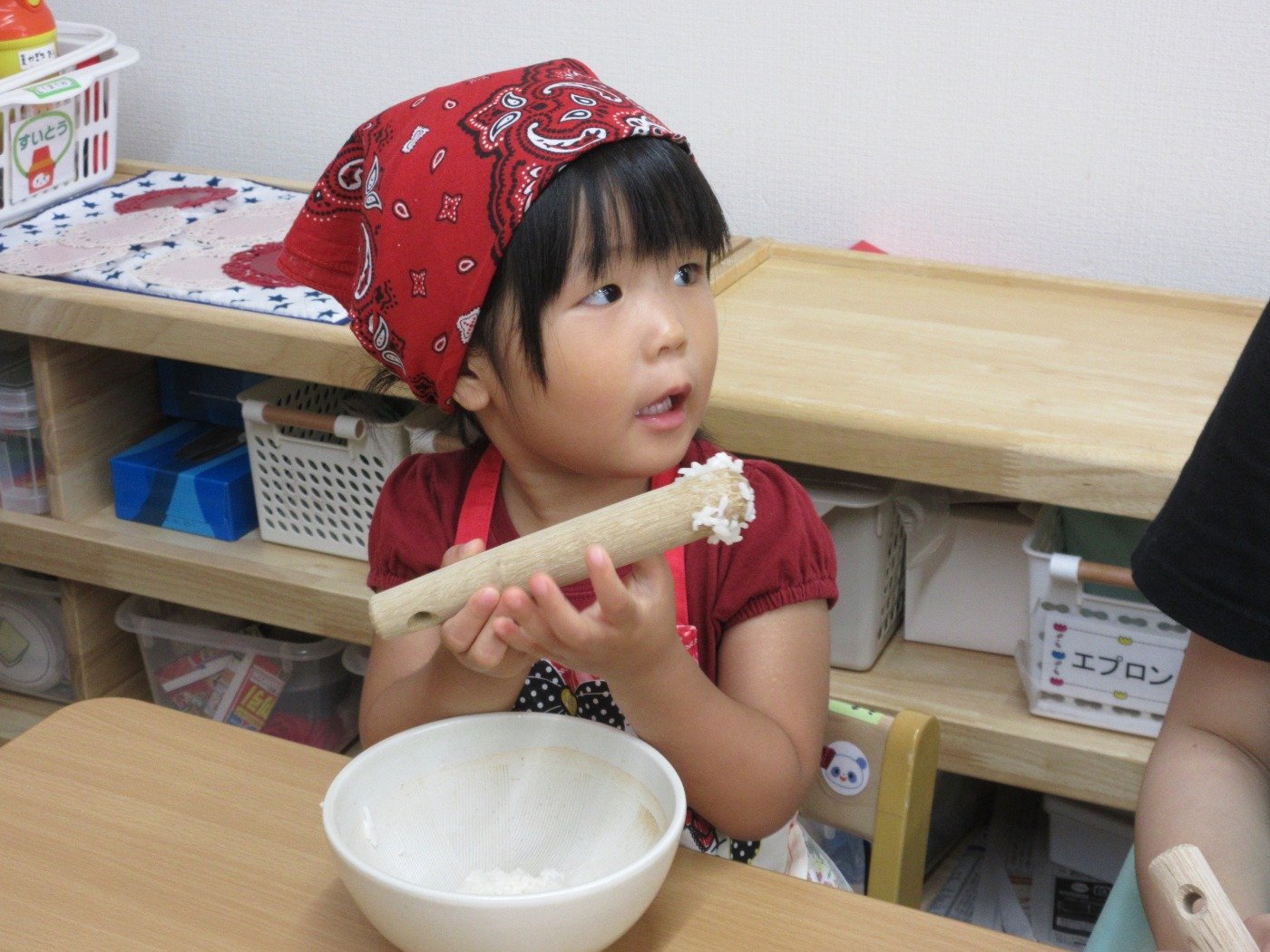 お月見会の次の日の、くま組さんクッキングは「きな粉団子」