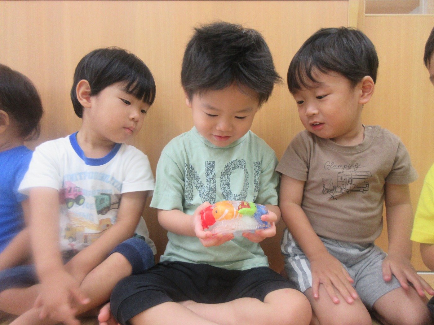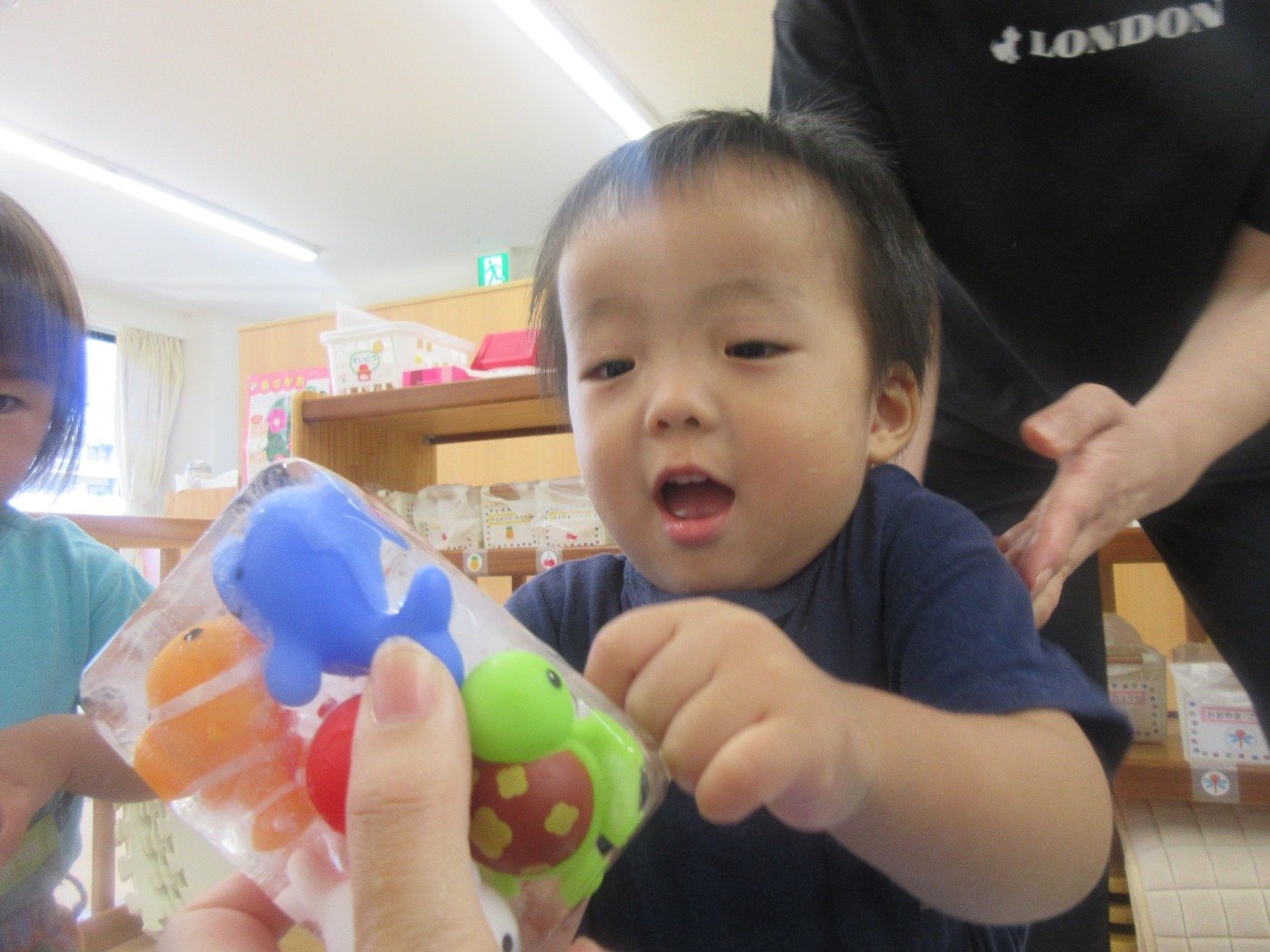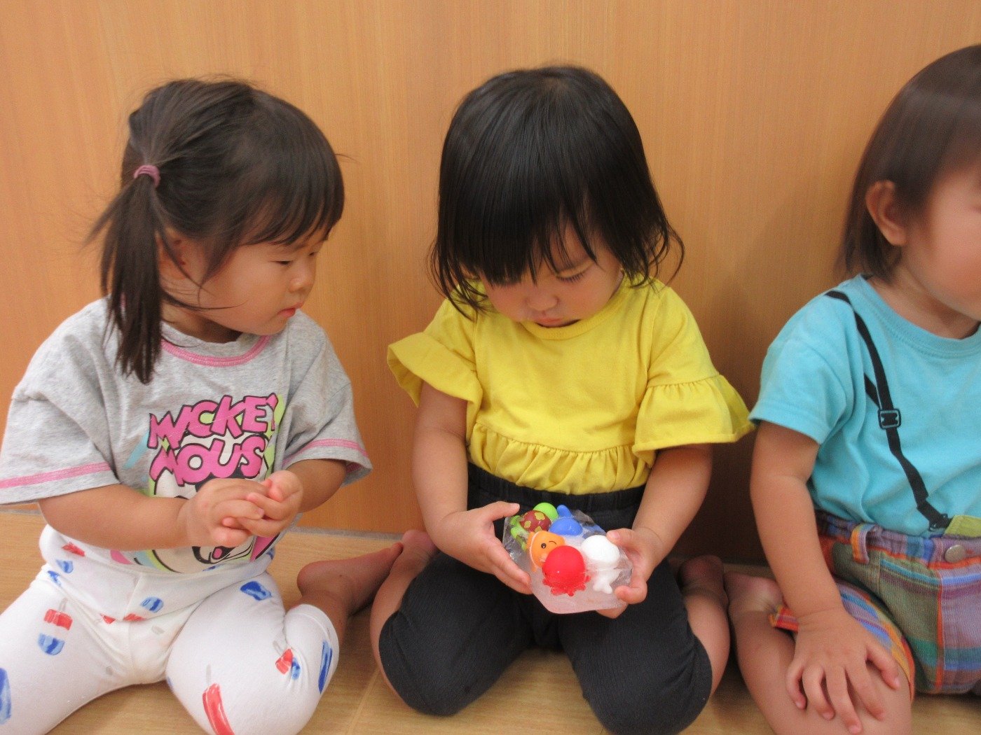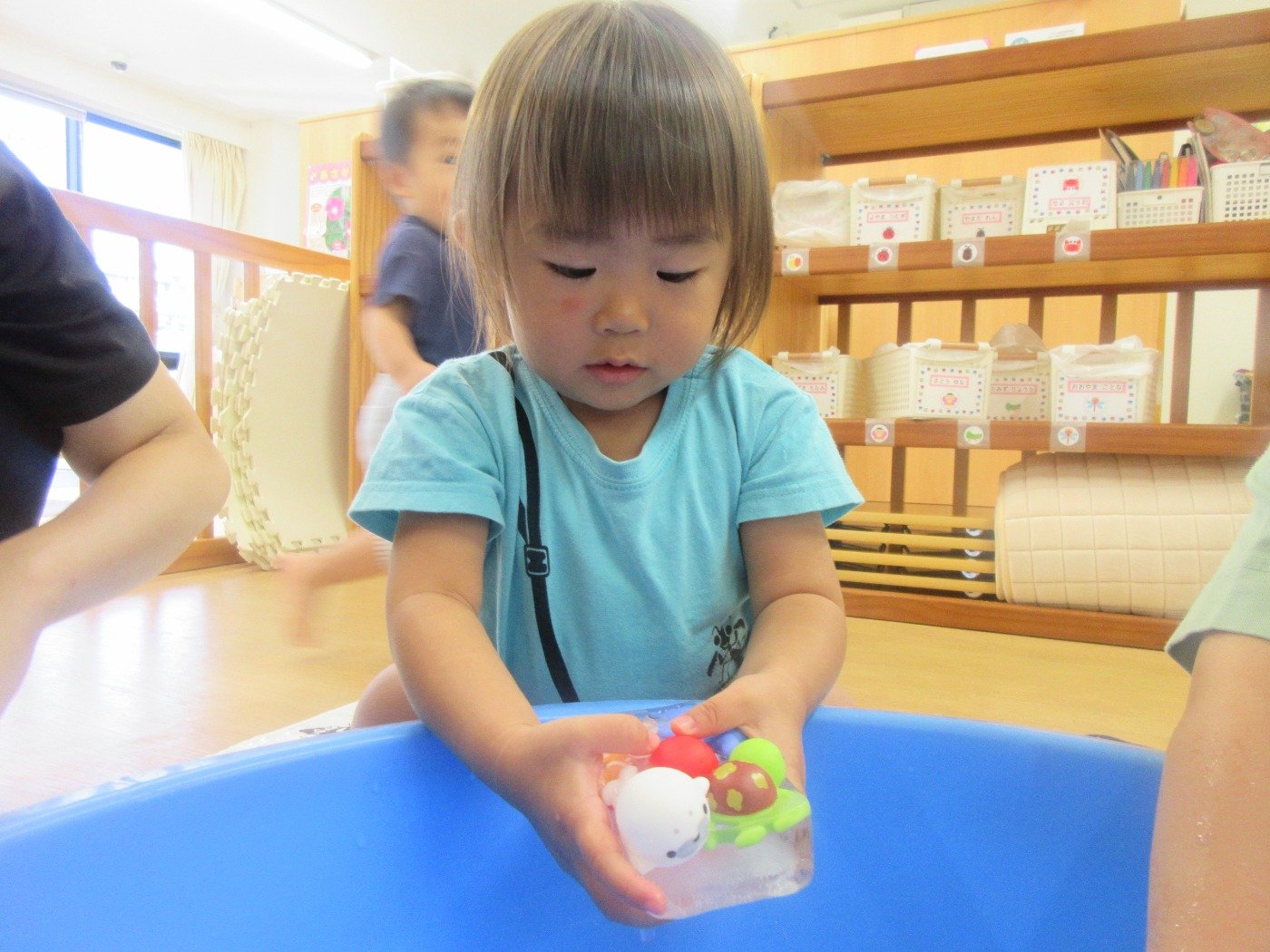 「出てこい出てこい!」ギュッギュッと氷を触って