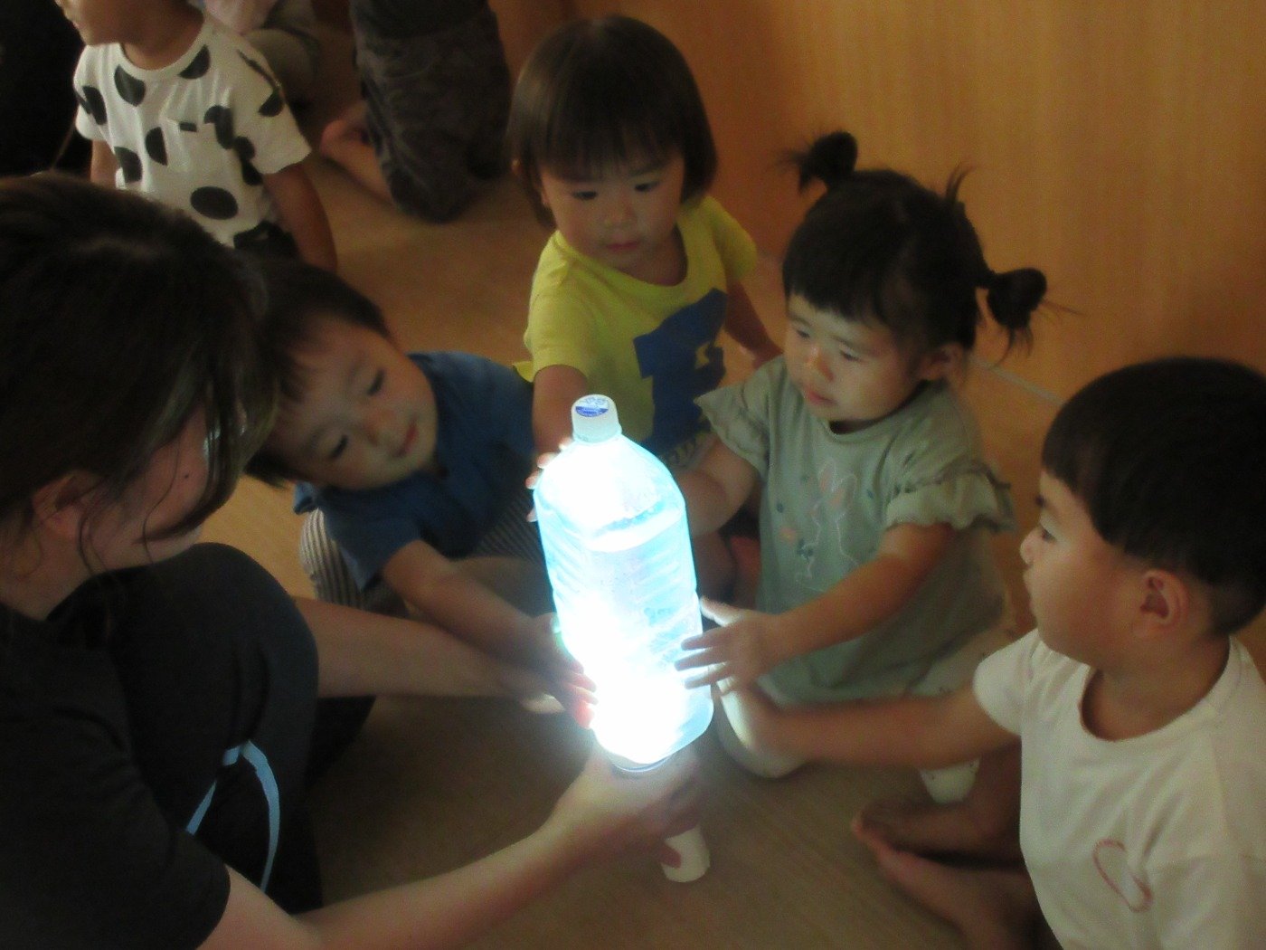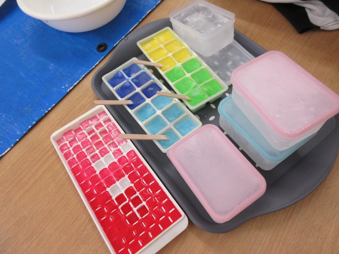 ペットボトルの中に色とりどりのセロファンを入れて凍らせました。