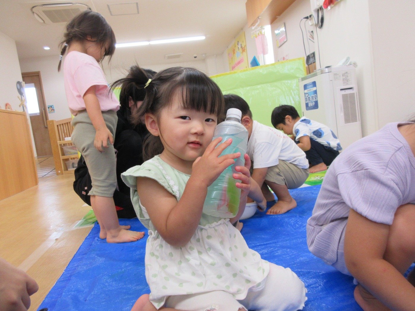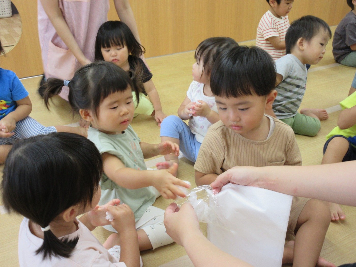 しぼるのが少し難しそうでしたが、一生懸命ギュッーとして上手に