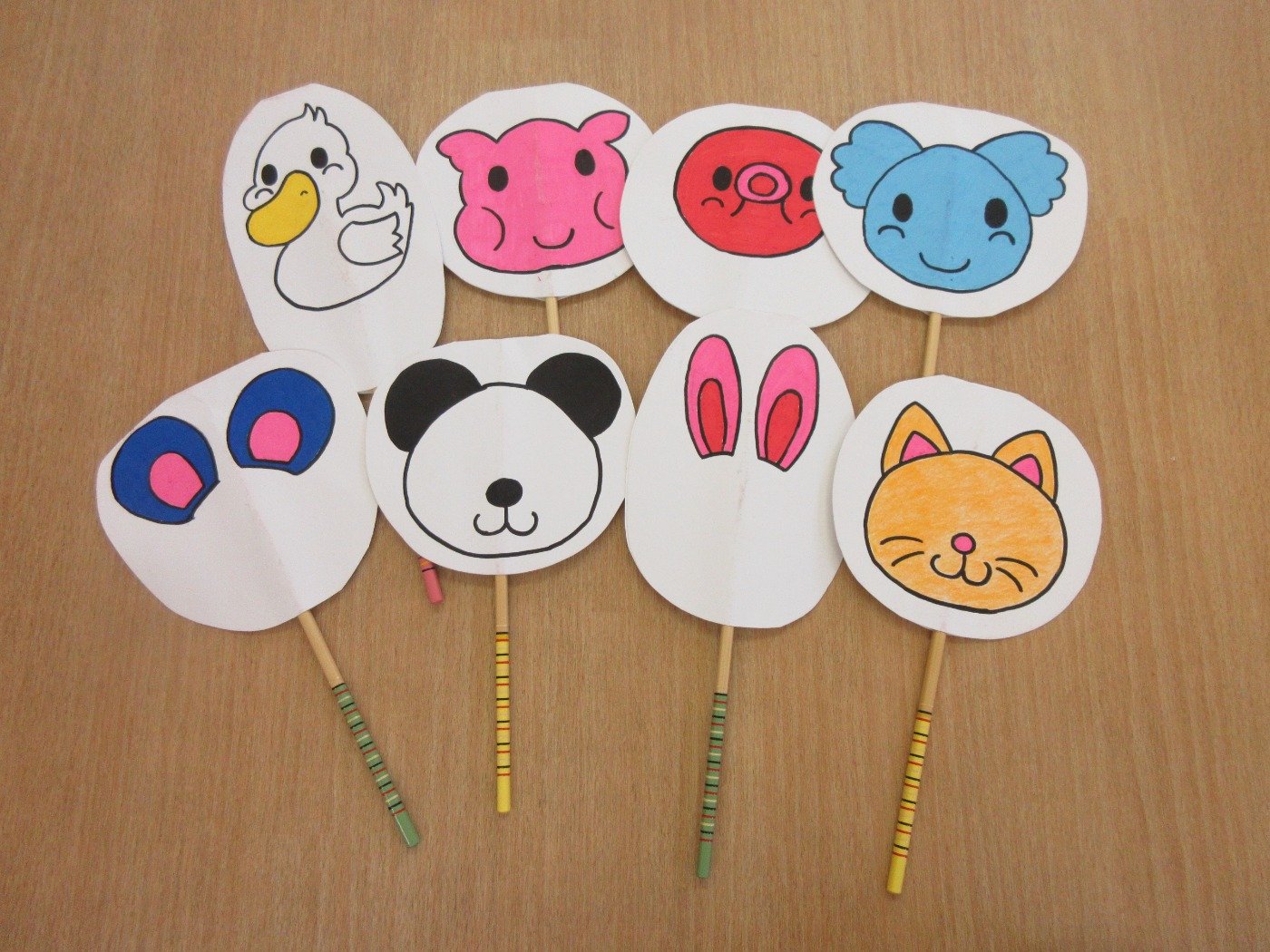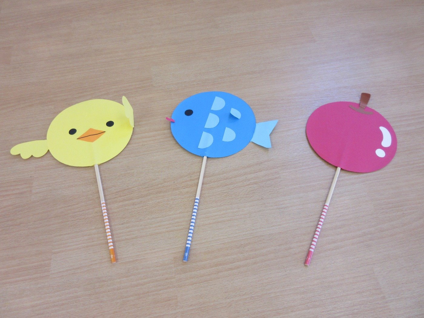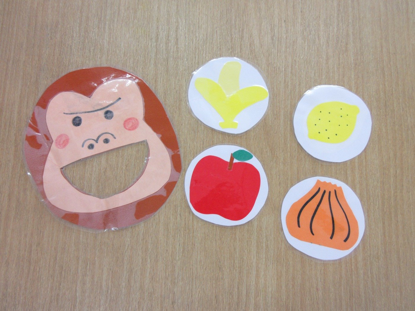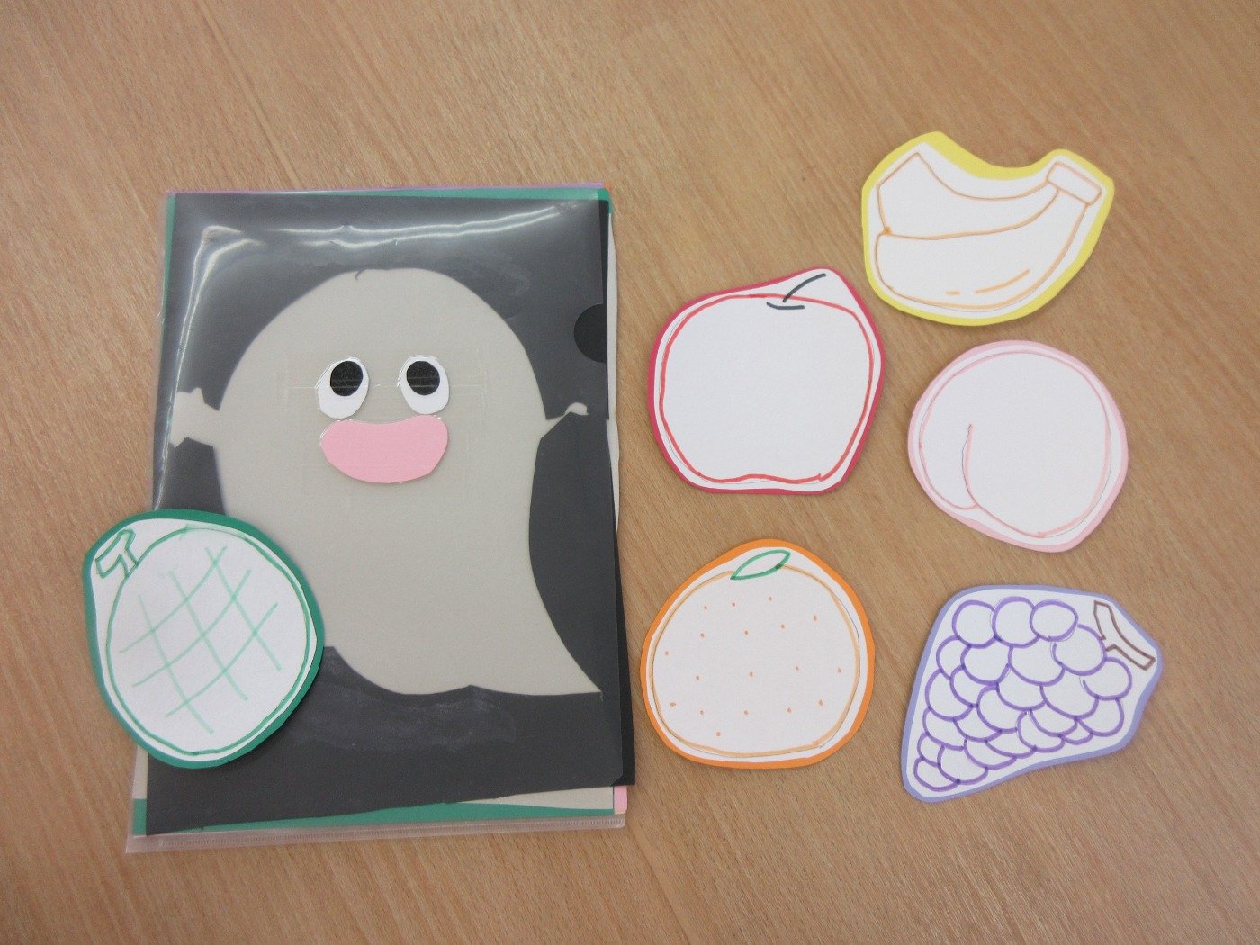 手作りのペープサートやシアターを楽しみながら、色や形、物の名前など自然に見つけていきます。