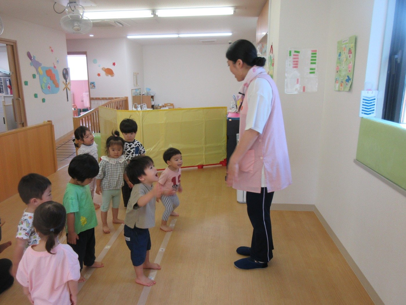「お水遊びをするよー。」など、今日の予定を伝えて、ワクワクした1日がスタートします!