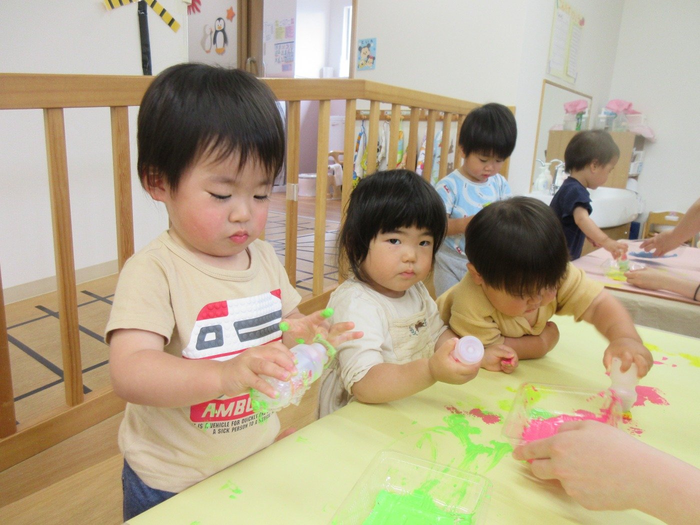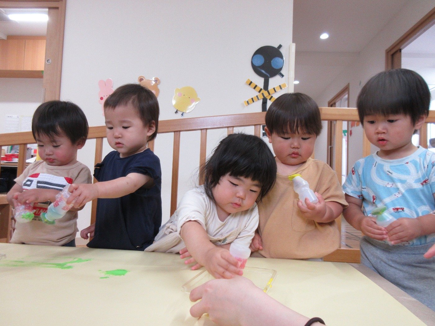 お水が流れる事、色が茶色く変わること、匂いや音…たくさんの刺激を受けて