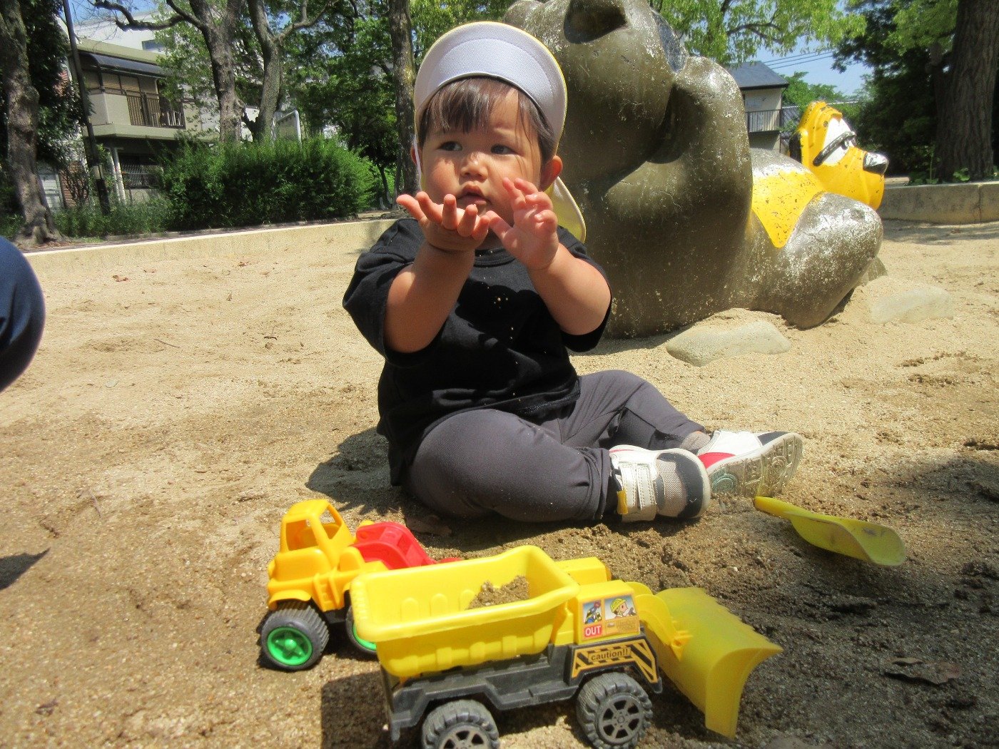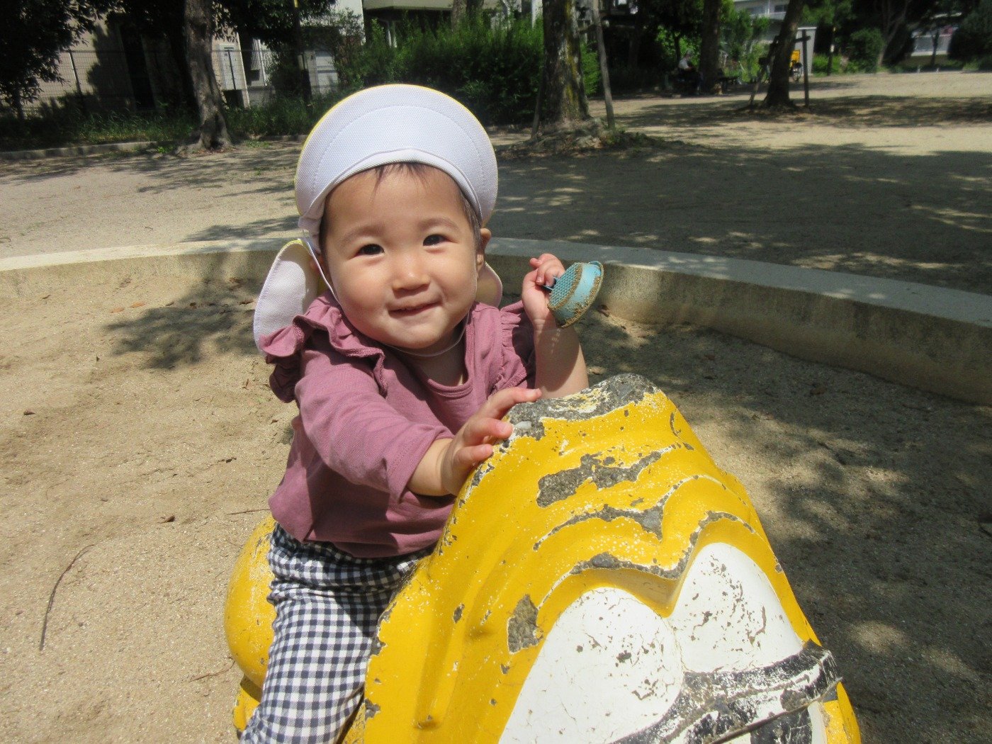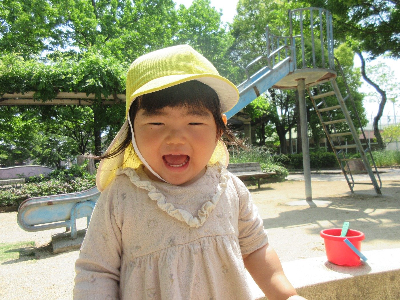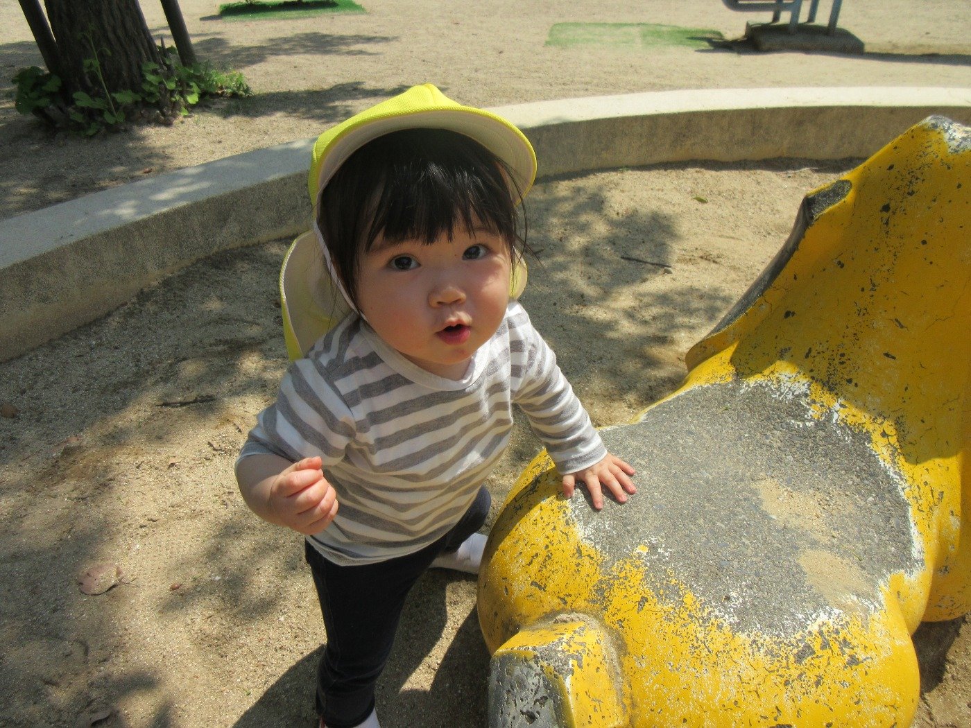 お外が大好きで、お散歩中も飛行機の音がすると、見上げて「あー!」と言いながら