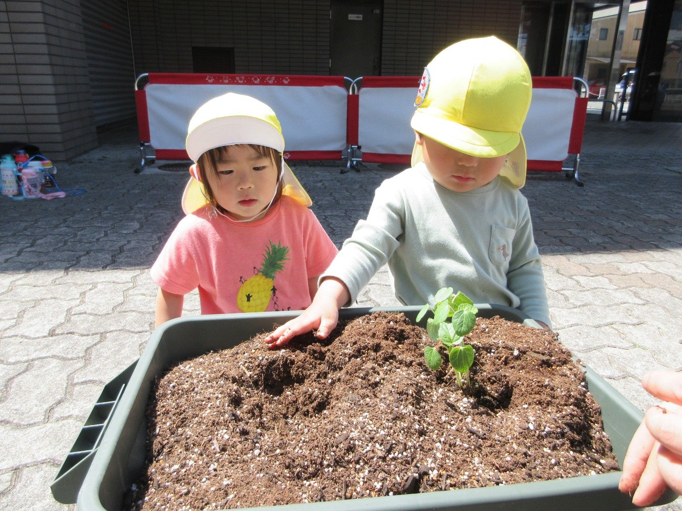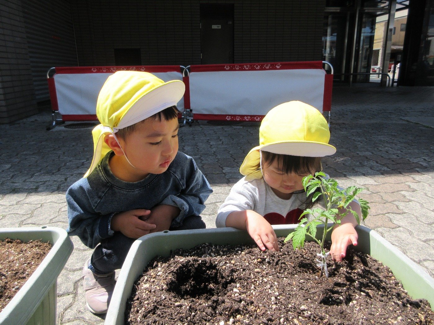 毎日「大きくなあれ!」「おいしくなあれ!」と言いながら、はりきってお水をあげてくれています。