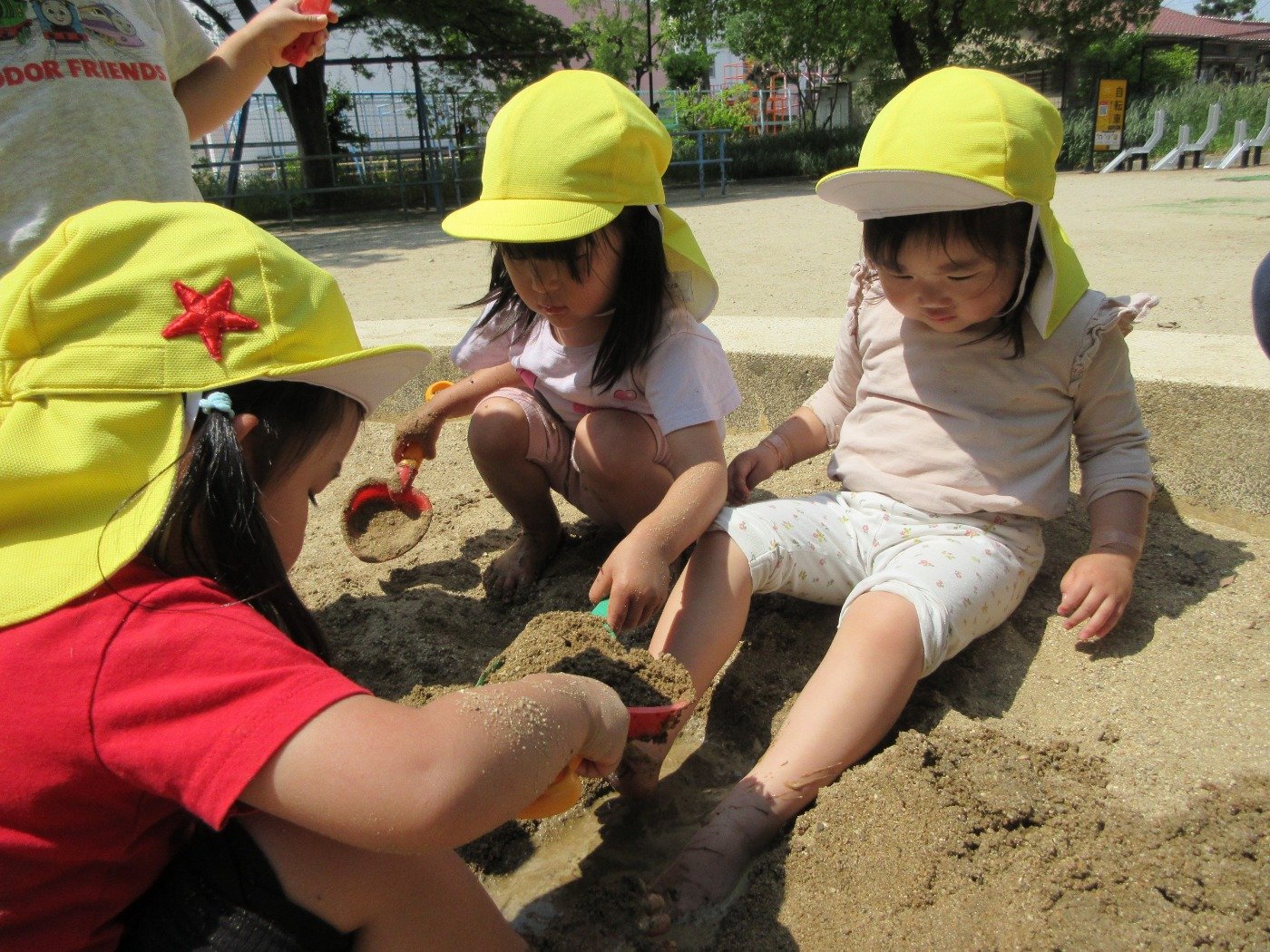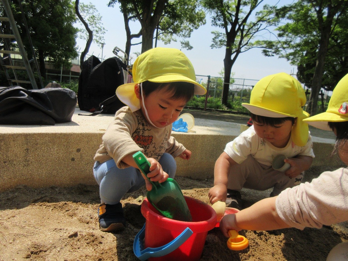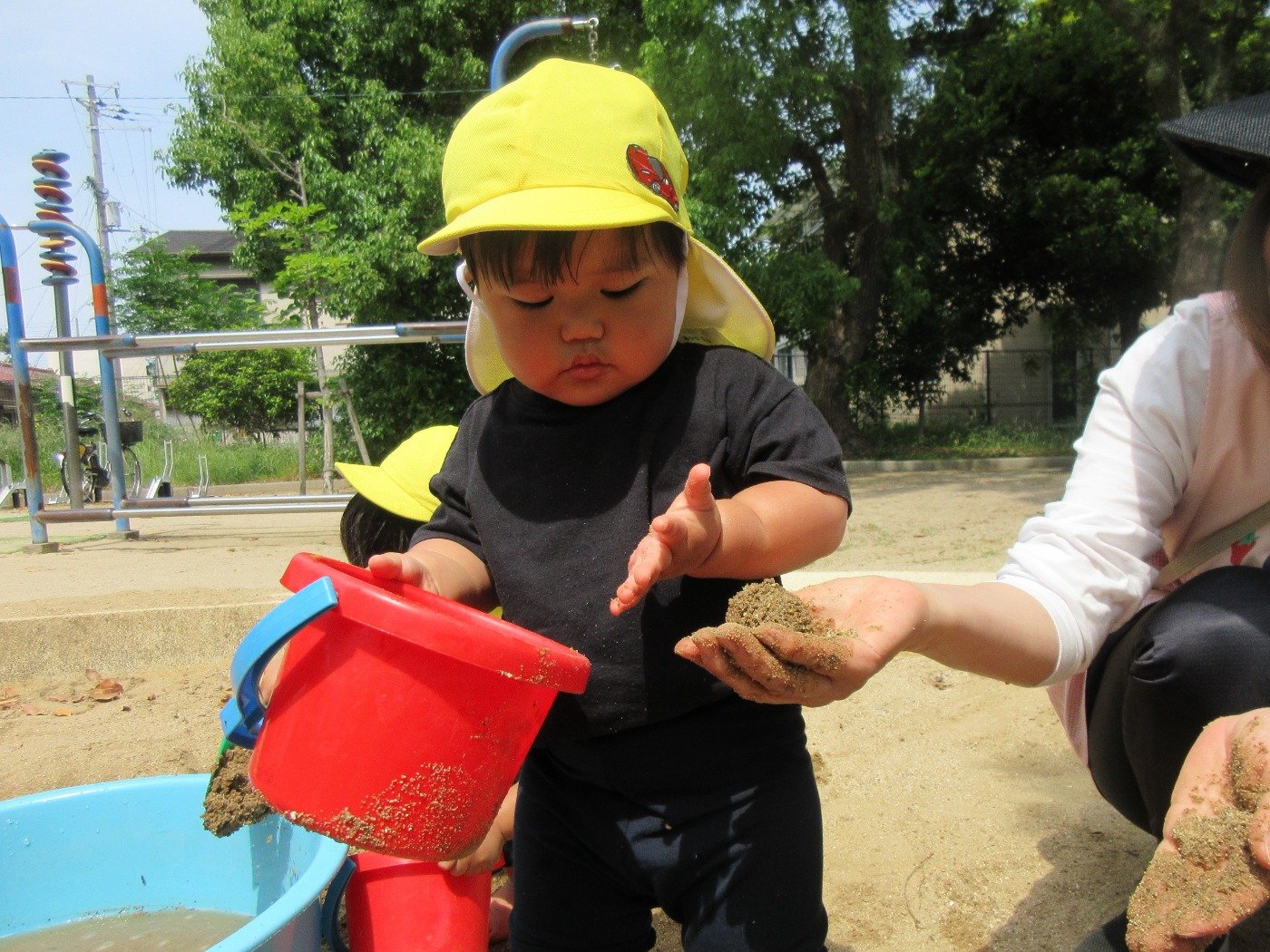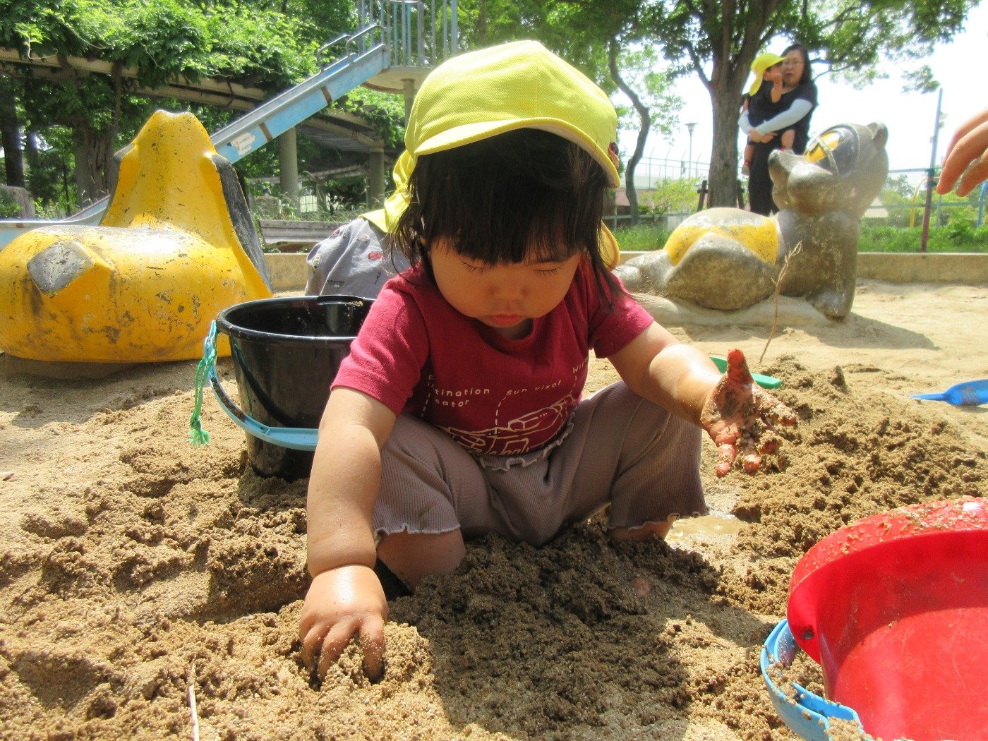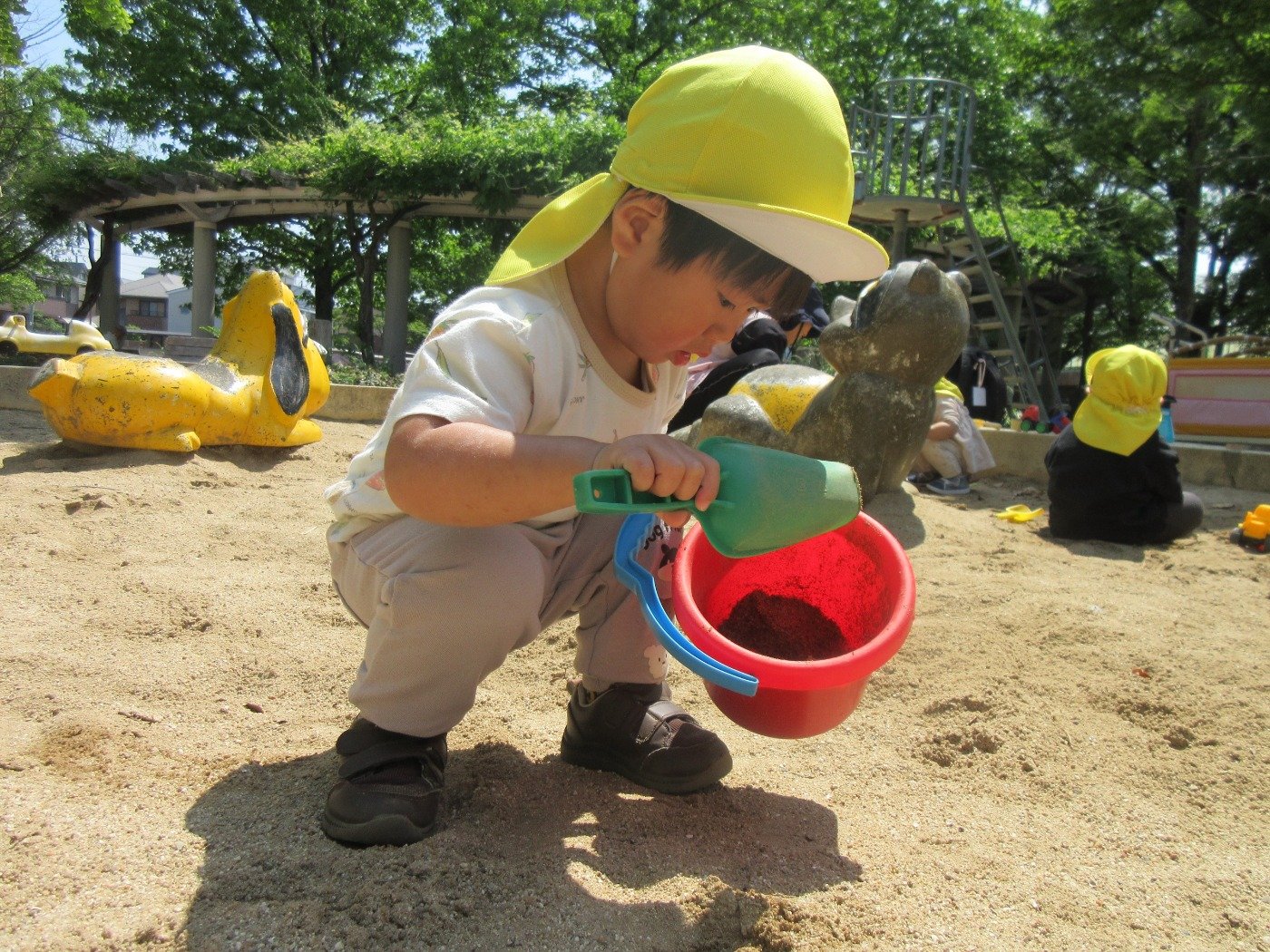上手にお砂をすくって、バケツに入れるのもお手のもの。