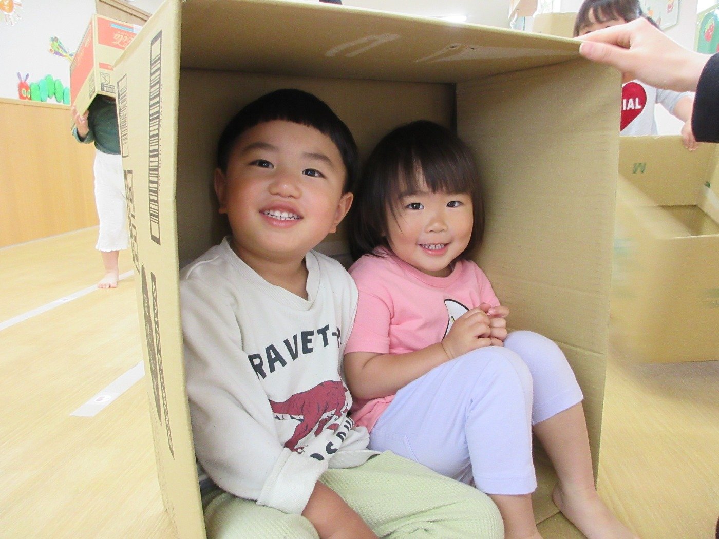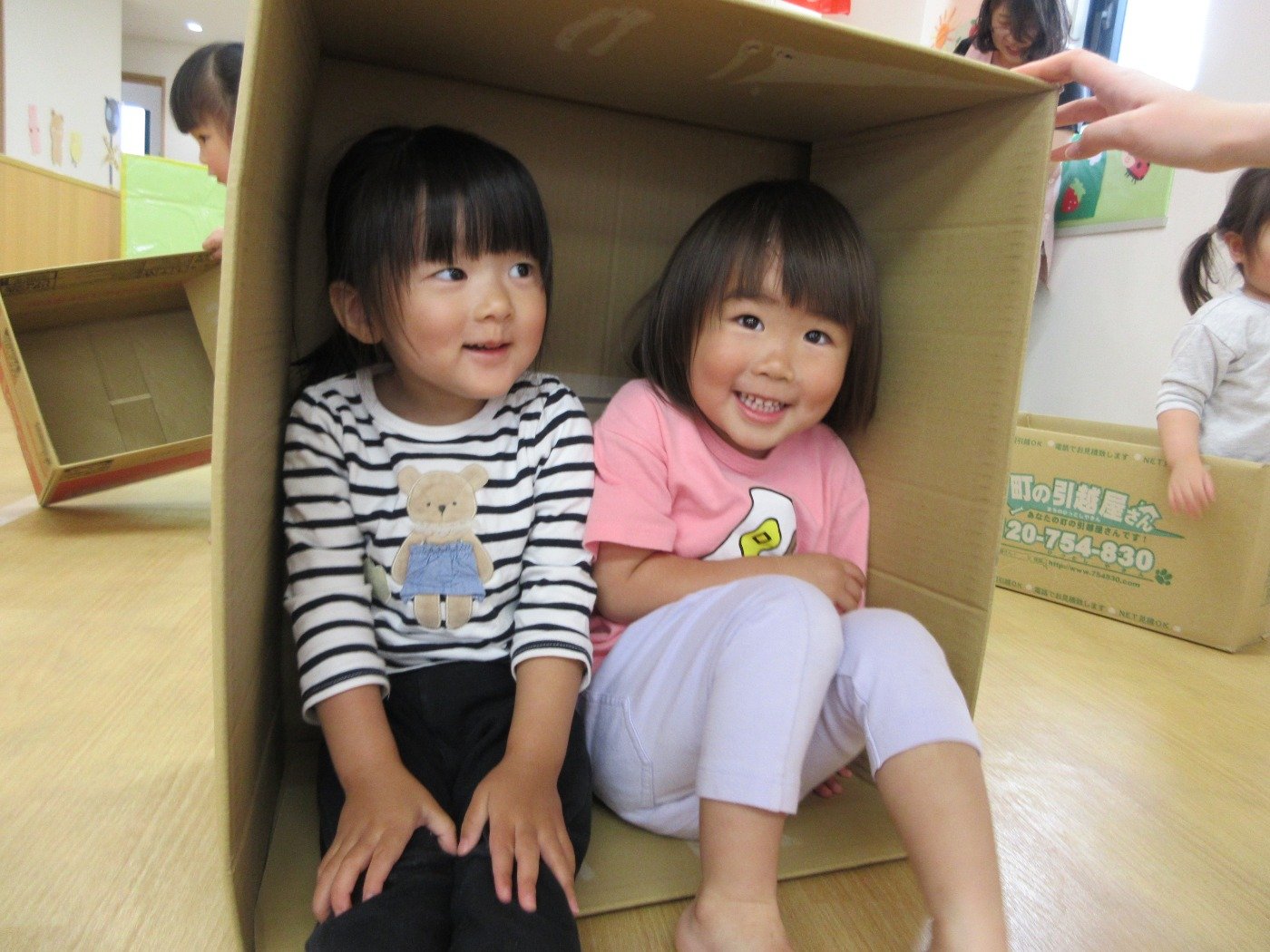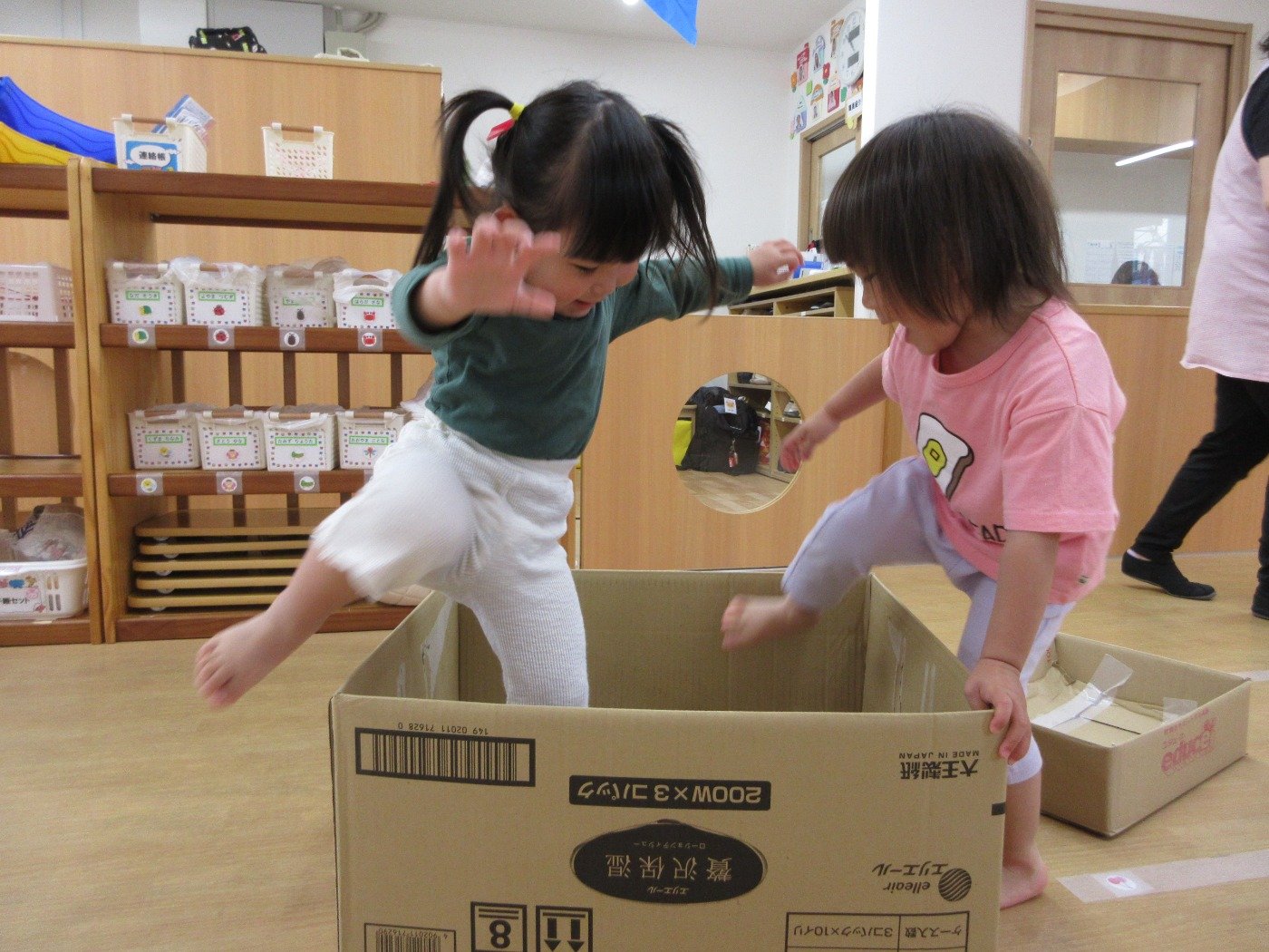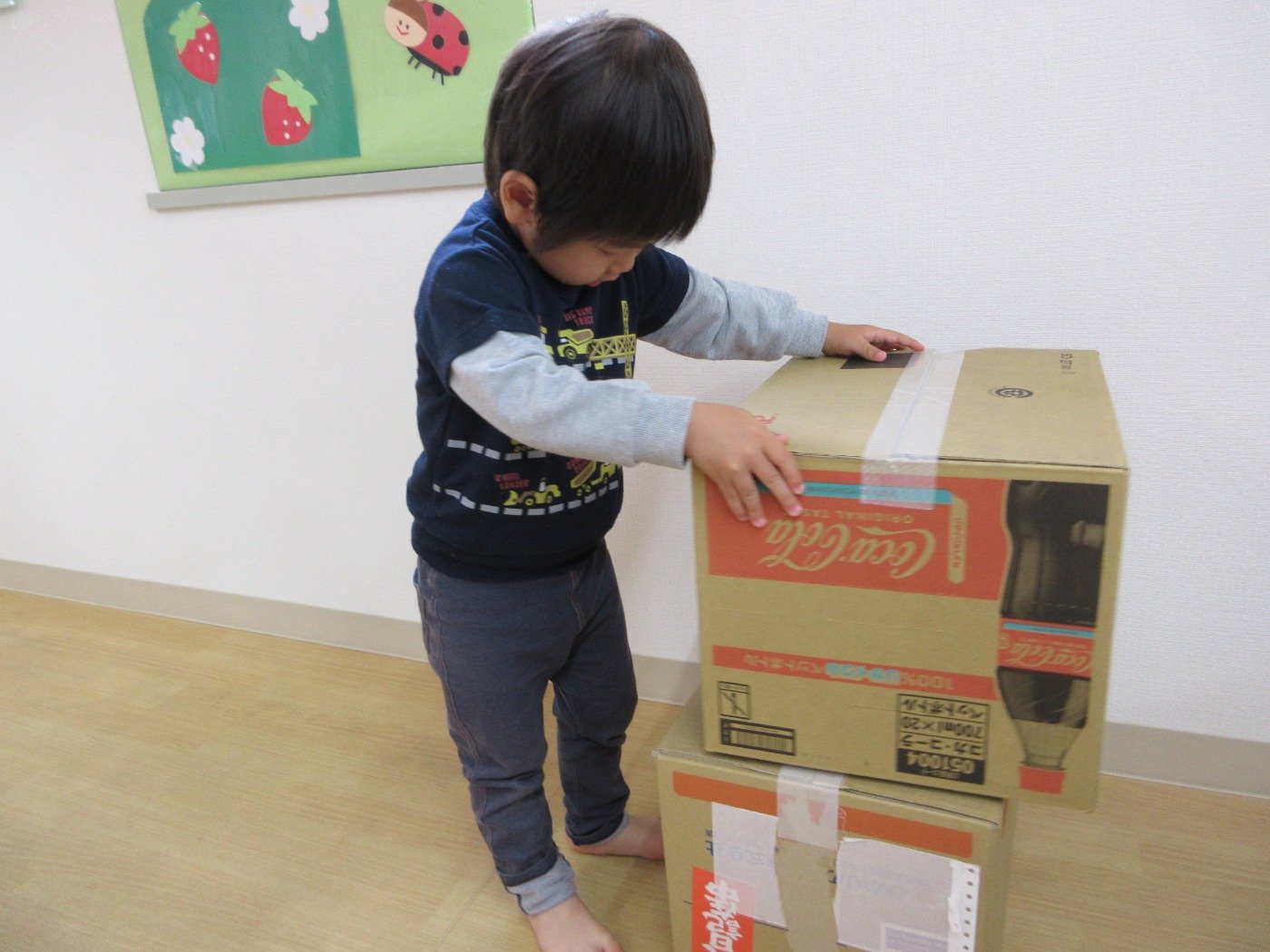 ひとつひとつ積み上げて、自分より高くなった箱に大満足したり…