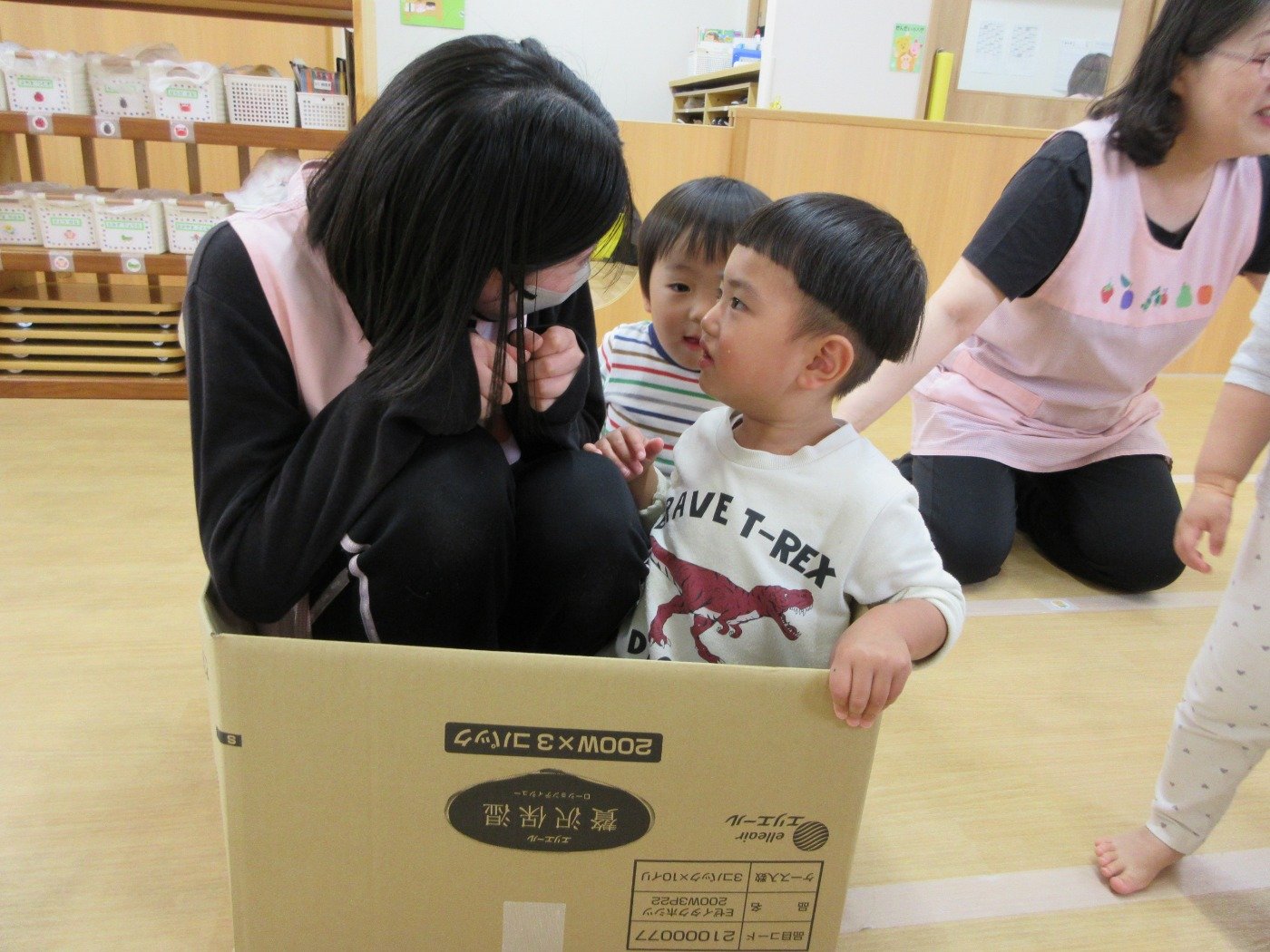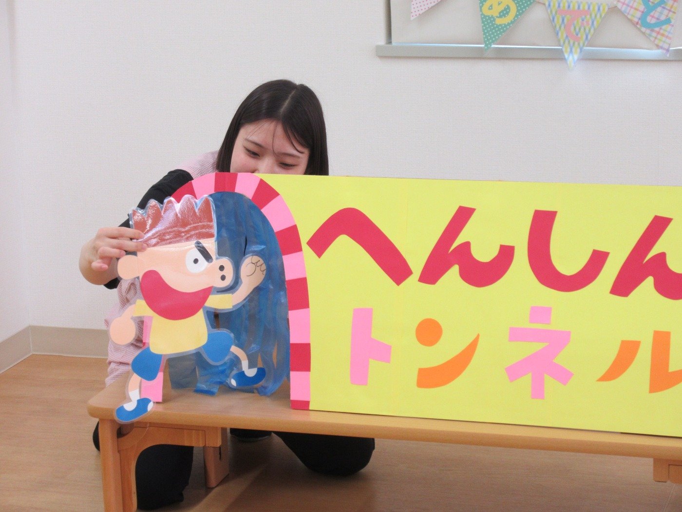 園開放でも、子どもたちに人気の「変身トンネル」をしました。