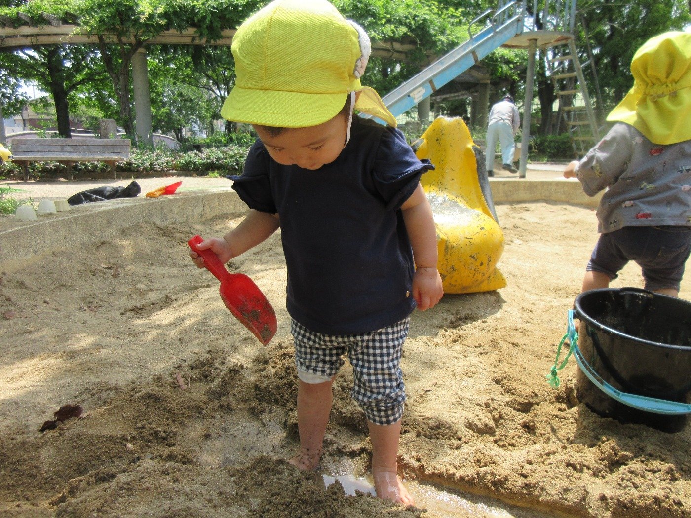 スコップで触ってもOK!お砂でもOK!だんだん慣れてくると泥だらけになって