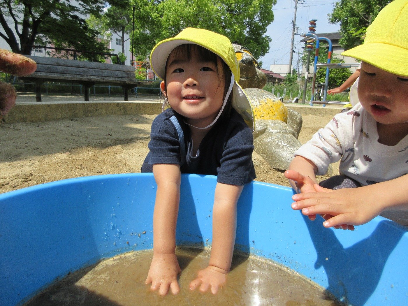 うさぎ組さんも泥んこ遊びが大好き♪初めは、少し戸惑う姿も見られましたが、