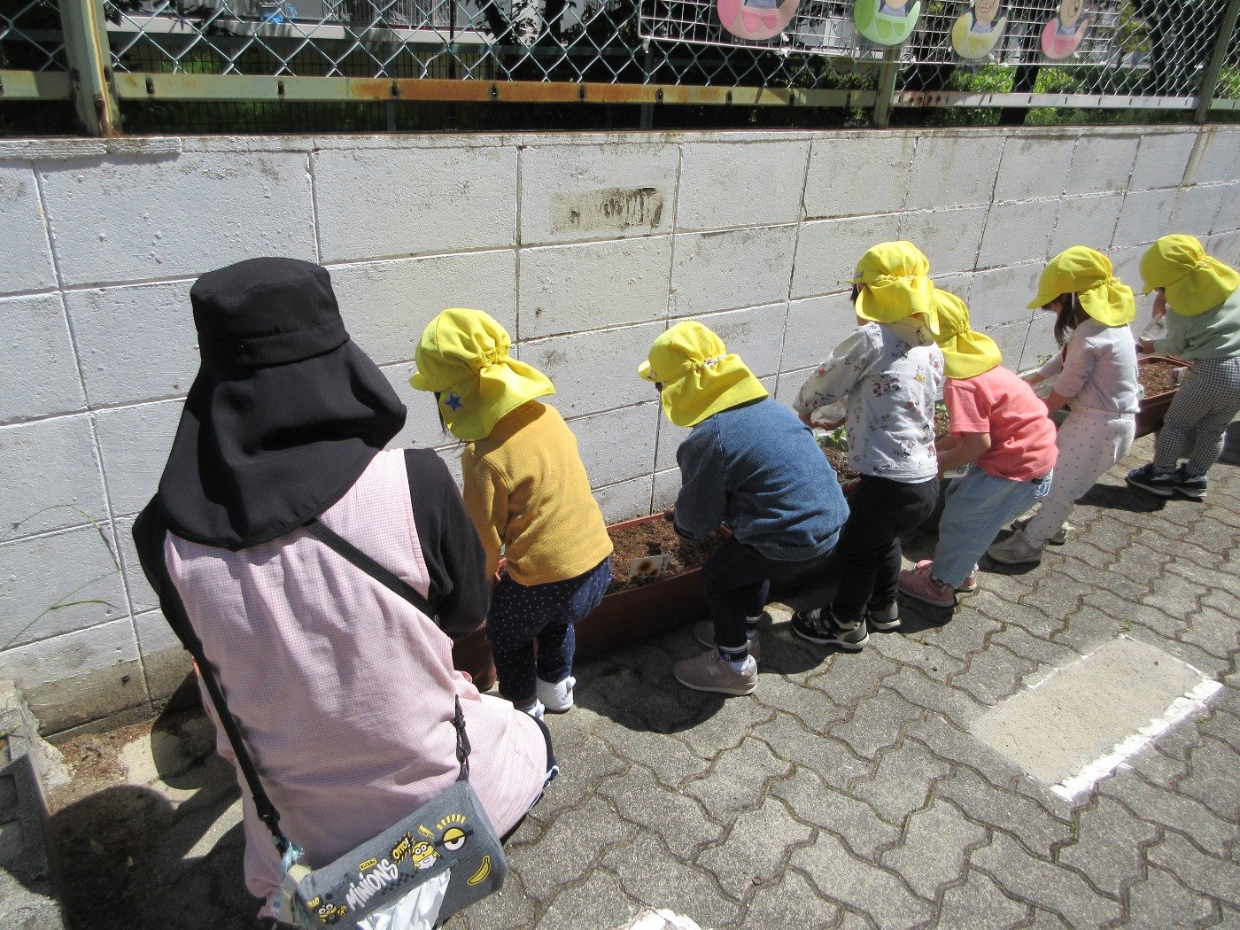 ゴールデンウィーク明けに恒例のあさがおと、今年はヒマワリの種も植えました。