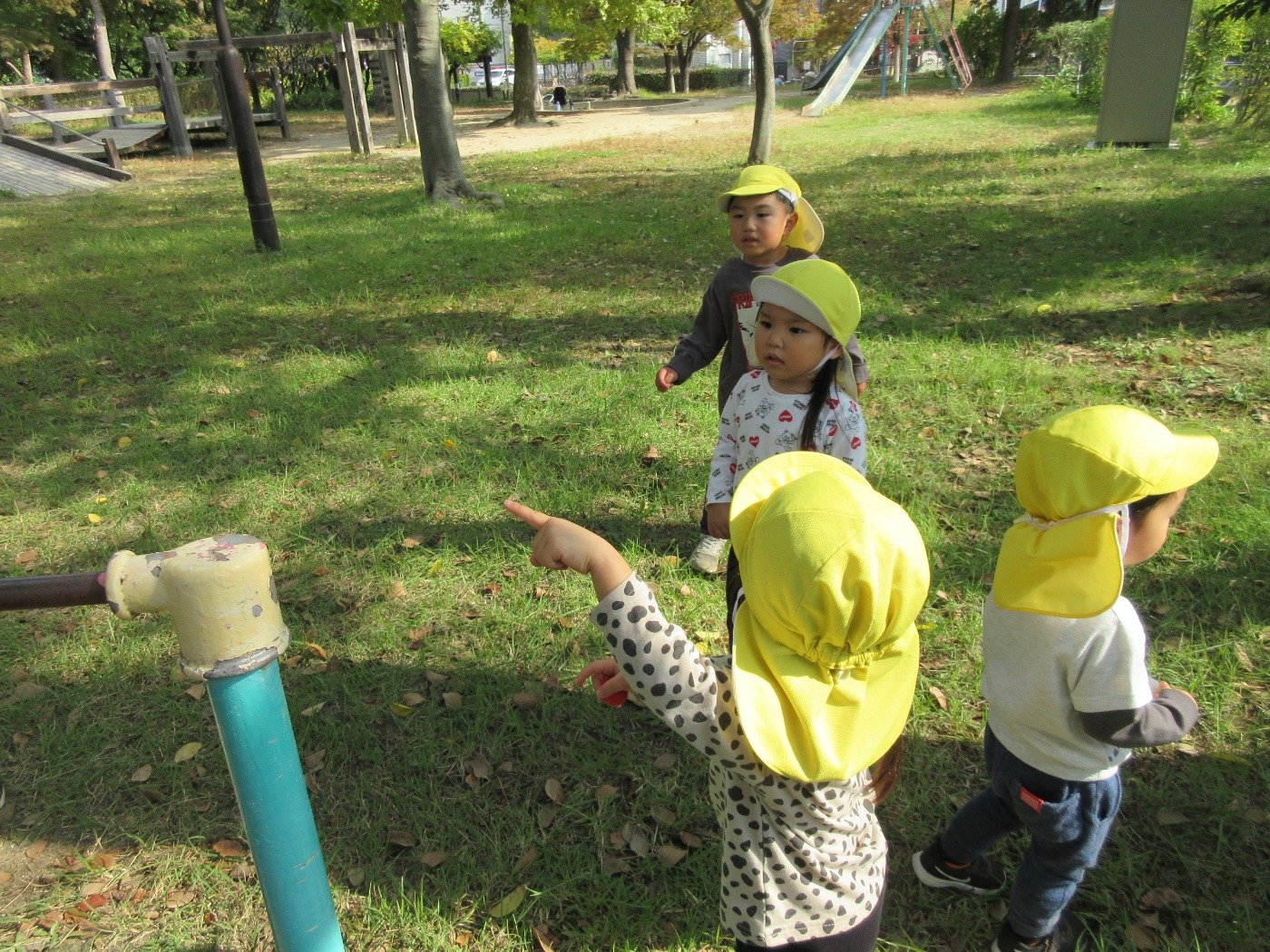 何でもない柱でも、子どもたちは大はしゃぎです。