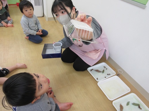 ひよこ組のお友だちも「これなんだろう?」と触ってみましたよ。恐る恐る…ちょんちょん♪