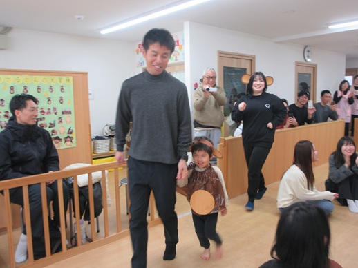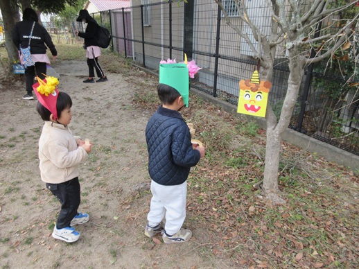 福の神様も見つけて、「バンザーイ!」みんなで一緒に鬼退治、楽しかったね。これからもスクスク元気に大きくなぁれ!