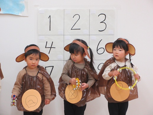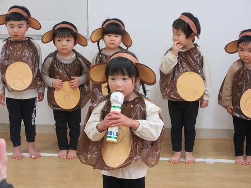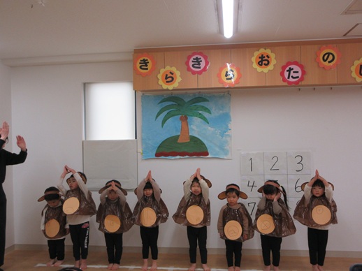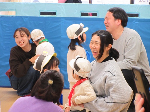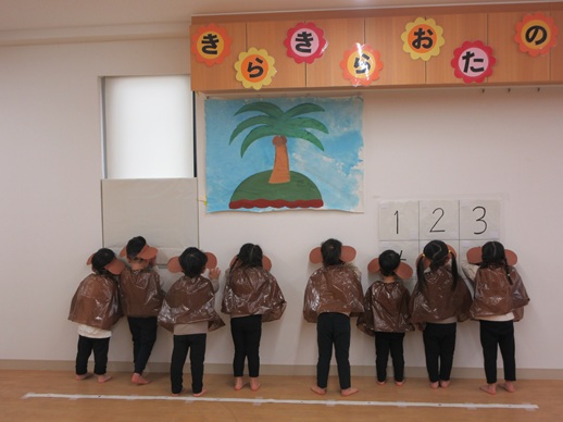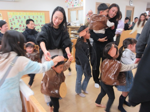 子どもたちの大好きな絵本を題材にして、大好きな遊びや体操等々、大好きをいっぱい詰め込んで楽しんでいる姿をお家の人に見に来ていただきました。