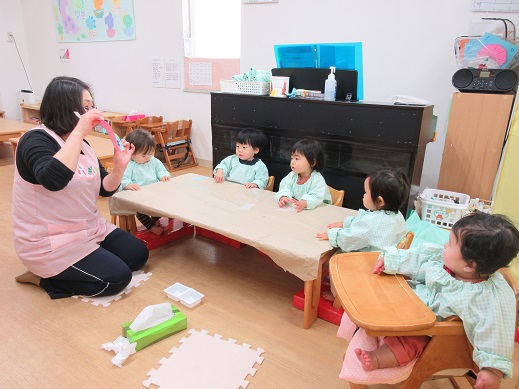 保育園ってどんなところかな?お友だちと一緒に遊びたいな。ちょっと悩みを聞いてほしいな。などなど、興味のある方(0歳児から2歳児)は是非遊びに来てみてください。保育士によるパネルシアター等の出し物をご覧いただいた後、お子様の年齢のクラスの活動に参加していただきます。一緒に楽しく遊びましょう♪前日の午前中までにご連絡下さい。お待ちしています。