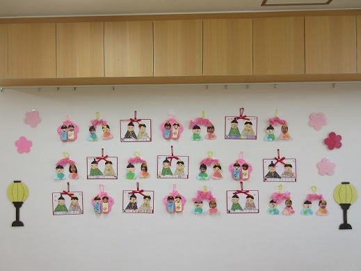みんなの作品を飾ると、お部屋がパーッと華やかになりました。3月3日のおひなまつりが待ち遠しいね♪