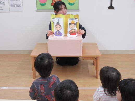 ポカポカと春らしい日が訪れるようになったこの日、みんなが健やかに育ちますようにと、「ひなまつり」の会をしました。