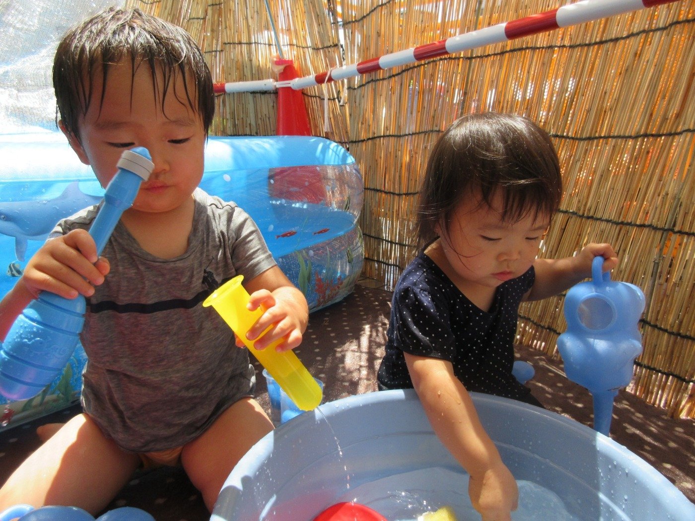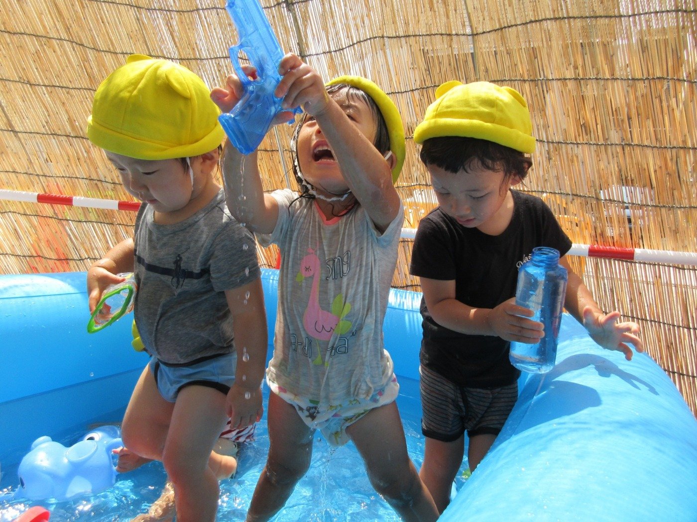 毎日、暑い日が続きますが、子ども達は元気いっぱいに水遊びやプール遊びを楽しんでいます。