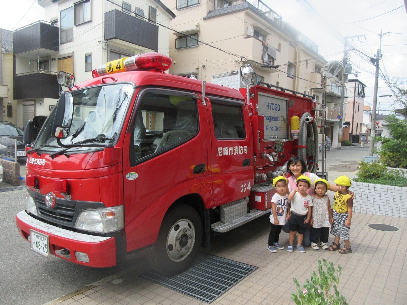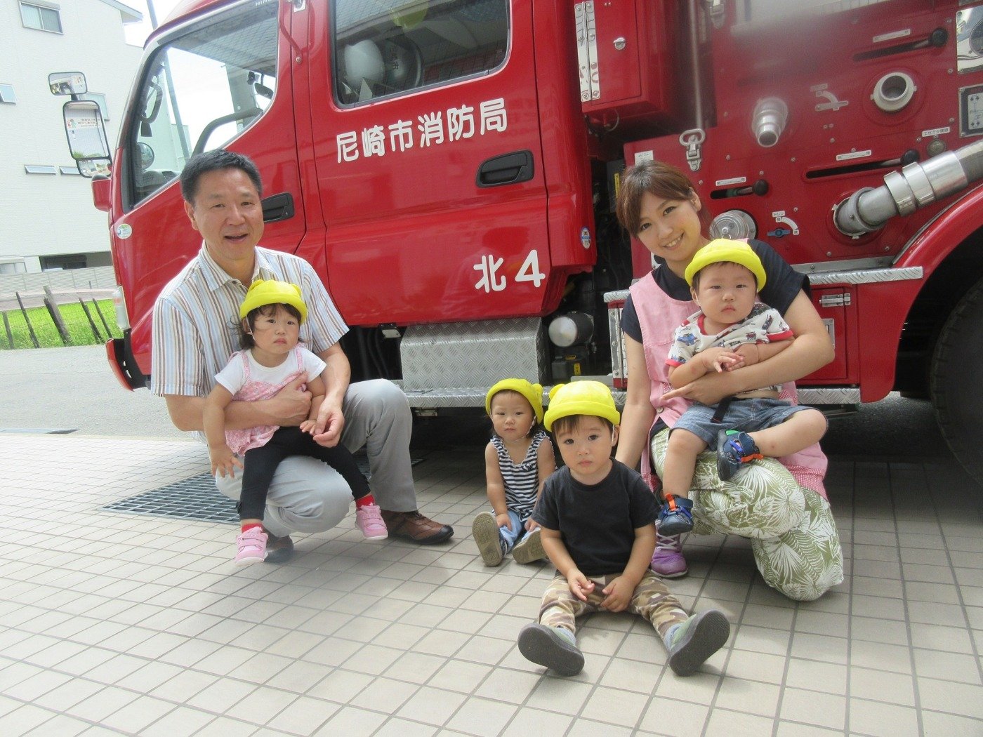 お誕生日会が終わる頃、園の前に消防車が…